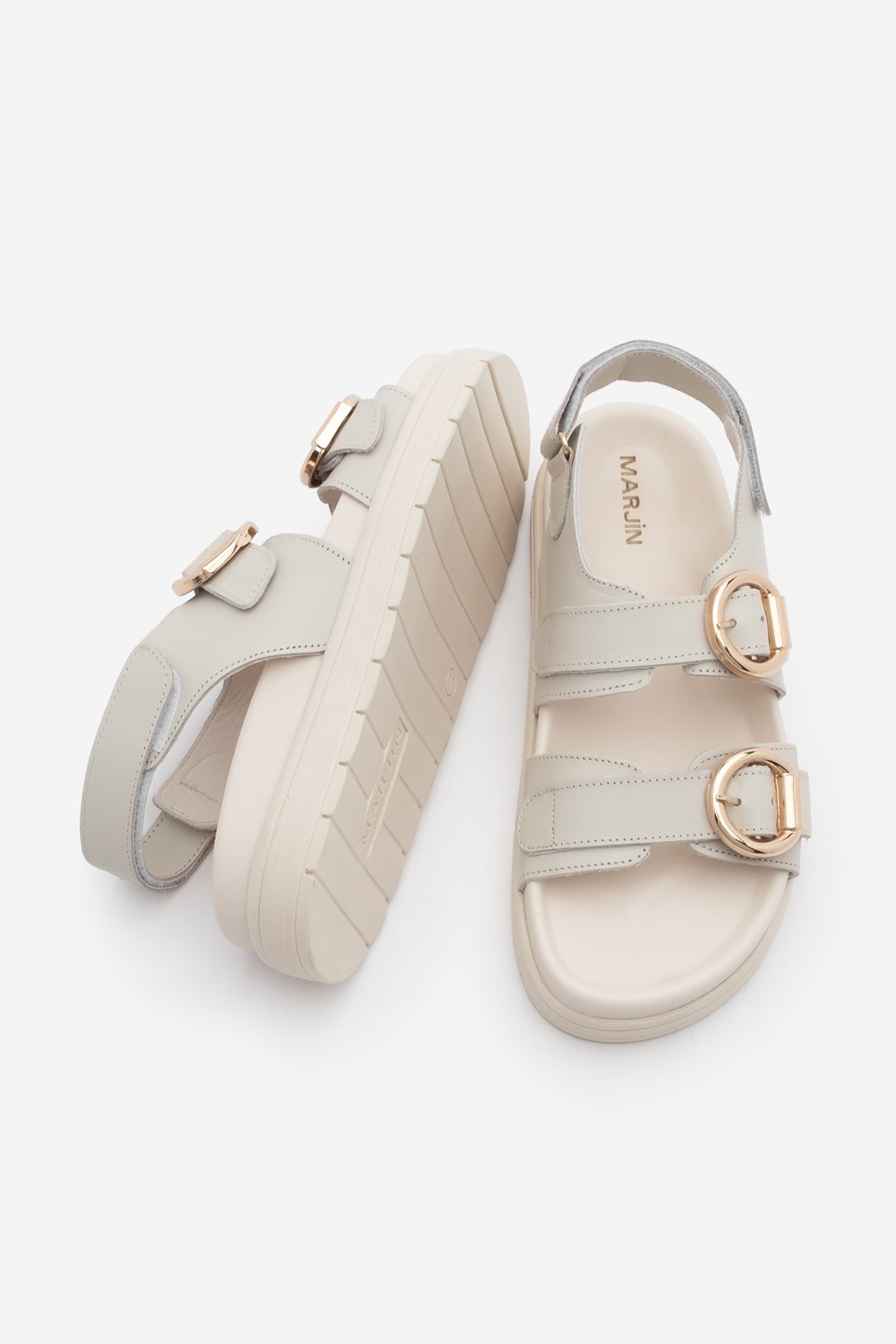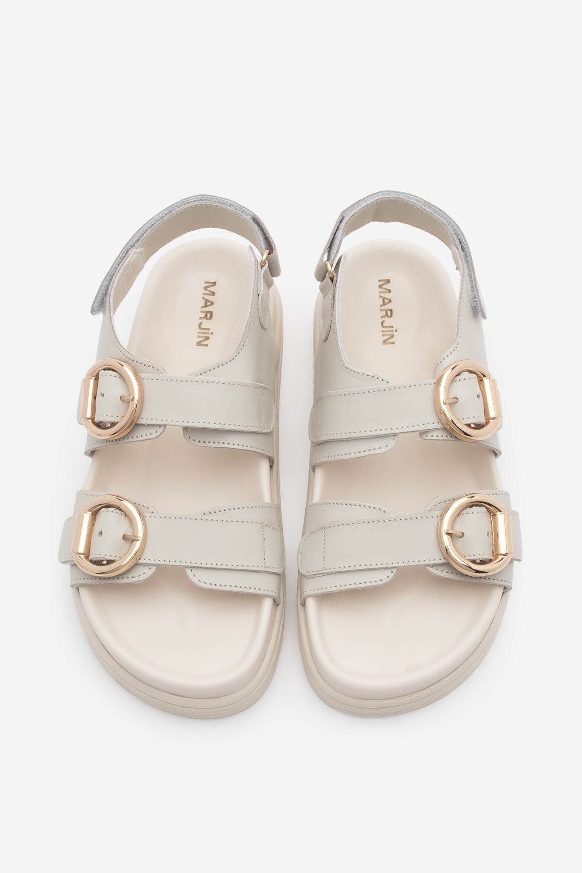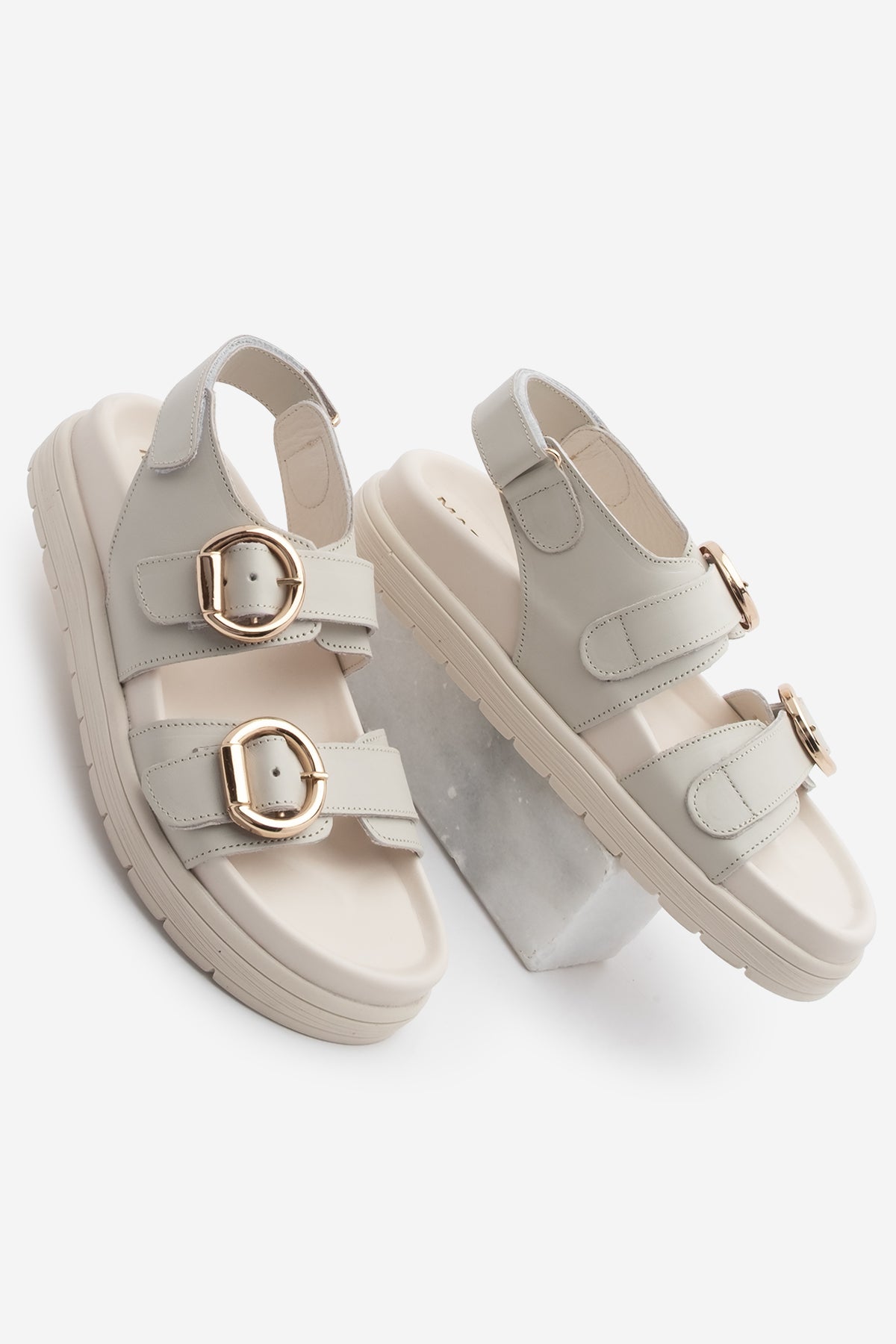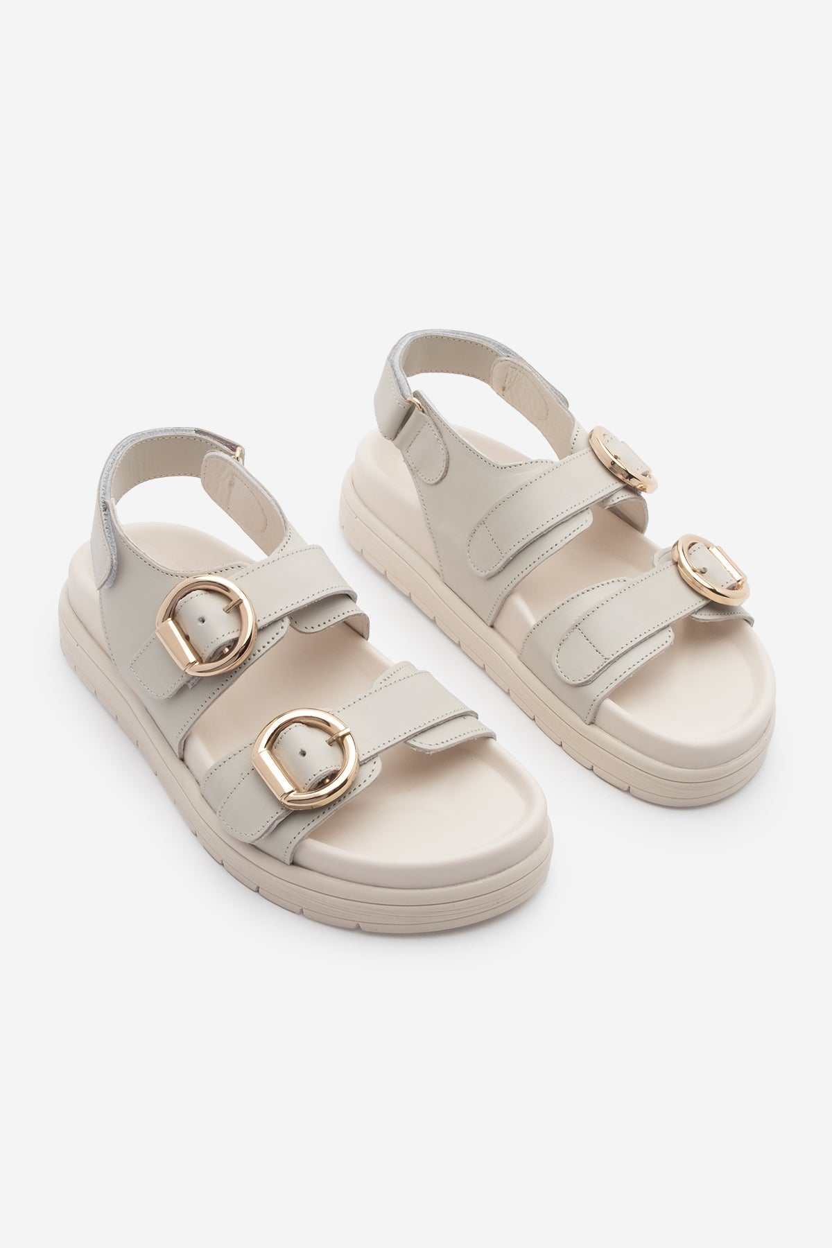 Kadın Hakiki Deri Bantlı Günlük Sandalet Tupiza - Ekru