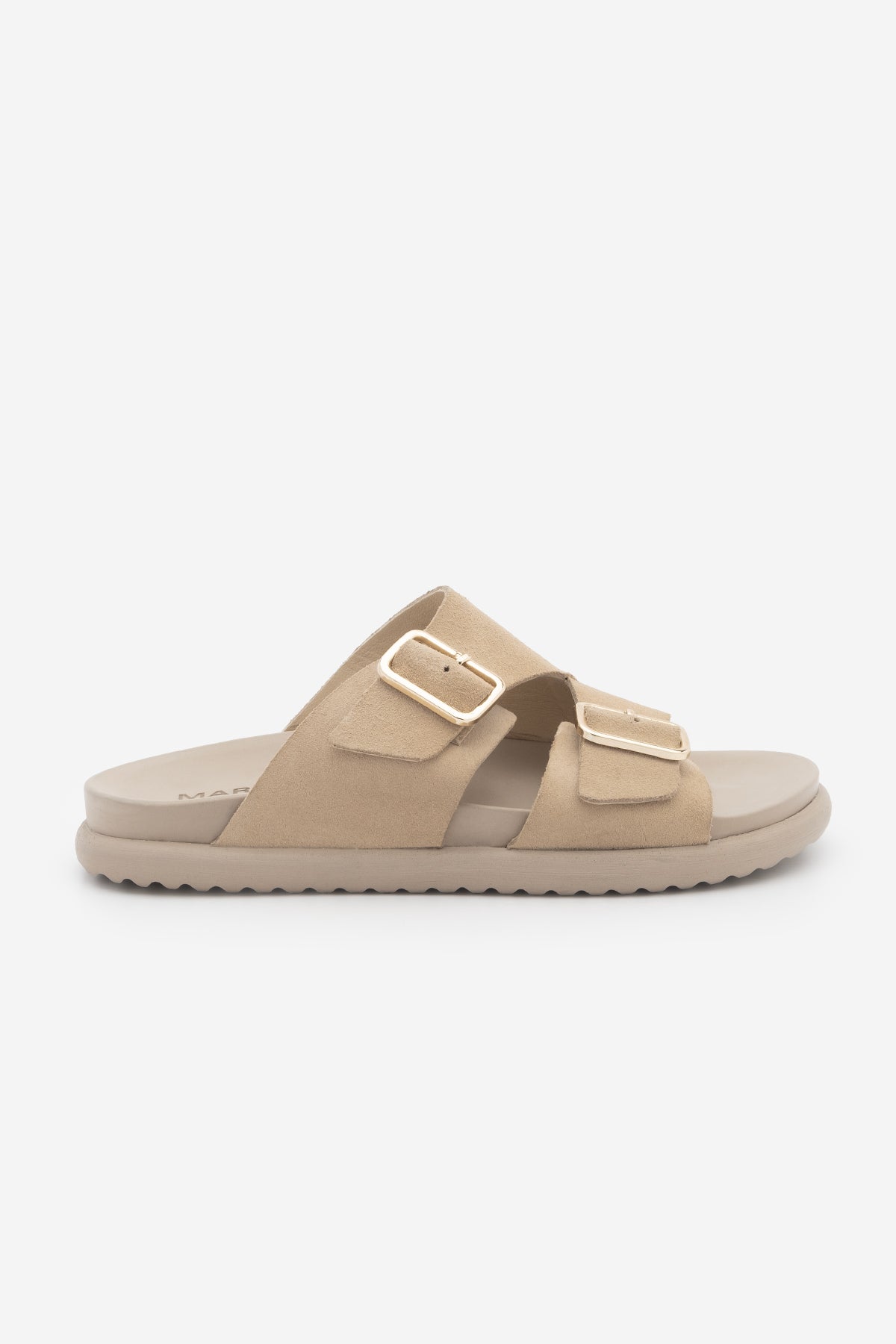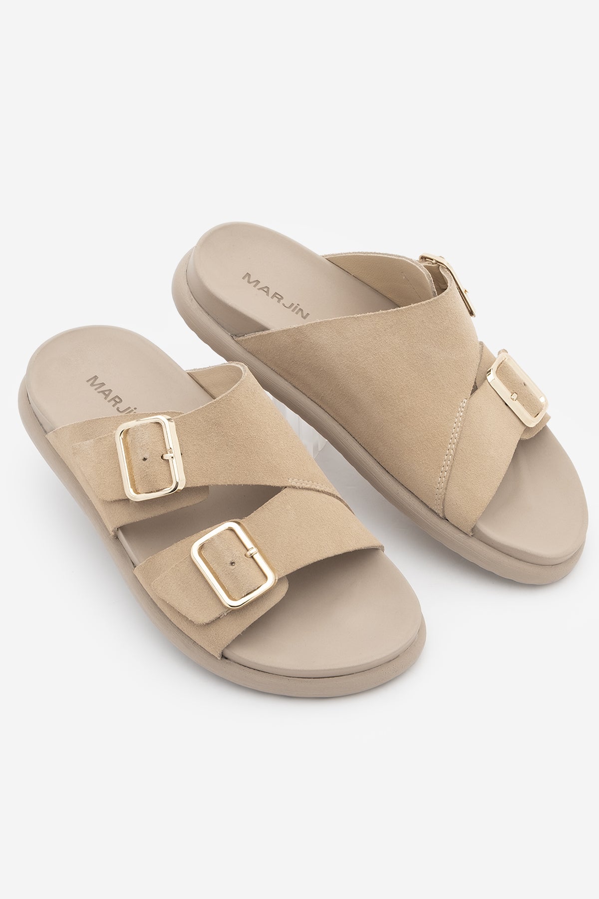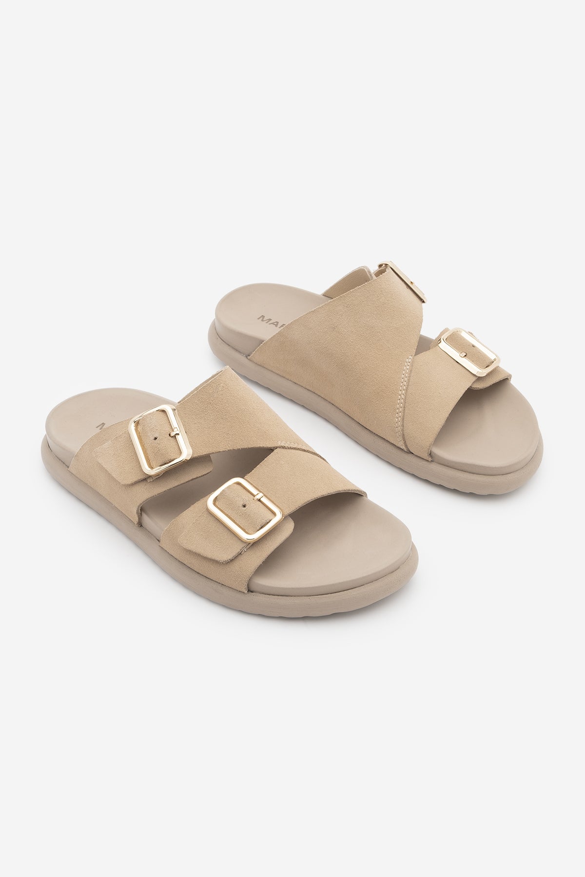 Kadın Hakiki Deri Çift Bantlı Günlük Terlik Dorsin - Bej Süet