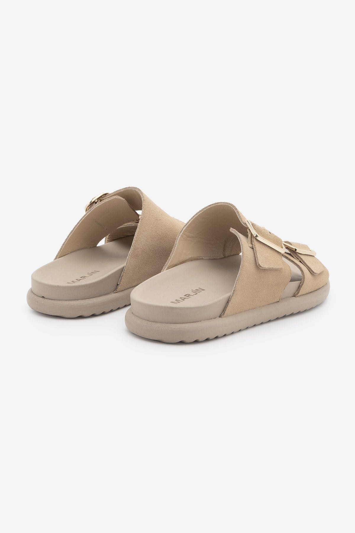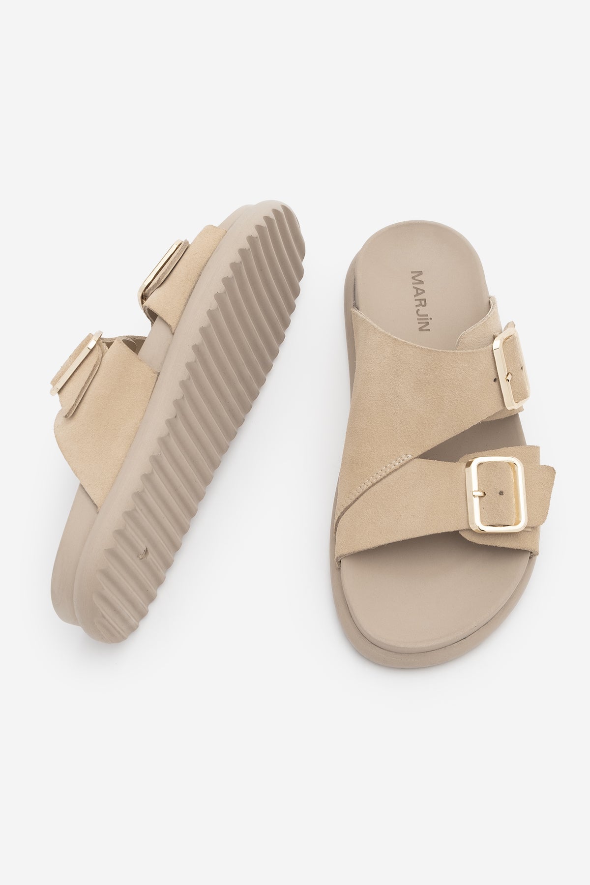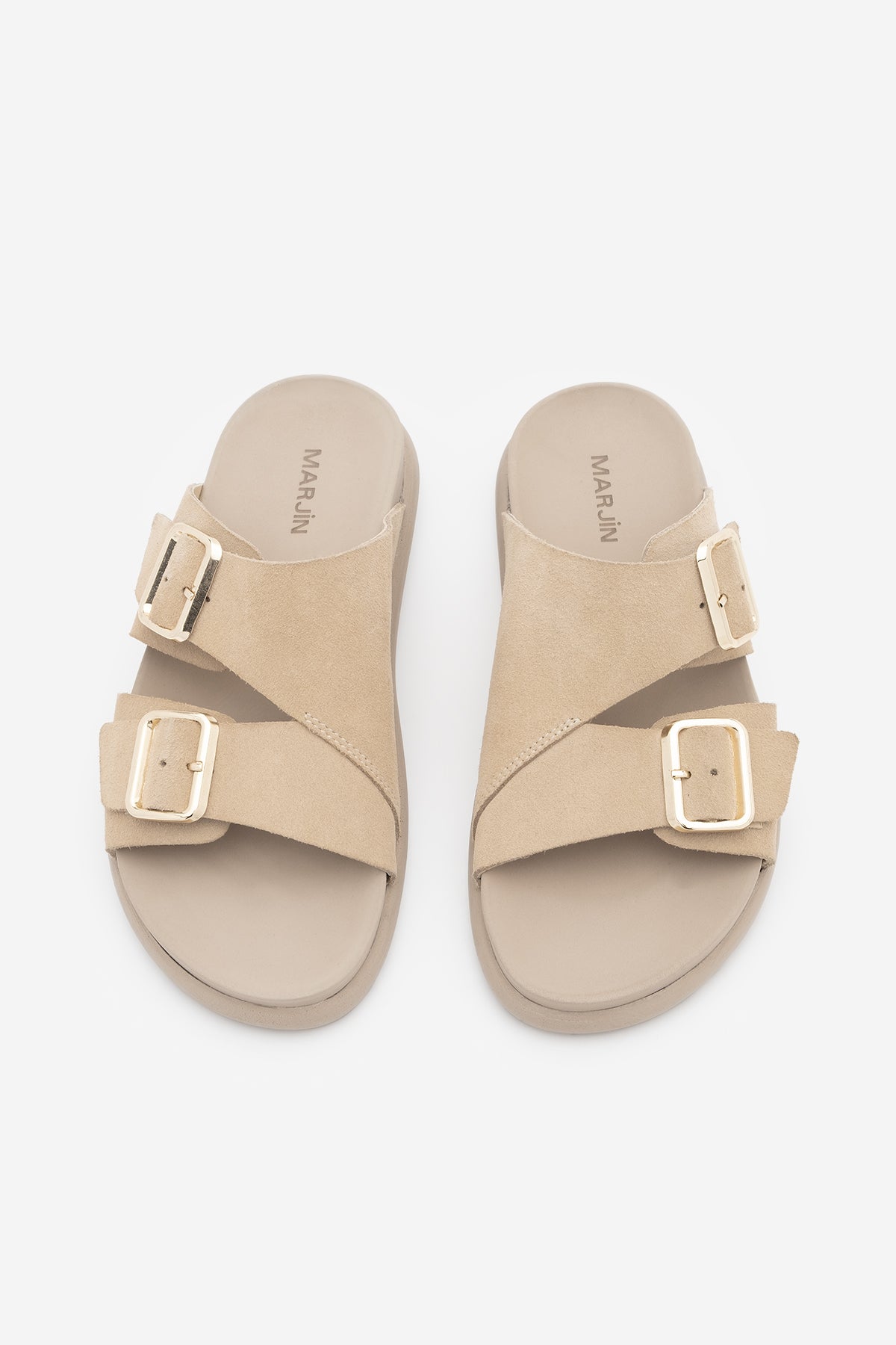 Kadın Hakiki Deri Çift Bantlı Günlük Terlik Dorsin - Bej Süet