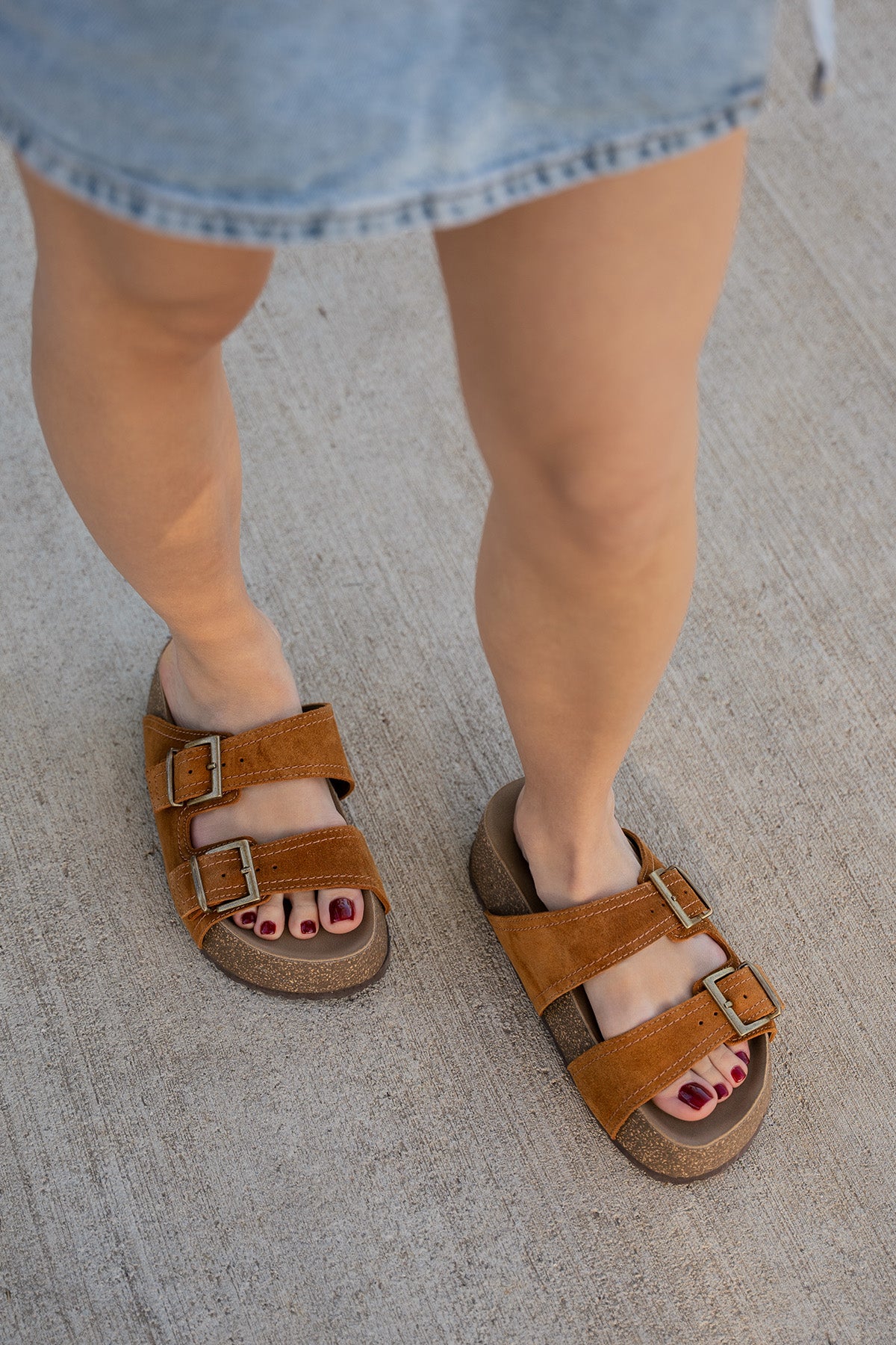 Kadın Hakiki Deri Çift Bantlı Günlük Terlik Roneta - Taba Süet
