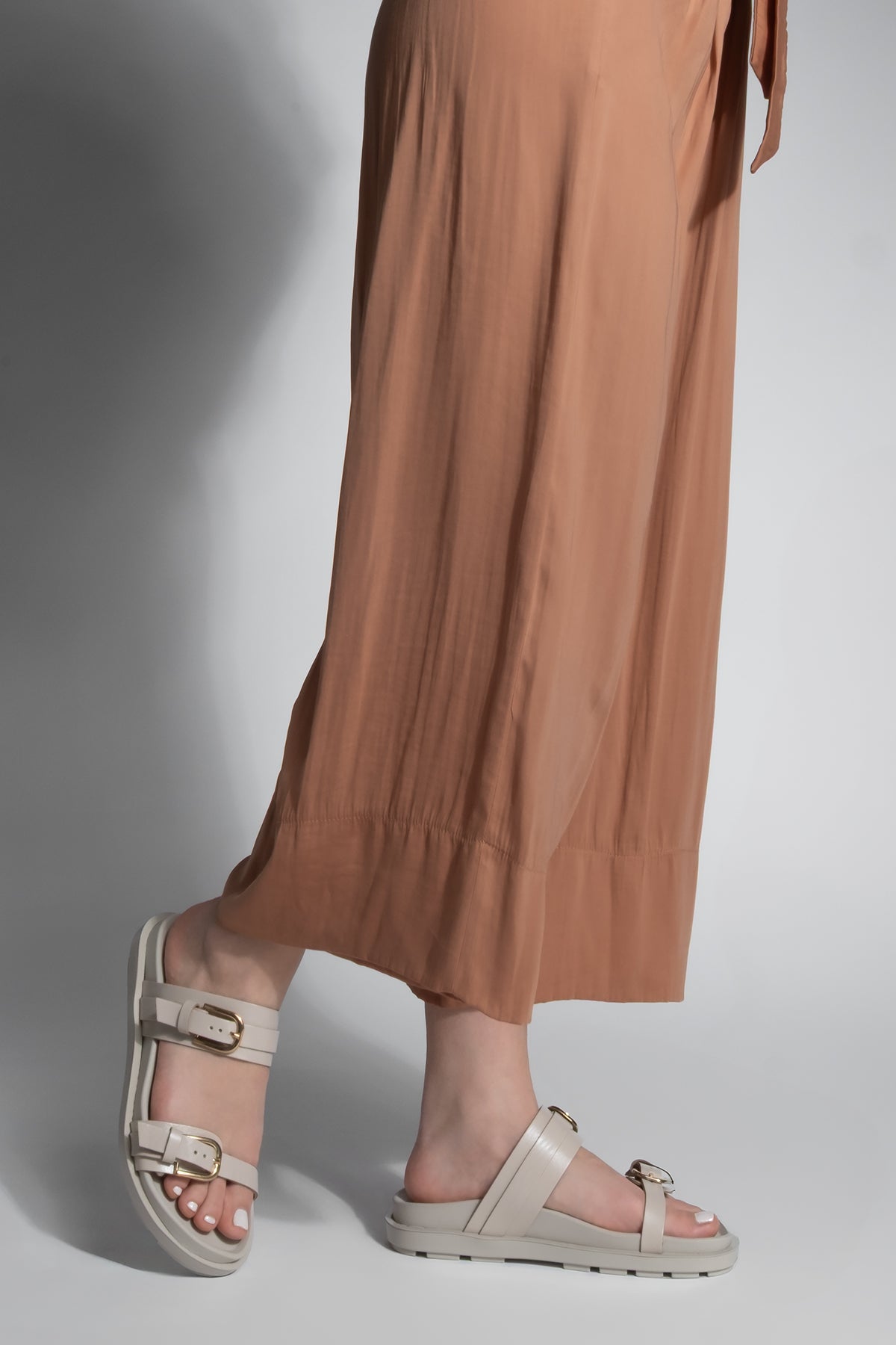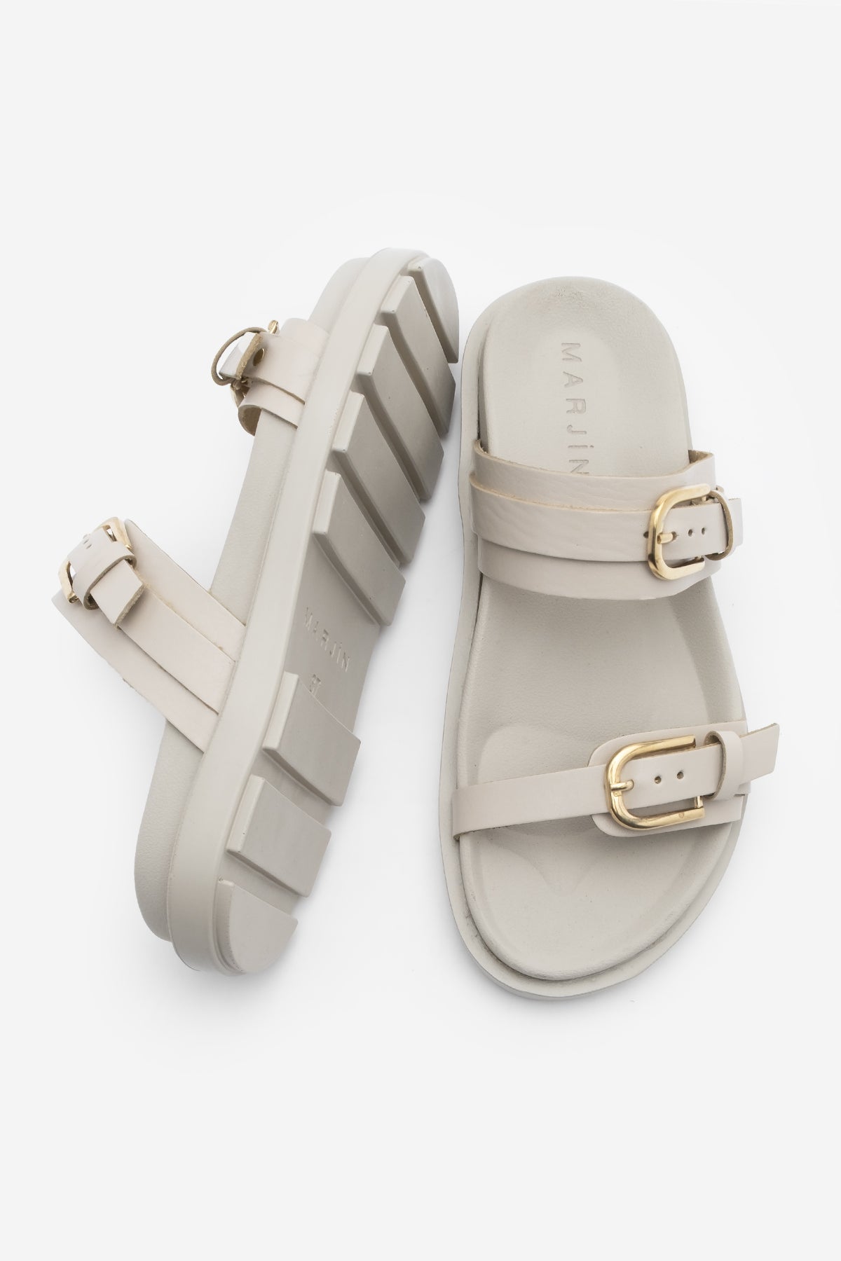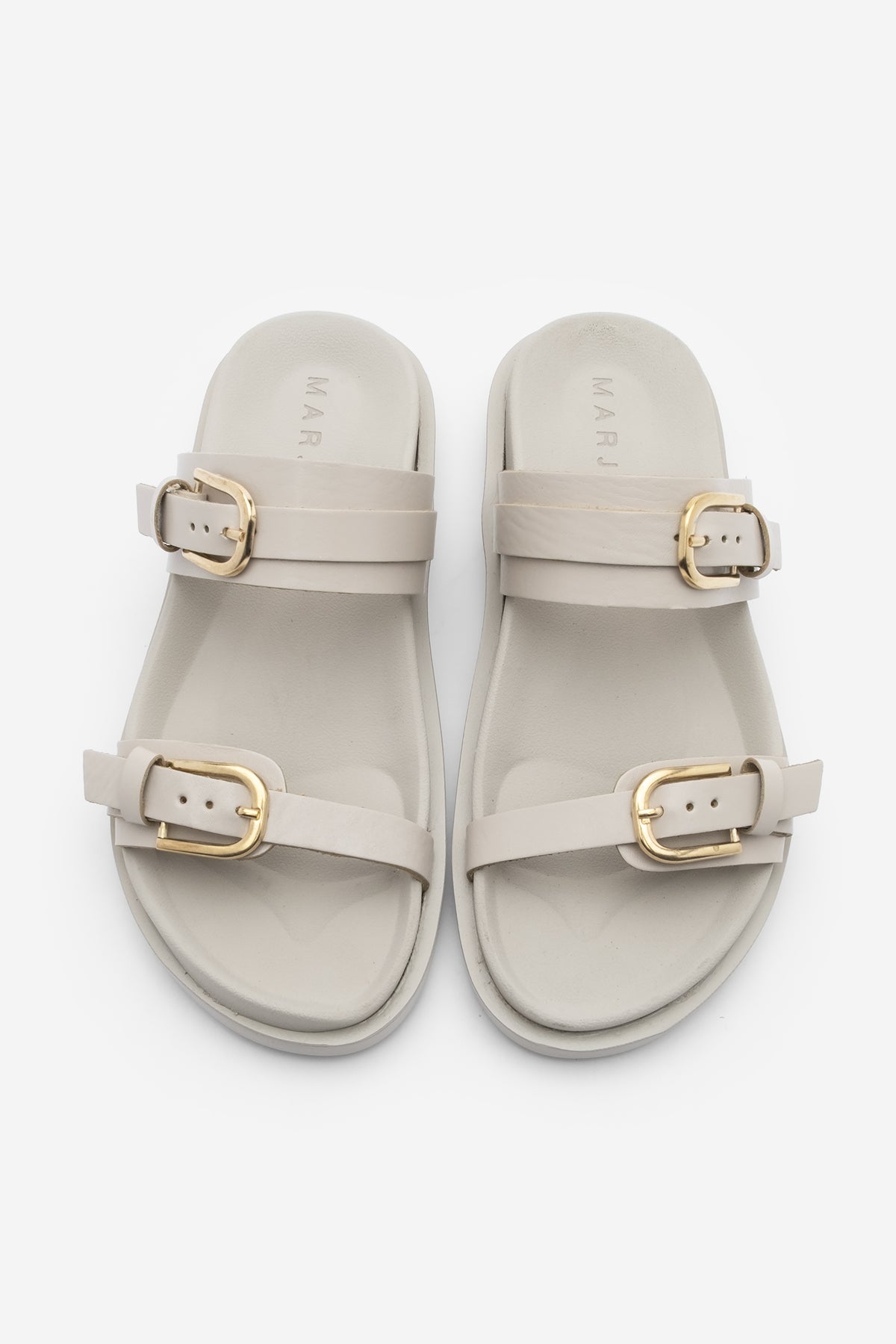 Kadın Hakiki Deri Çift Bantlı Günlük Terlik Tanva - Ekru