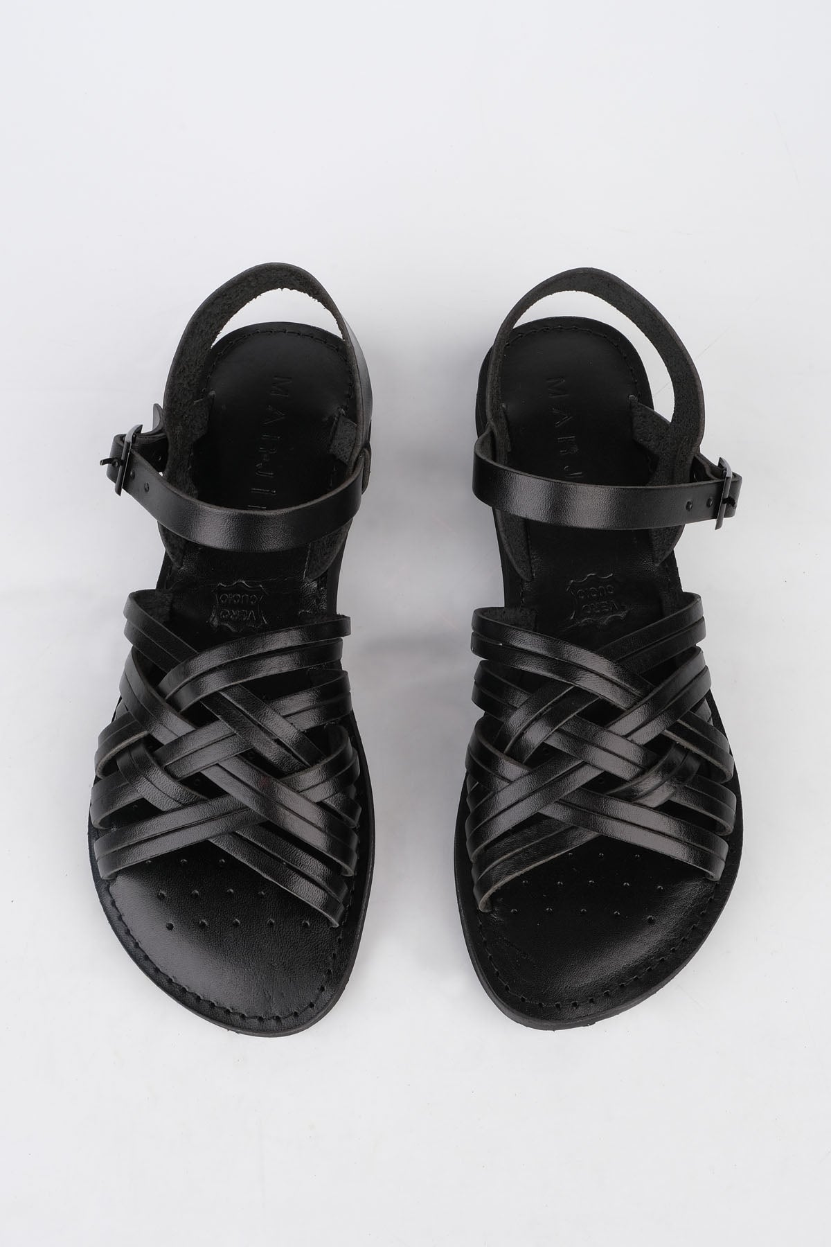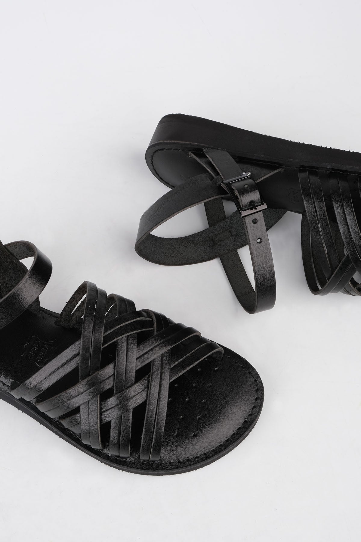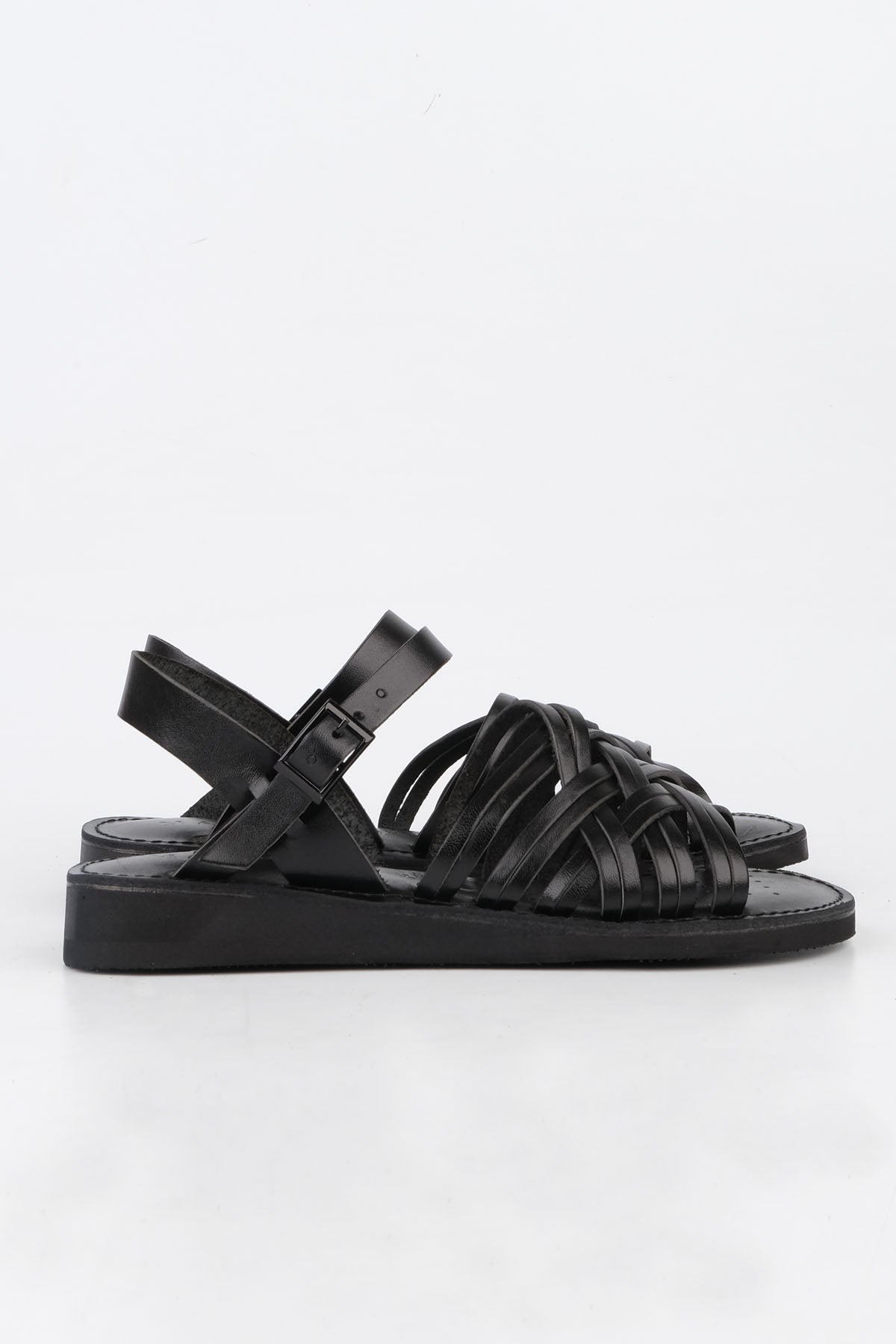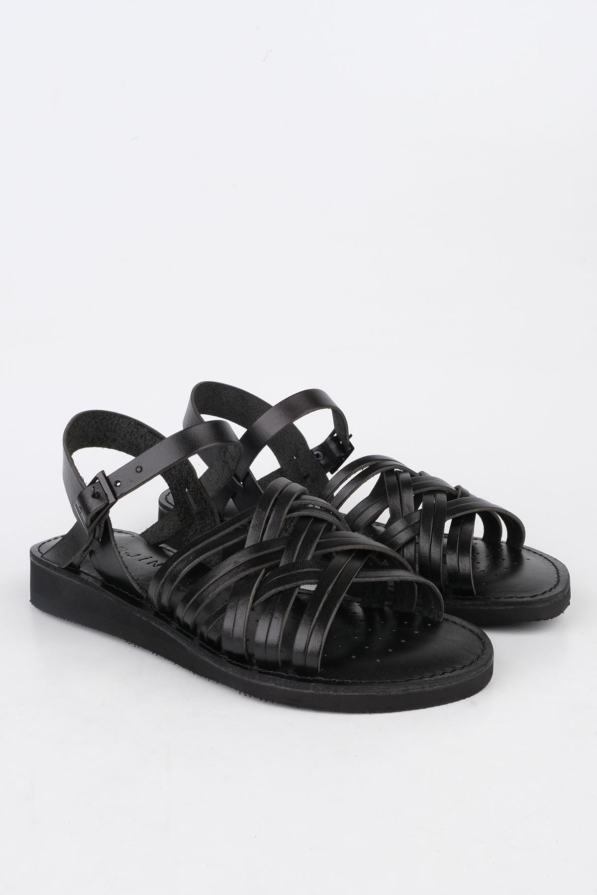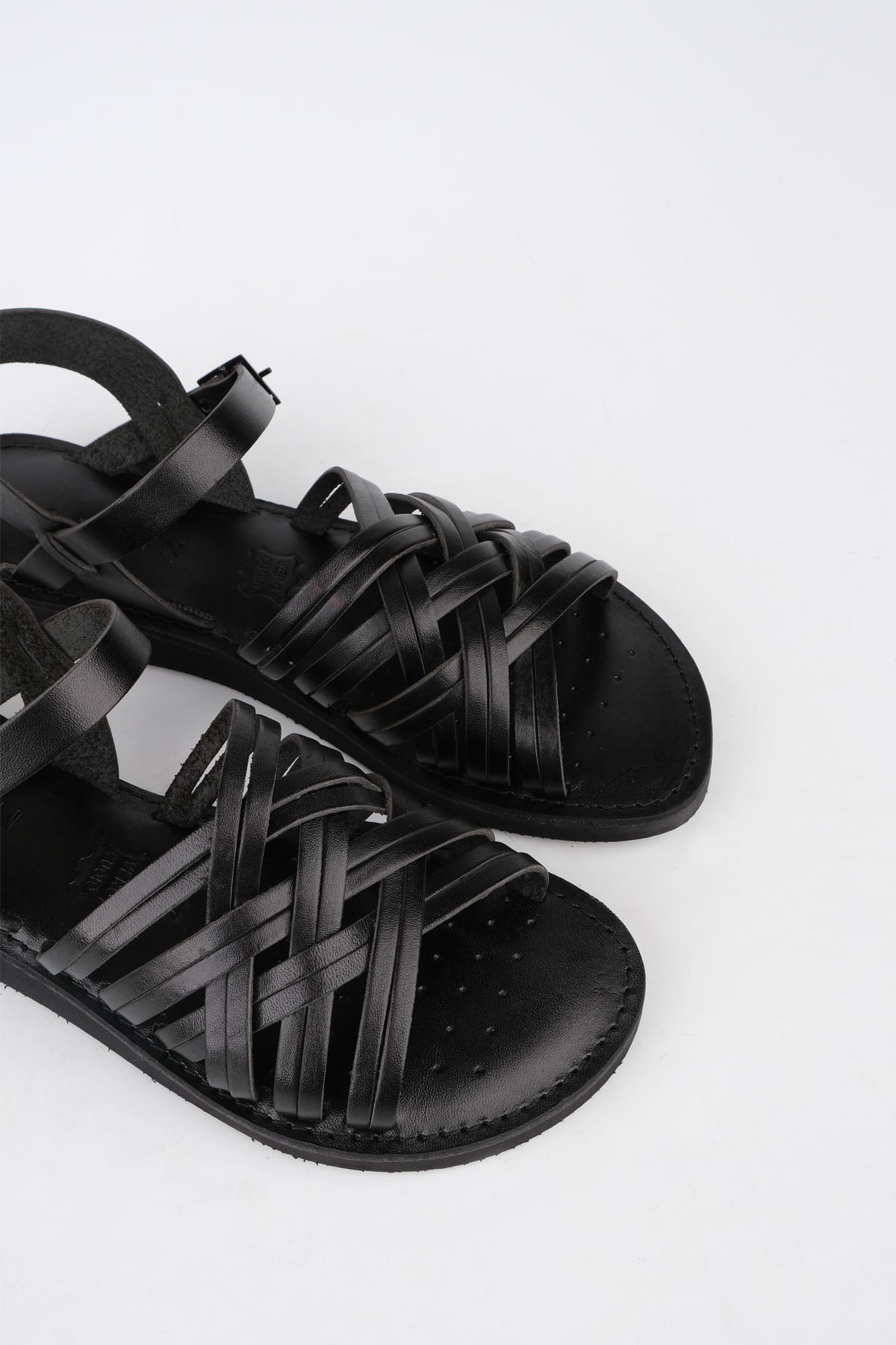 Kadın Hakiki Deri Eva Taban Günlük Sandalet Alen - Siyah