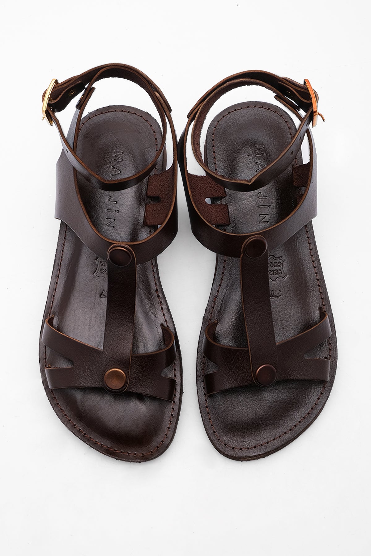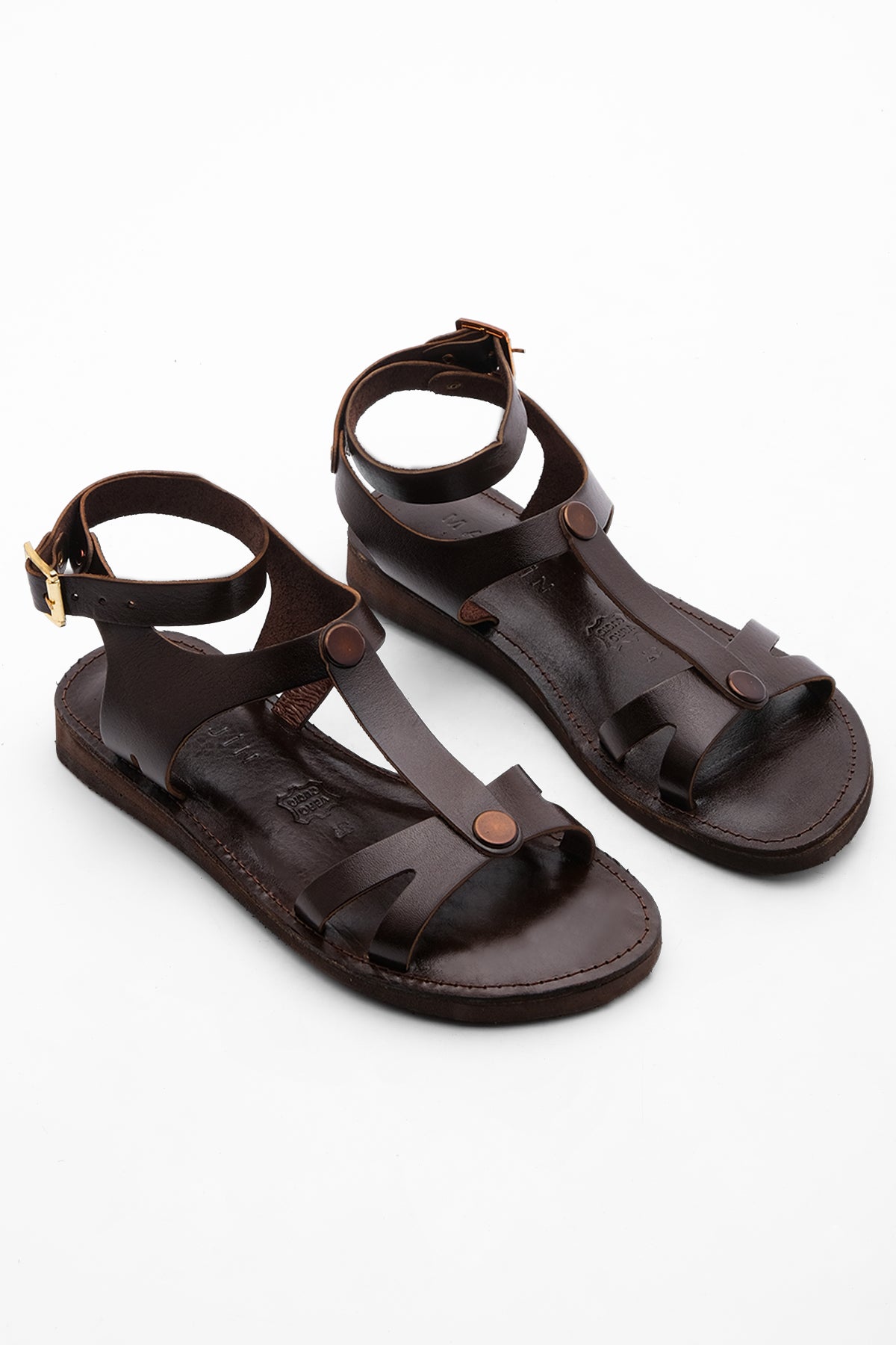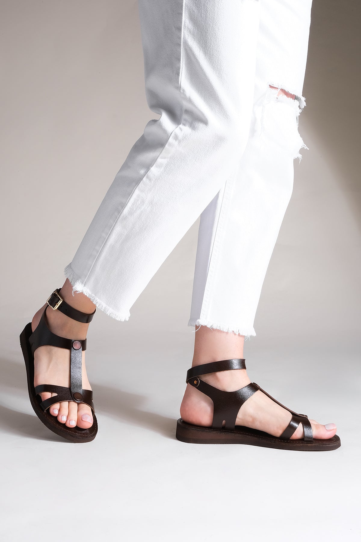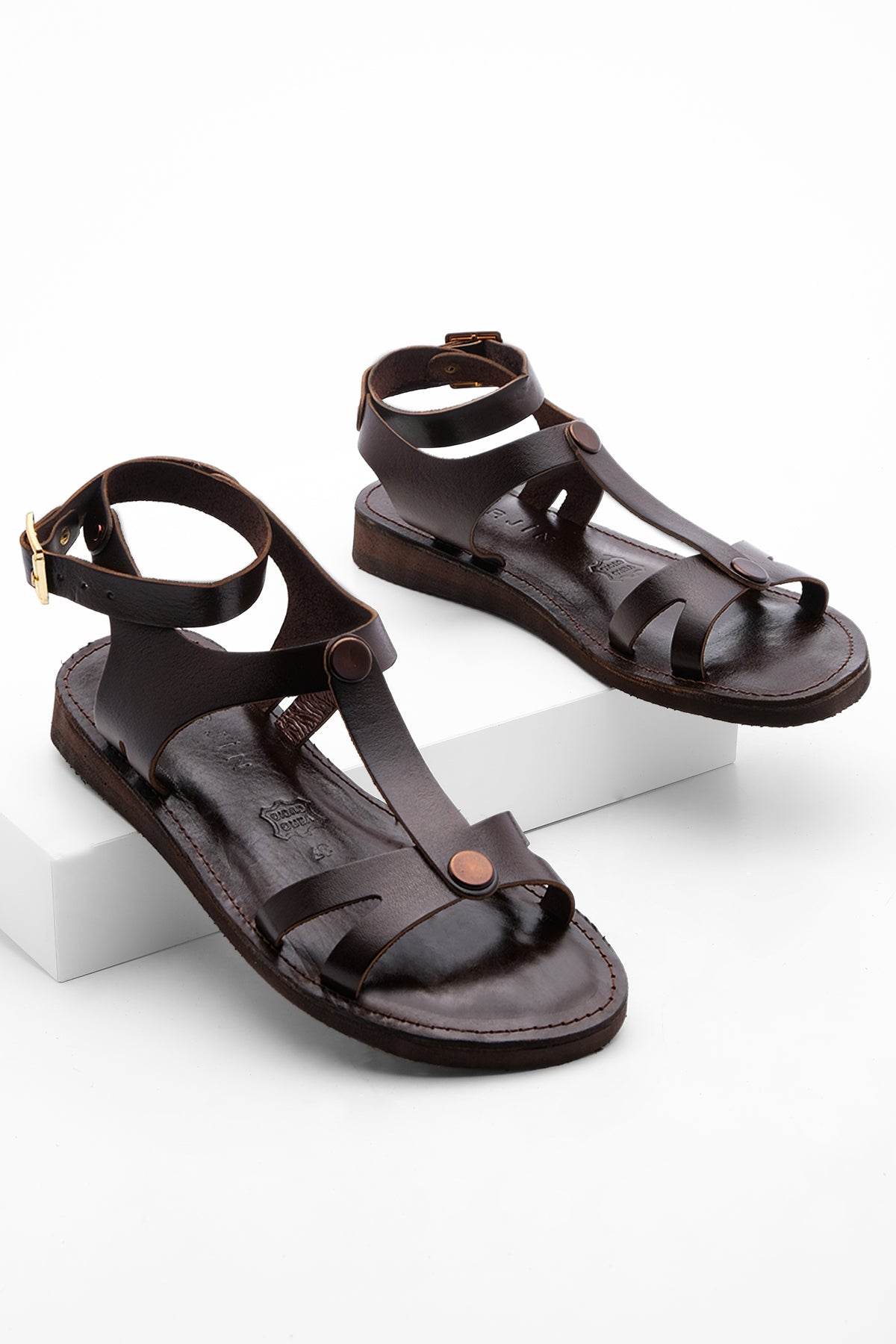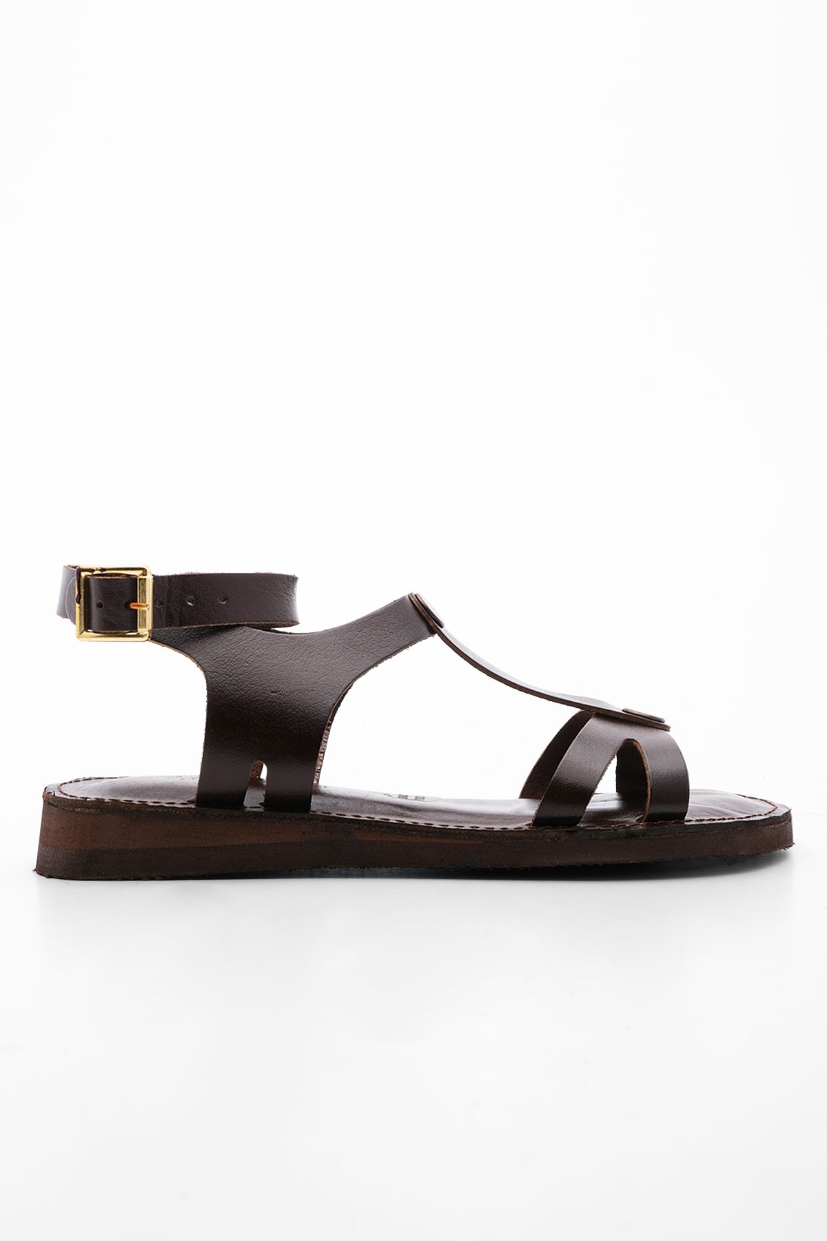 Kadın Hakiki Deri Eva Taban Günlük Sandalet Erle - Kahve