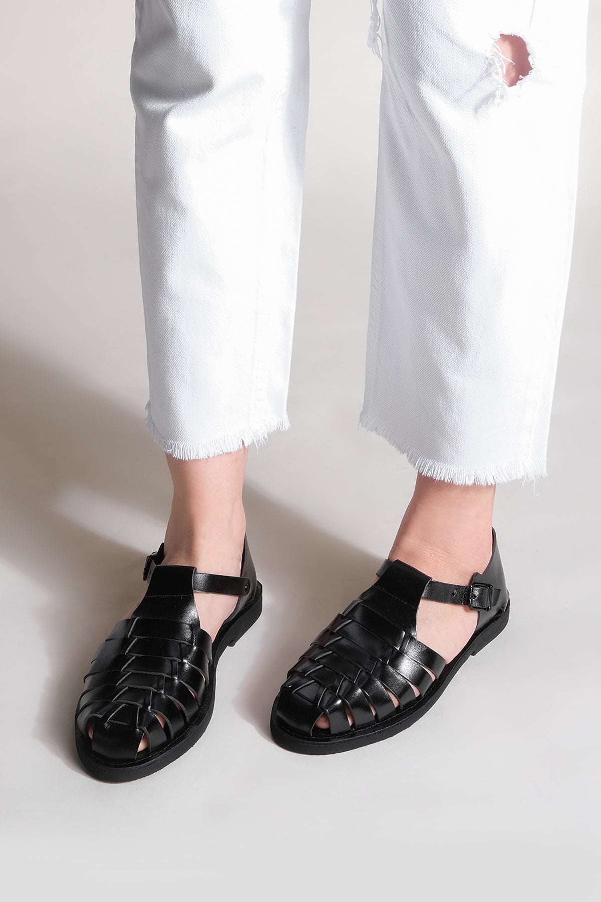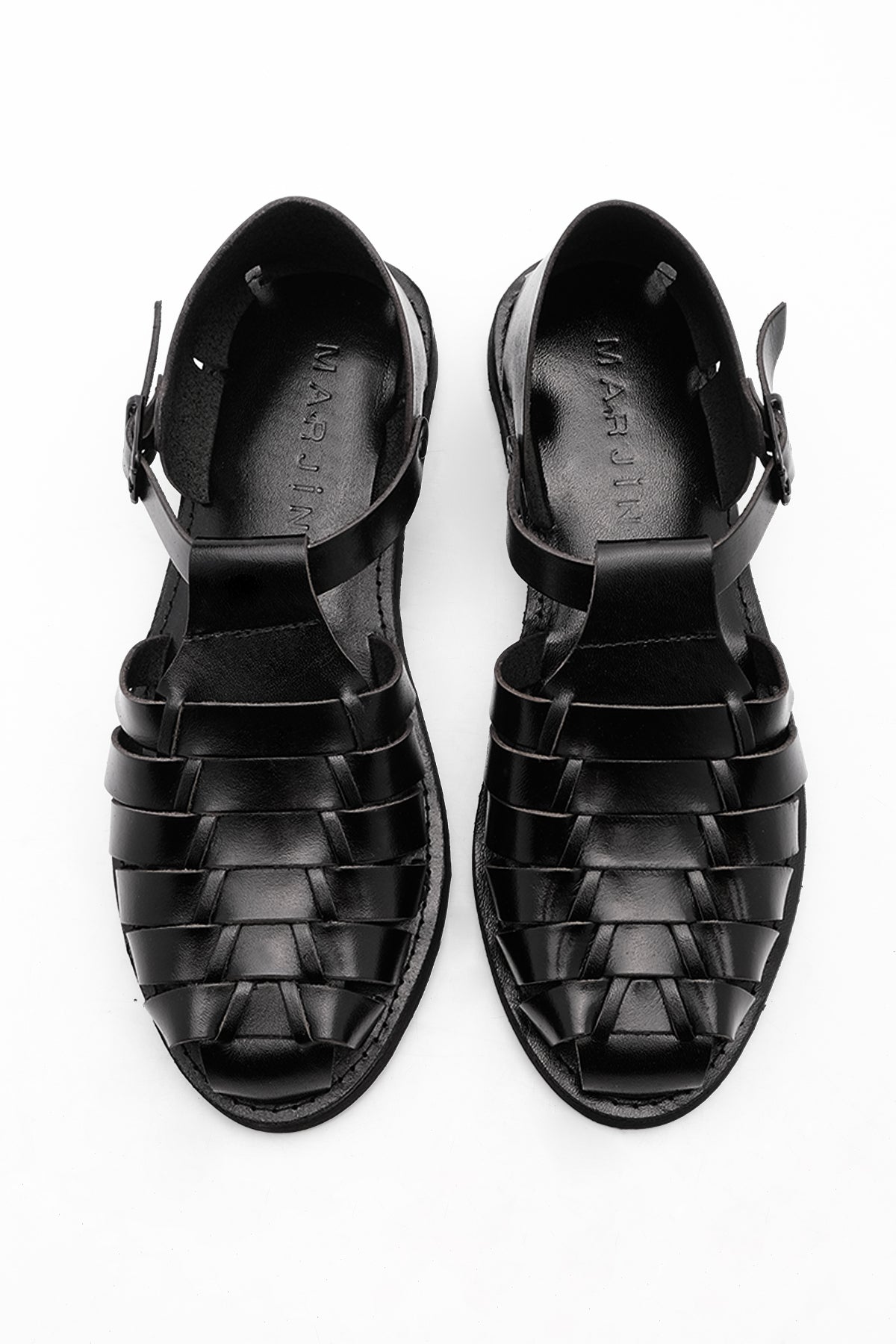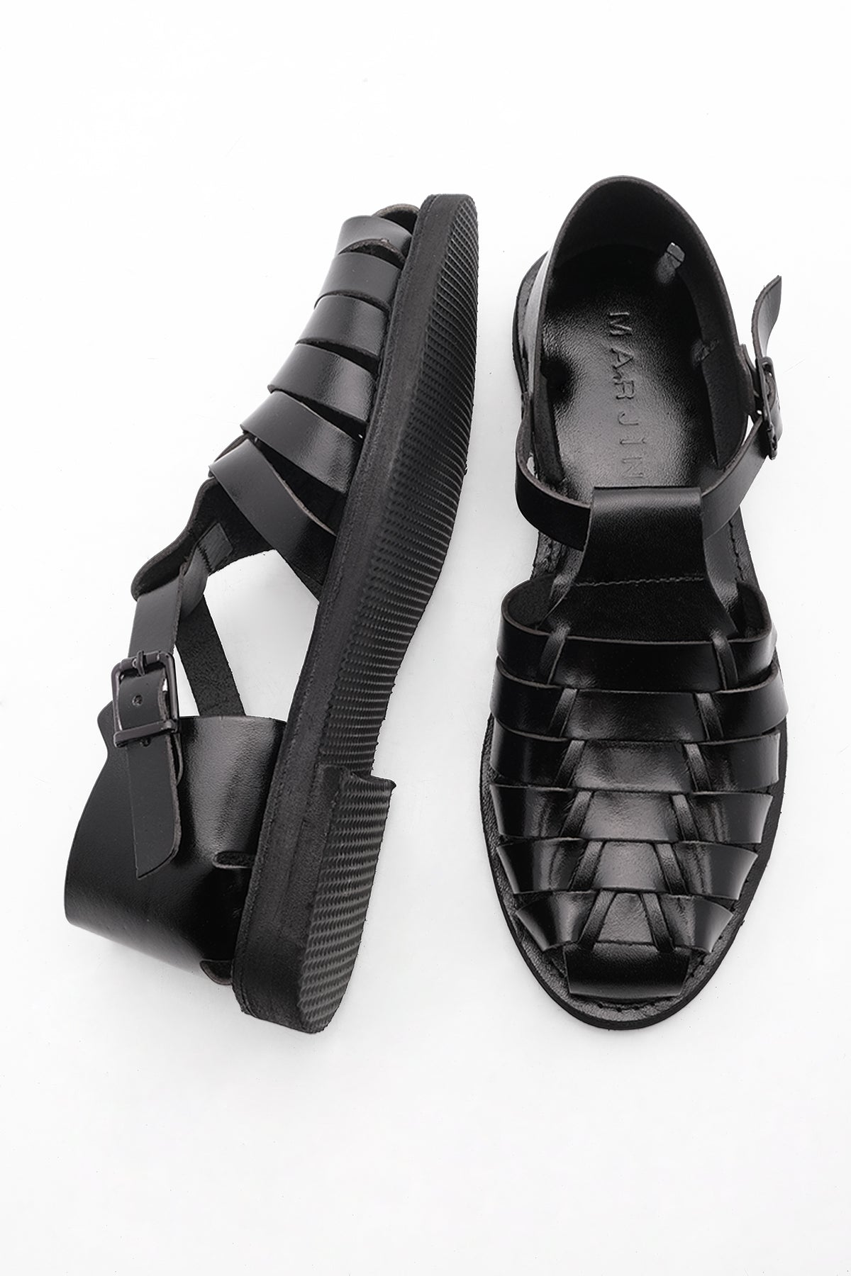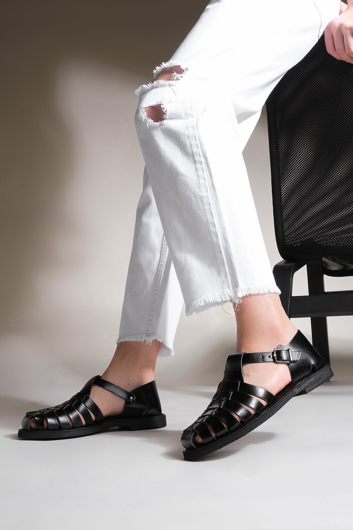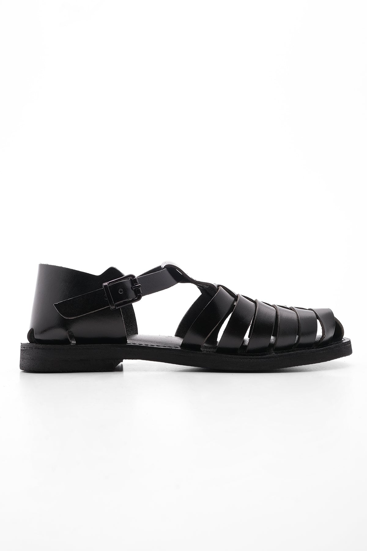 Kadın Hakiki Deri Eva Taban Günlük Sandalet Marke - Siyah