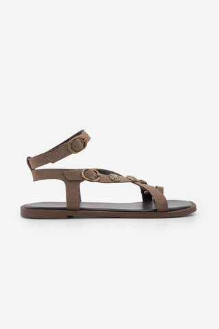 Kadın Parmak Arası Tokalı Günlük Sandalet Solveta - Vizon Süet