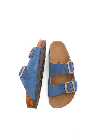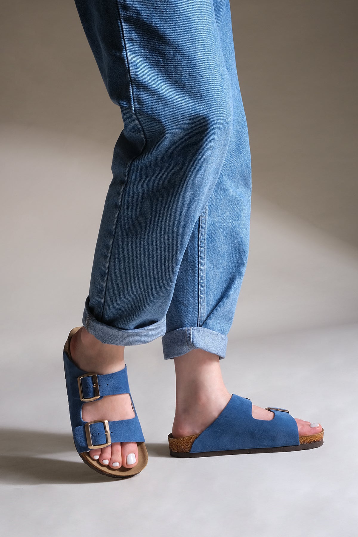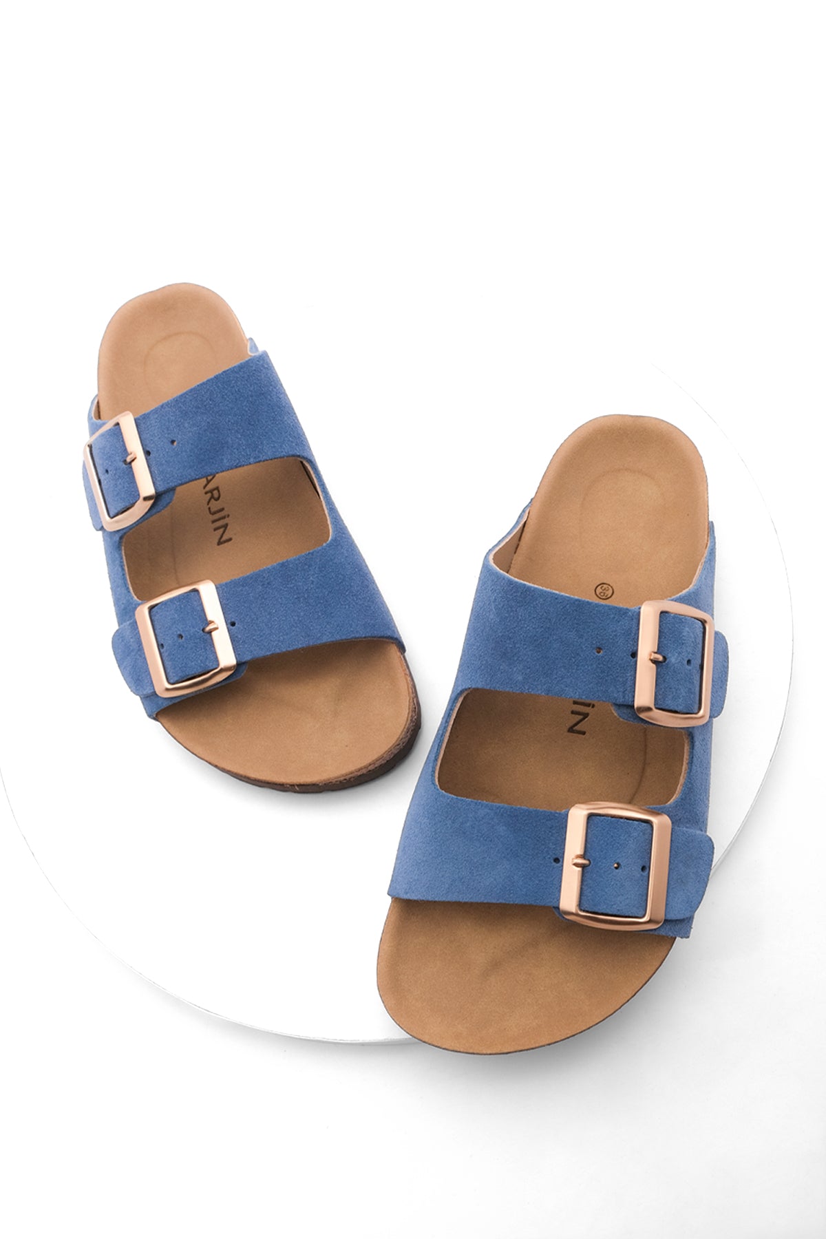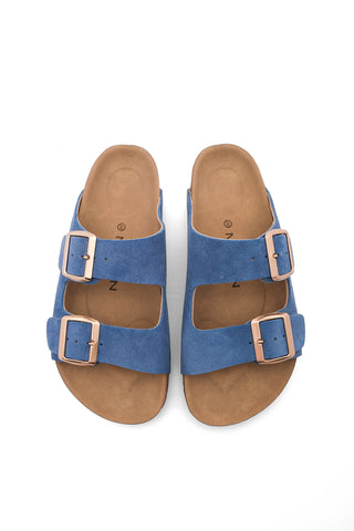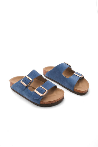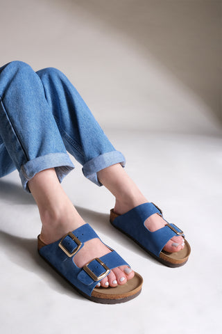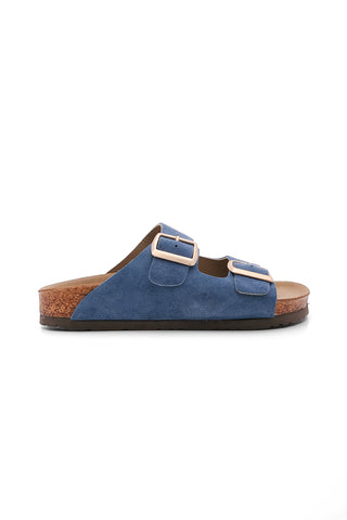 Kadın Hakiki Deri Eva Taban Günlük Terlik Poli - Mavi