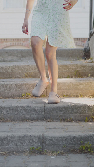 Kadın Hakiki Deri Eva Taban Sabo Günlük Terlik Sumpa - Bej Süet