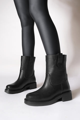 Kadın Hakiki Deri Günlük Bot Gater - Siyah