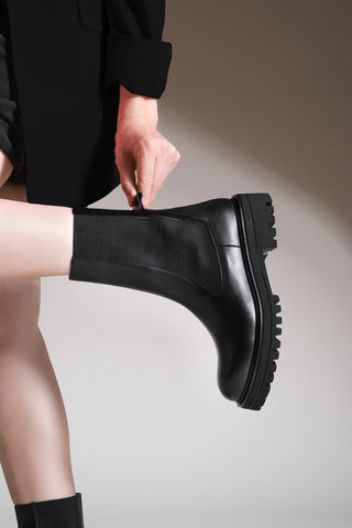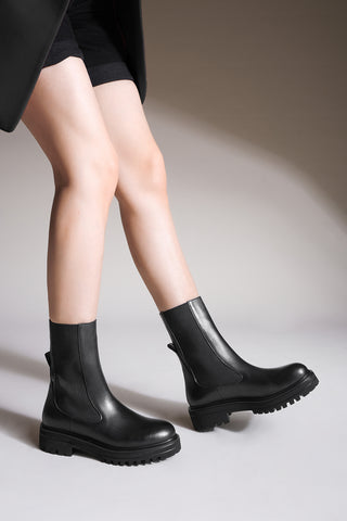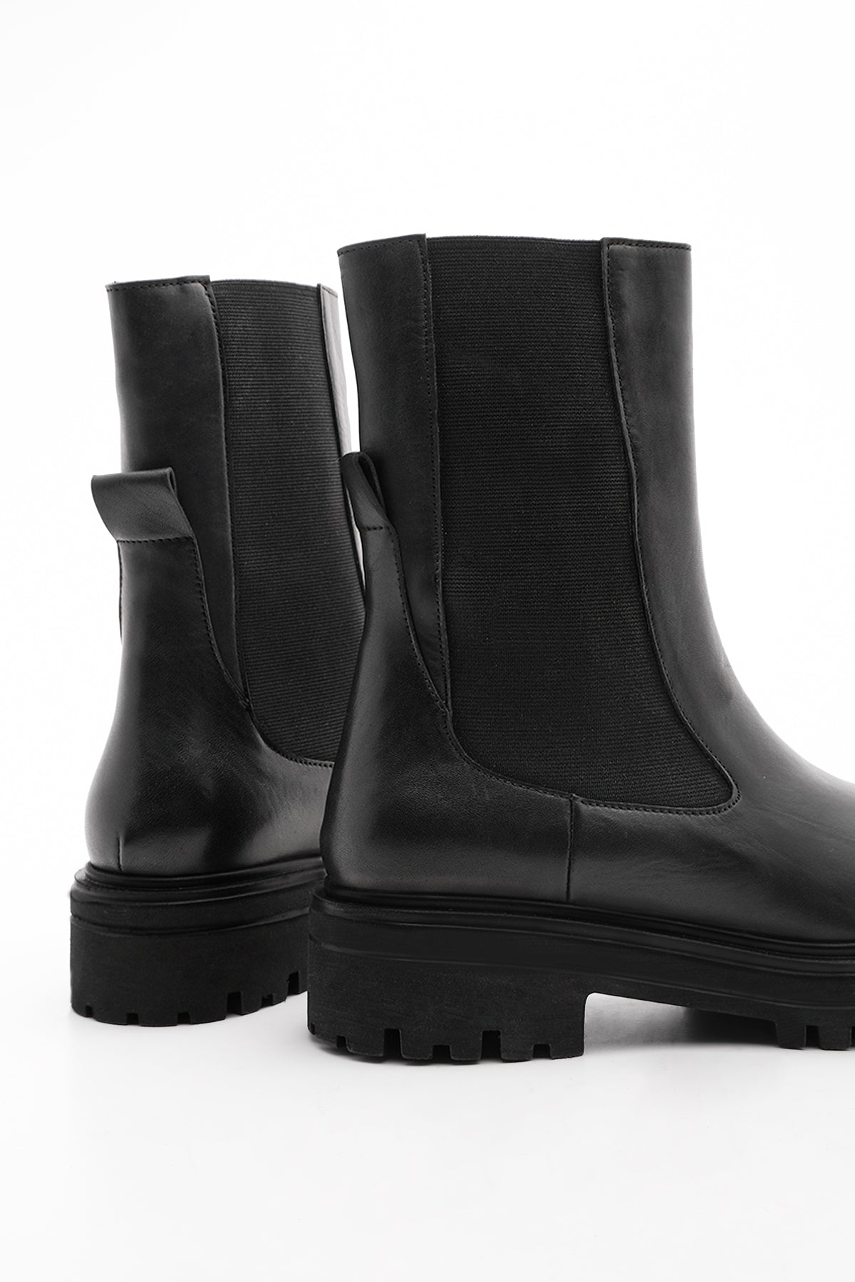 Kadın Kalın Taban Günlük Çizme Boren - Siyah