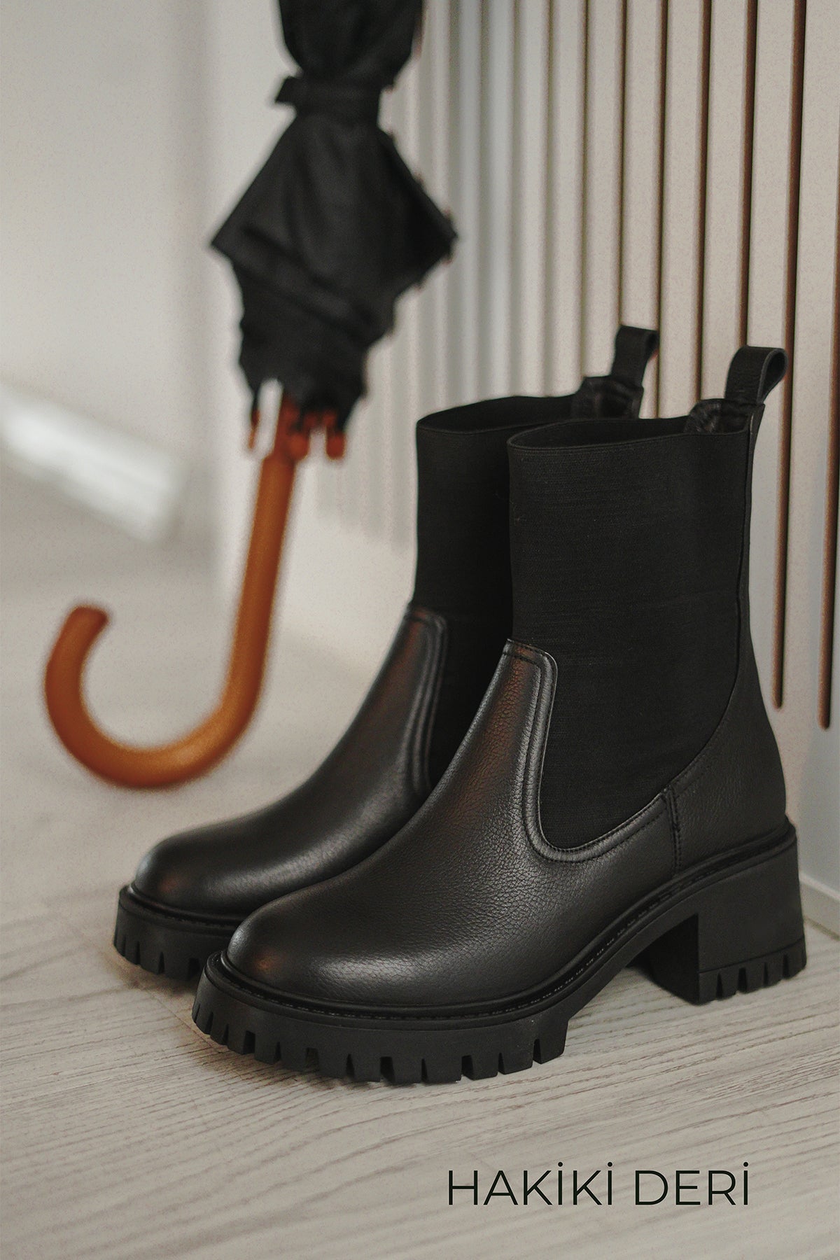 Kadın Hakiki Deri Günlük Bot Roden - Siyah