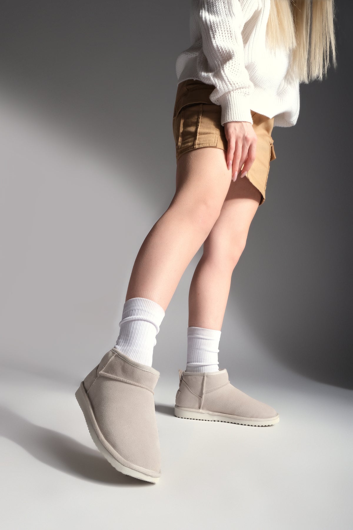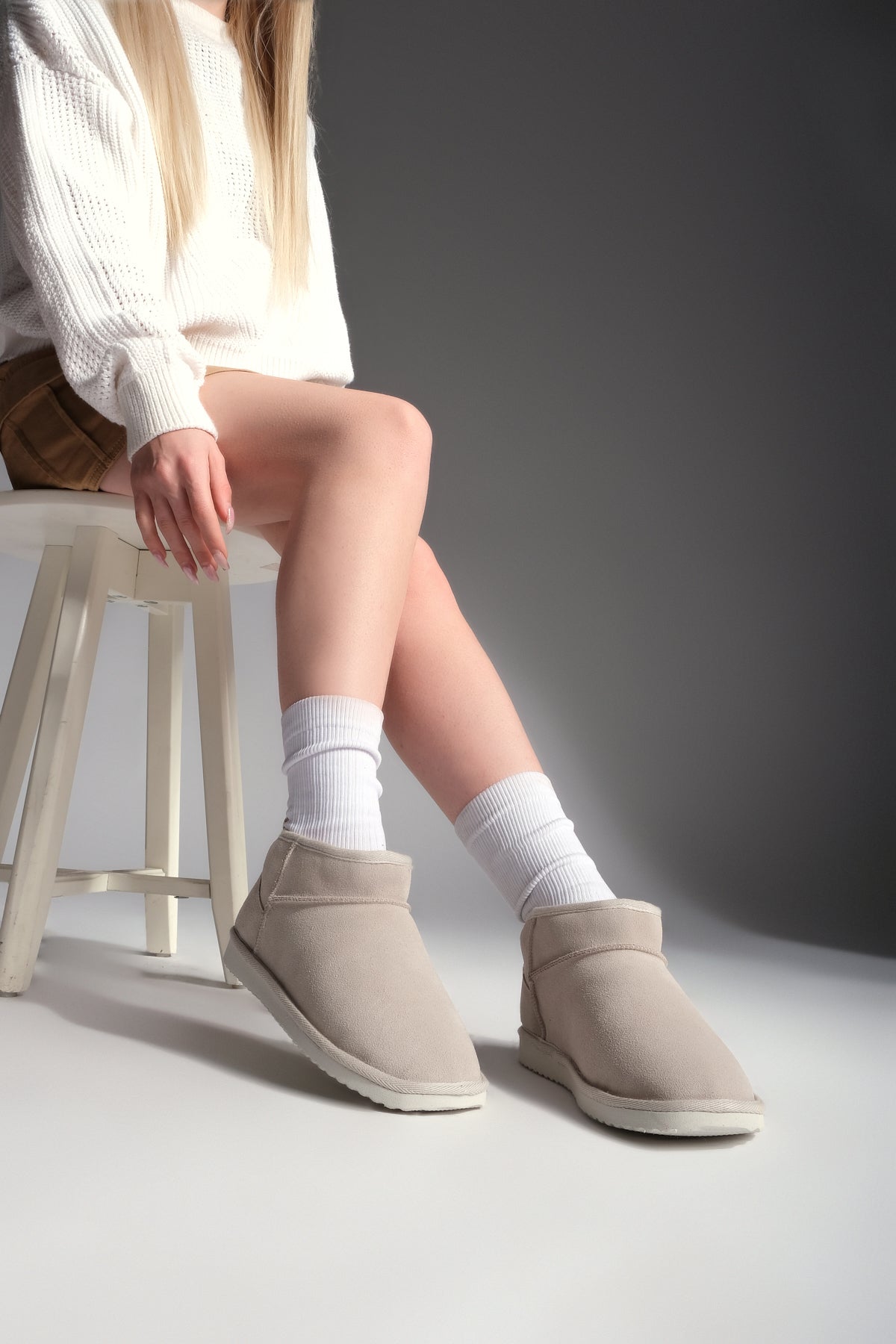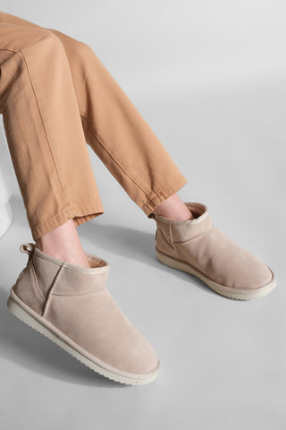 Kadın Hakiki Deri Günlük Bot Rolen - Bej Süet