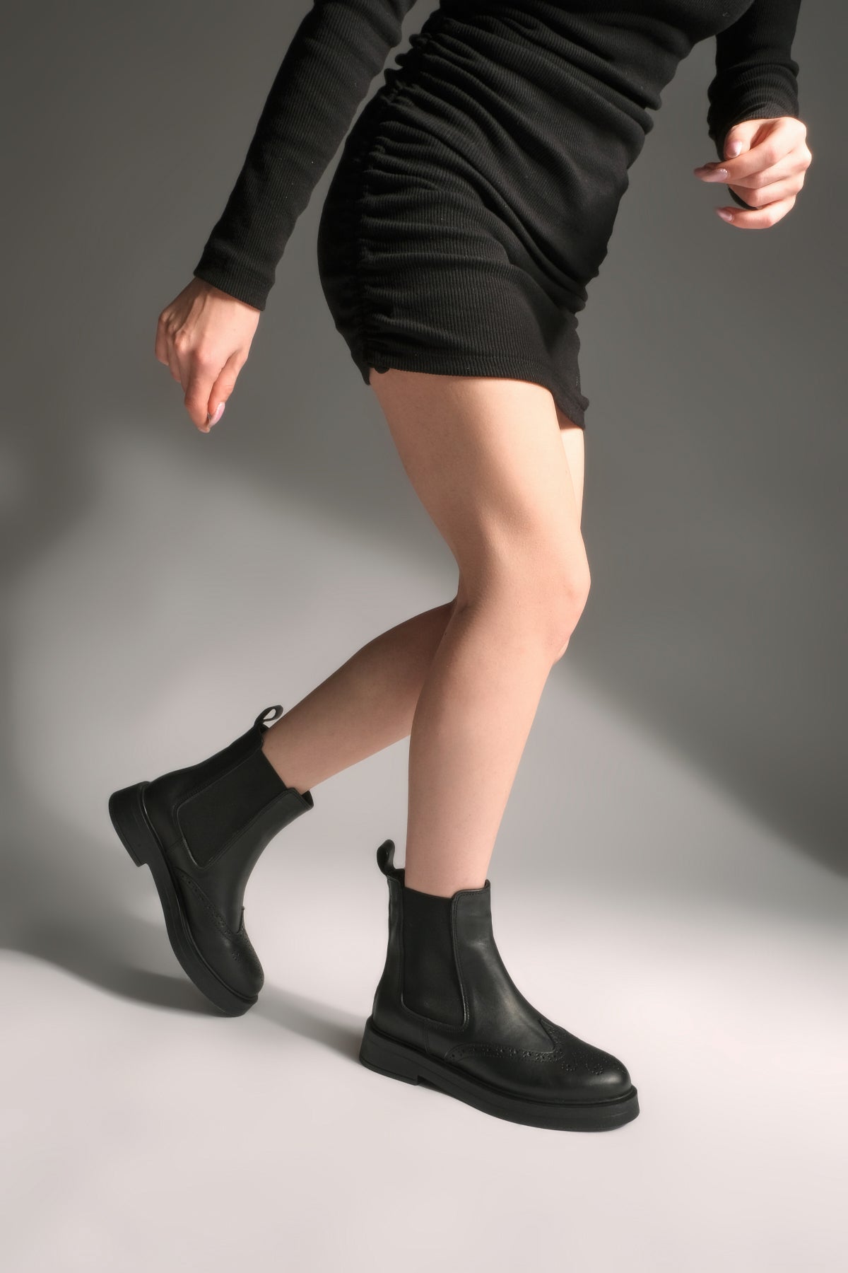 Kadın Hakiki Deri Günlük Bot Yestin - Siyah