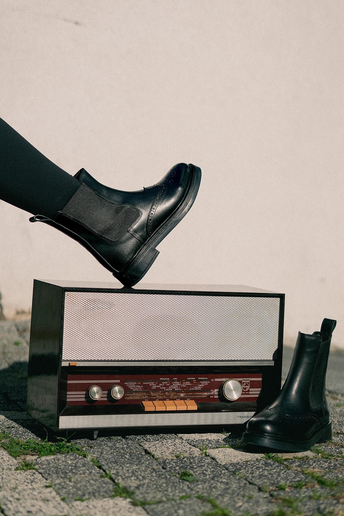 Kadın Kalın Taban Günlük Çizme Boren - Siyah