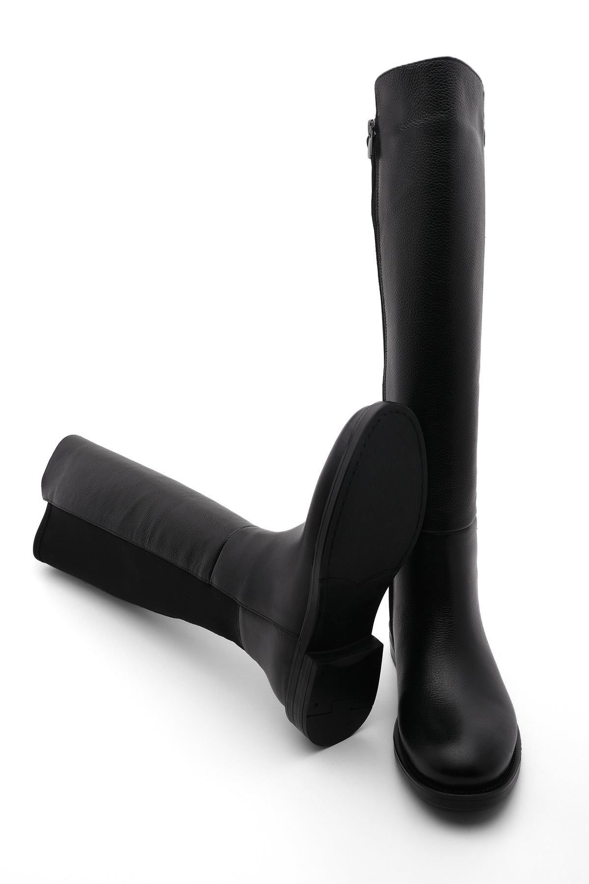 Kadın Fermuarsız Topuklu Çizme Runava - Siyah