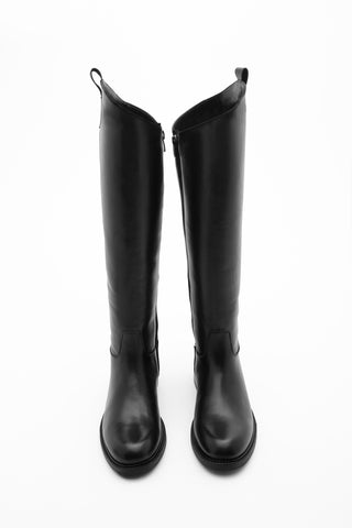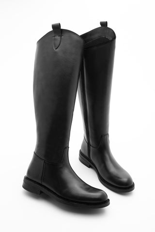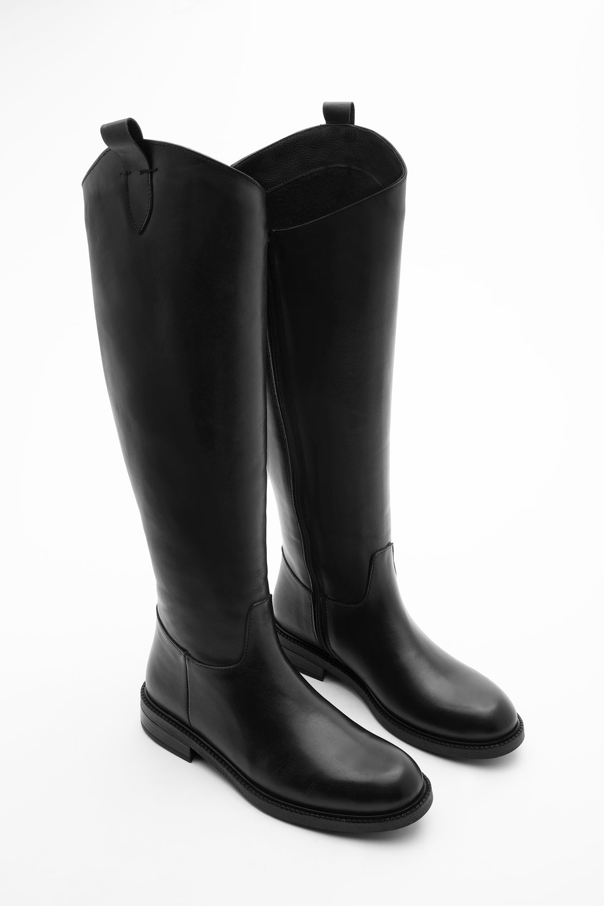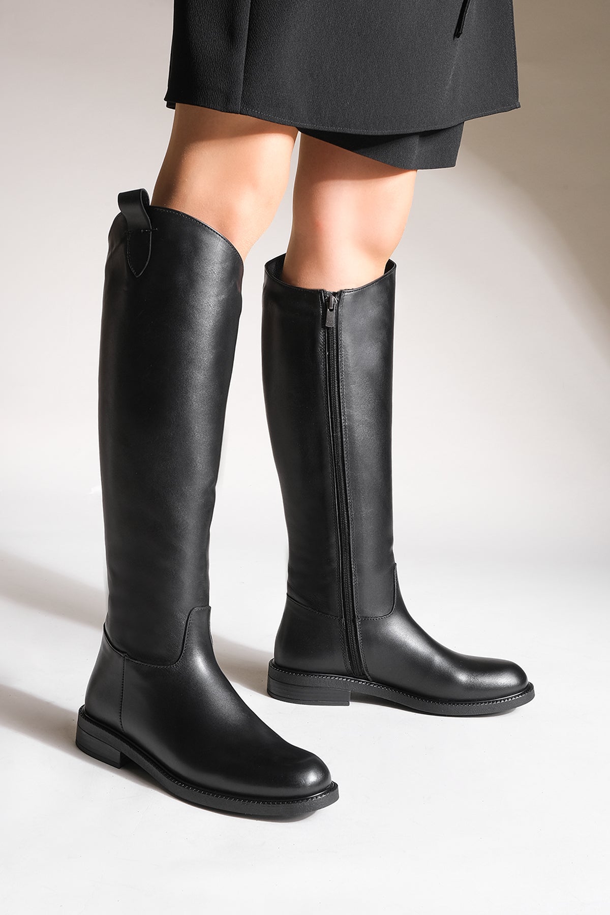 Kadın Hakiki Deri Günlük Çizme Sipatu - Siyah