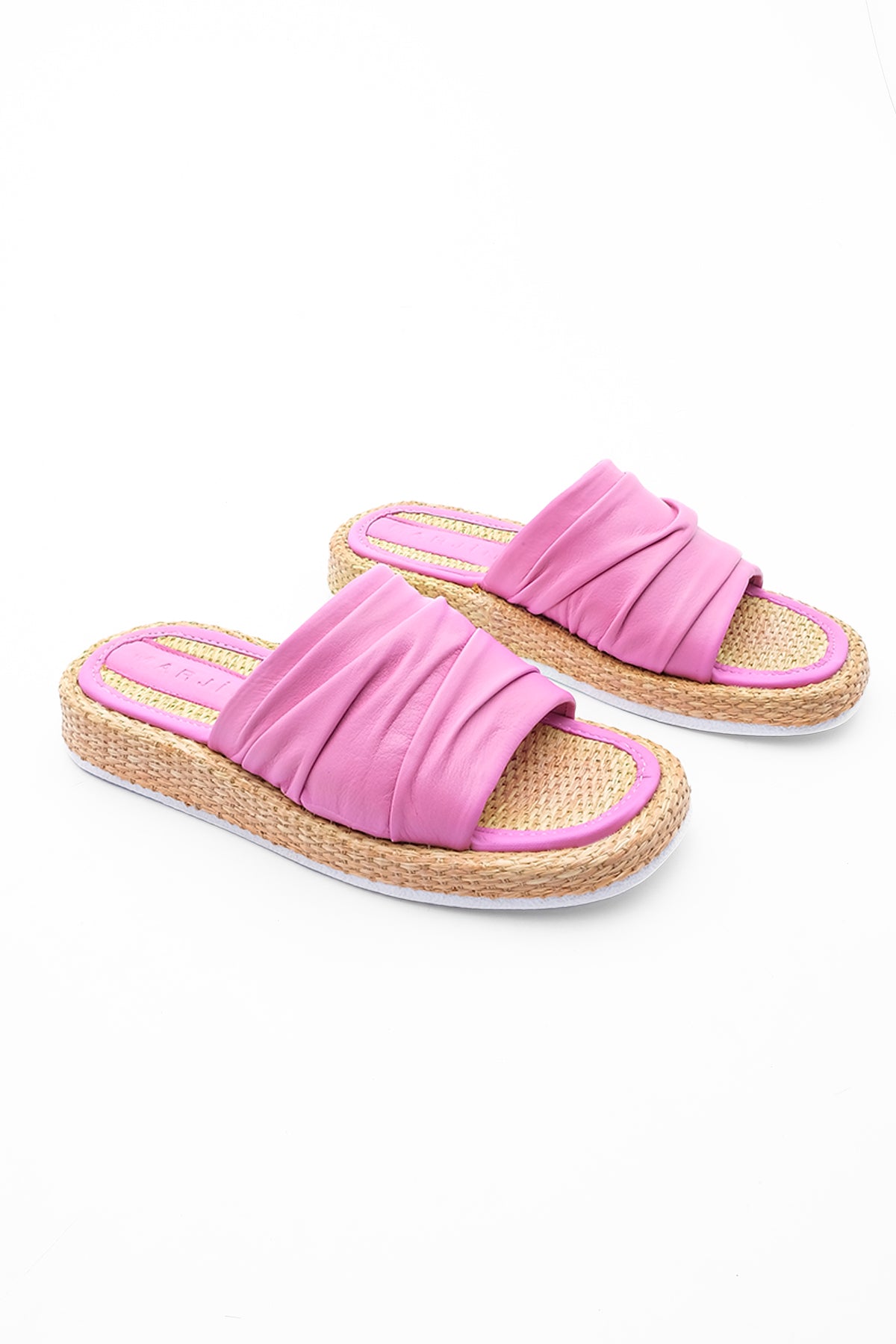 Kadın Hakiki Deri Hasır Kaplama Günlük Terlik Seha - Pembe