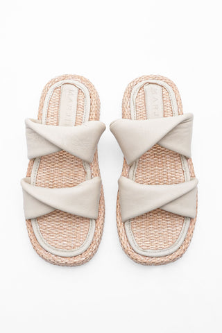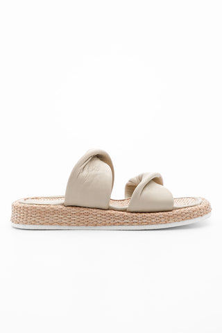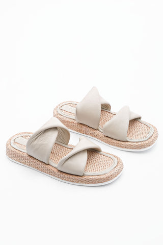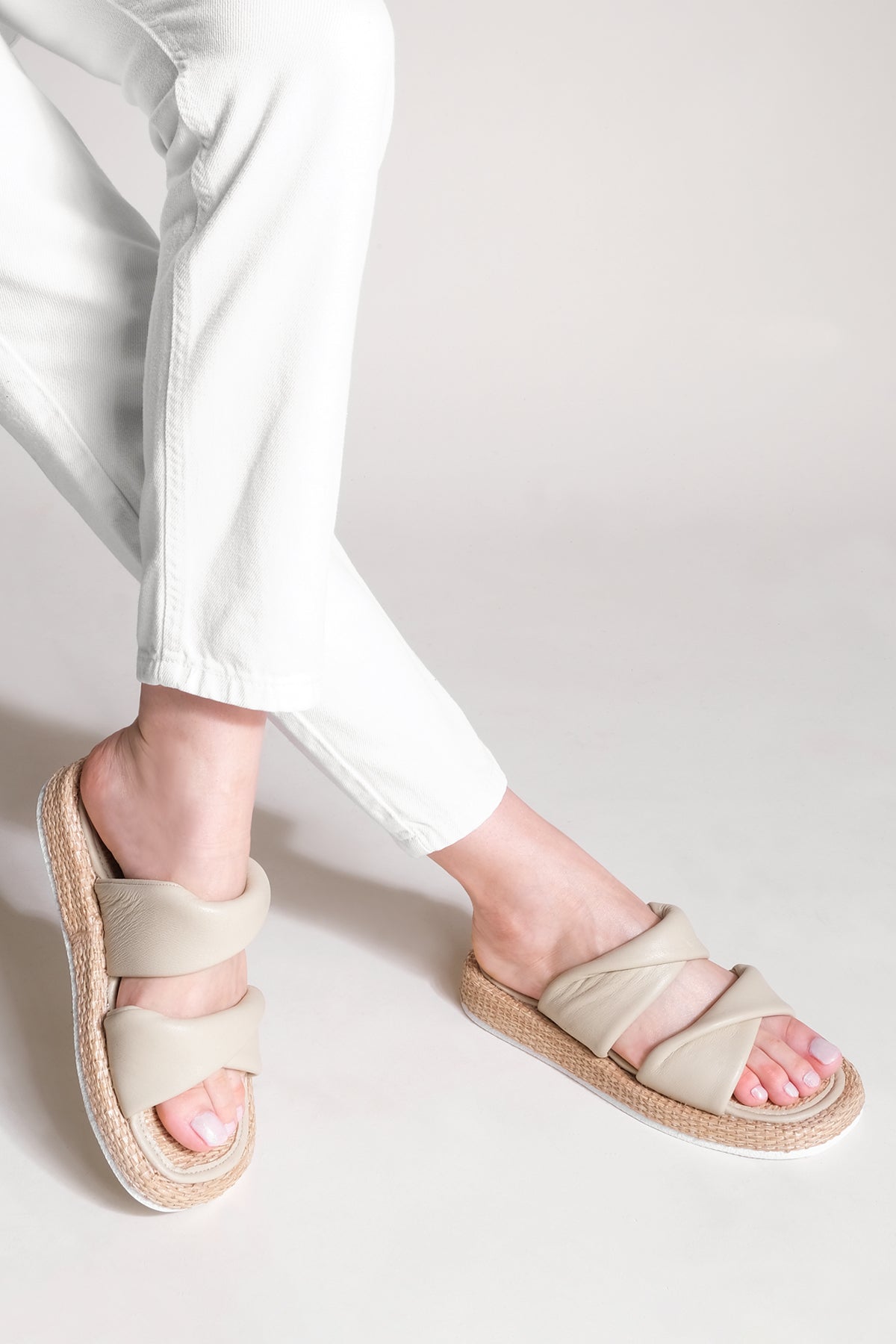 Kadın Hakiki Deri Hasır Taban Günlük Terlik Redine - Bej