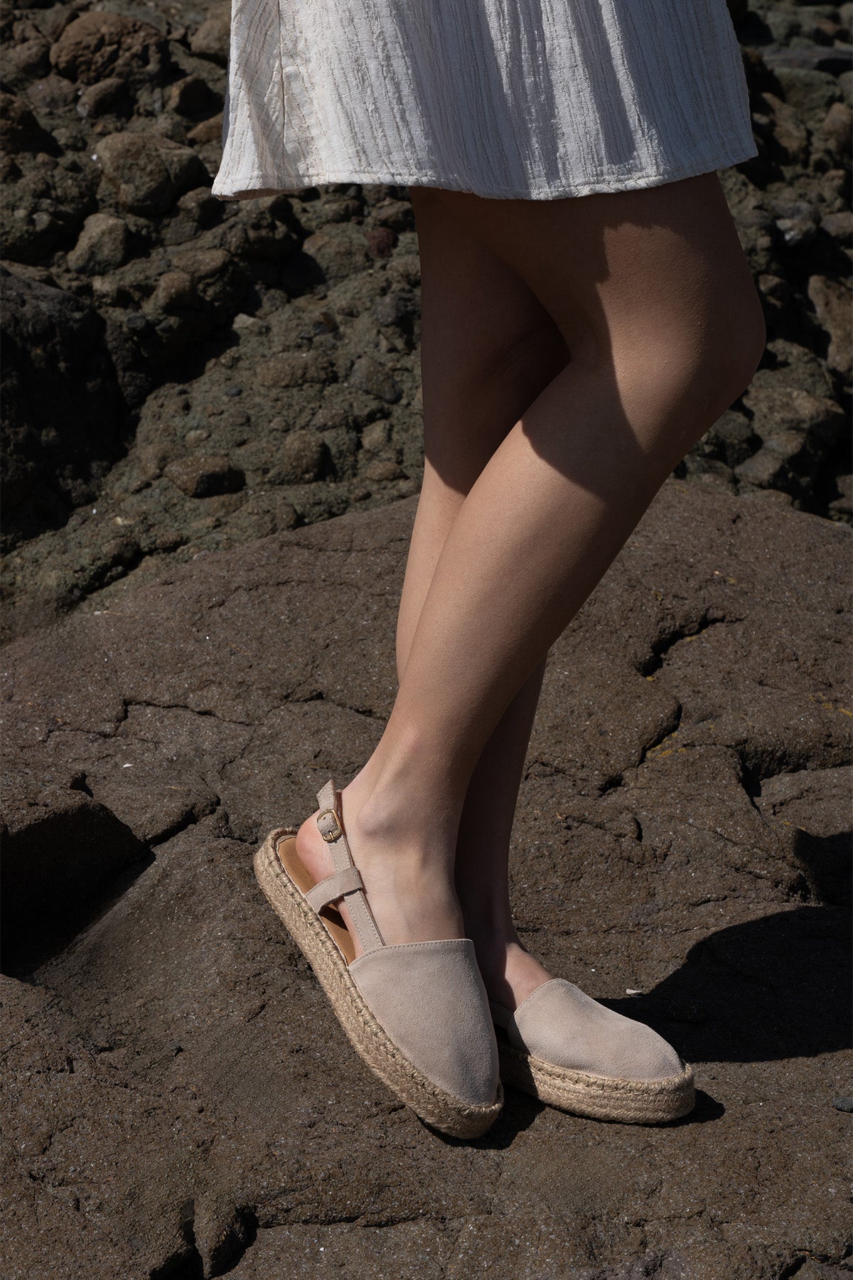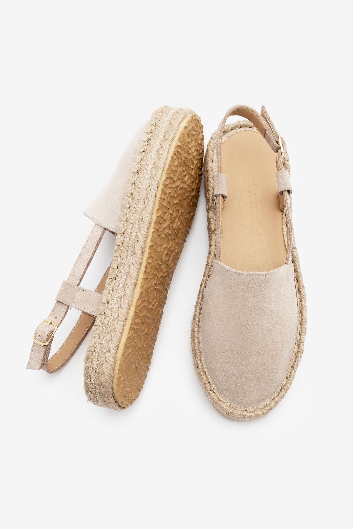 Kadın Hakiki Deri Jüt Espadril Sandalet Zutan - Bej Süet