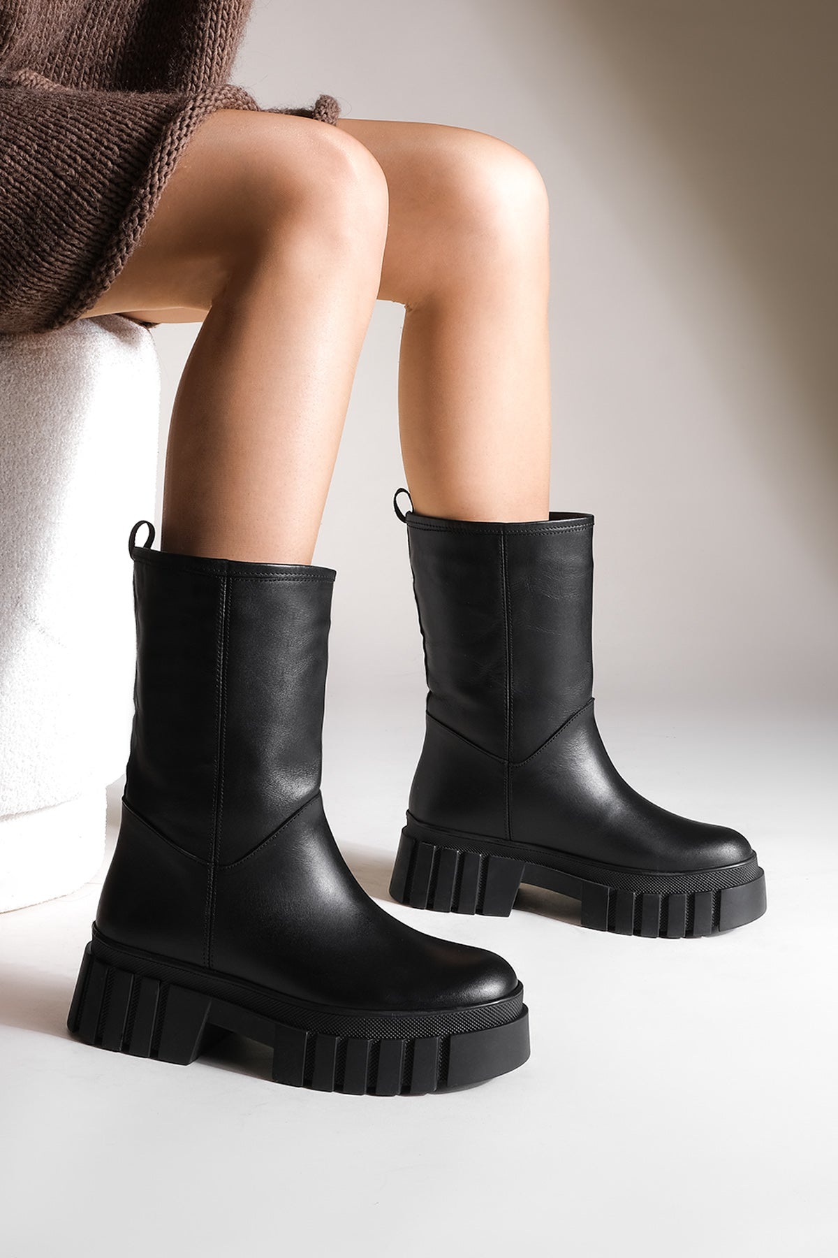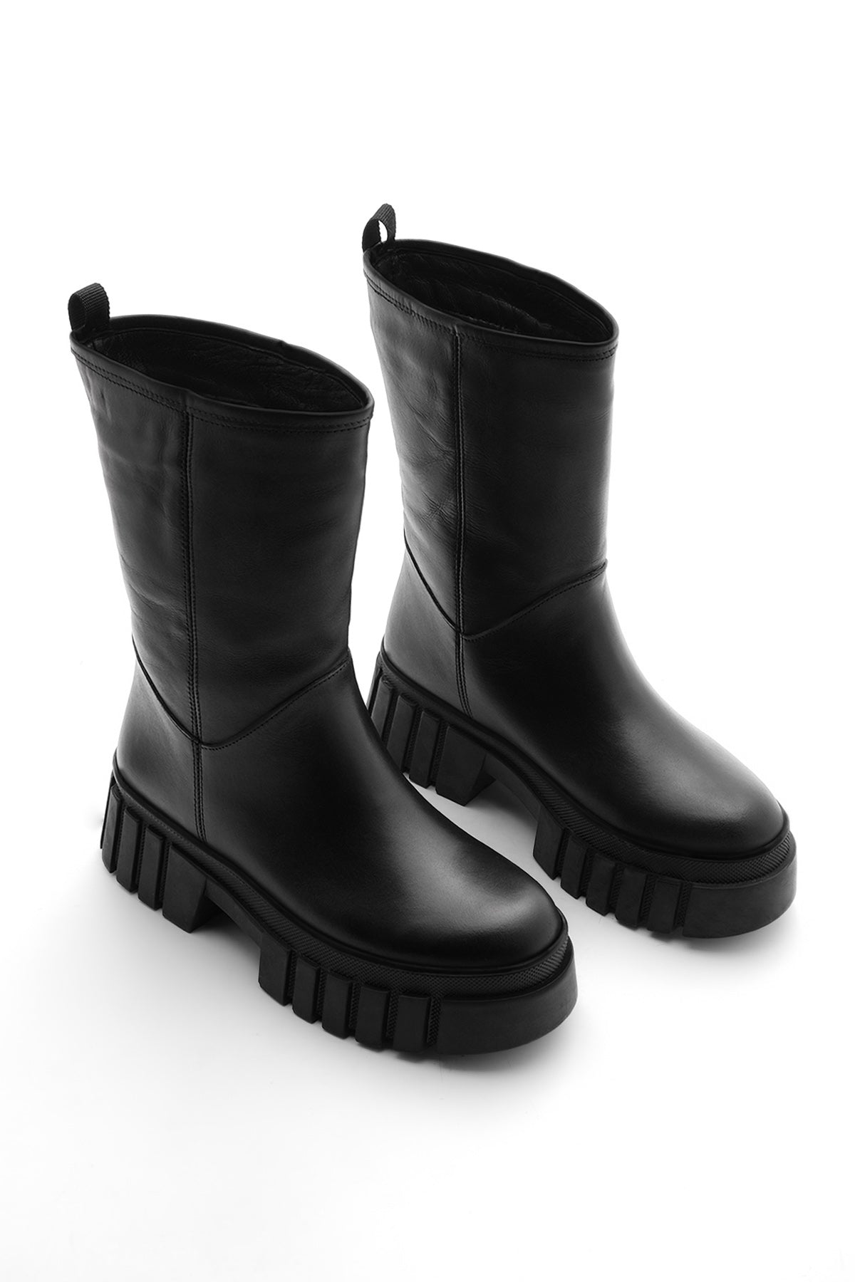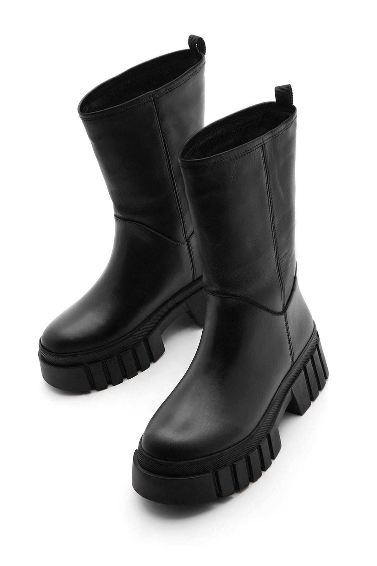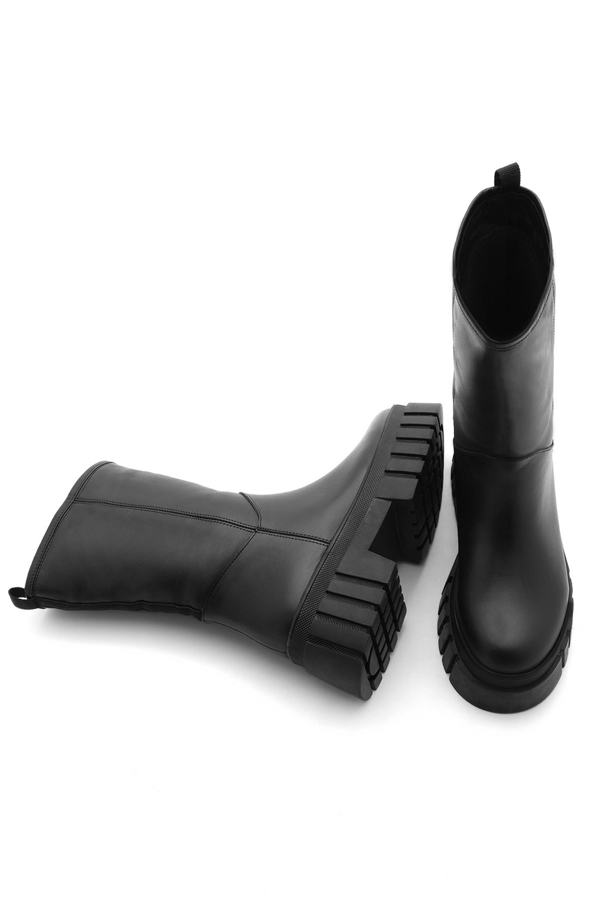Kadın Kalın Taban Günlük Çizme Boren - Siyah