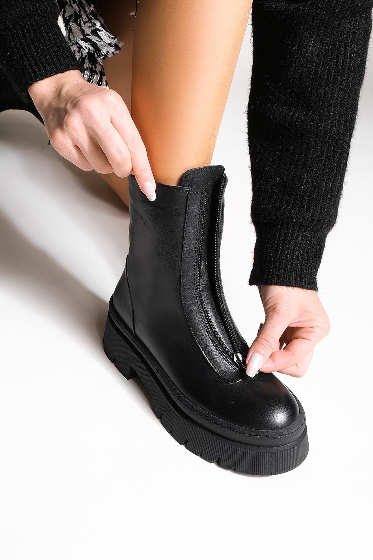 Kadın Hakiki Deri Günlük Bot Telasa - Siyah