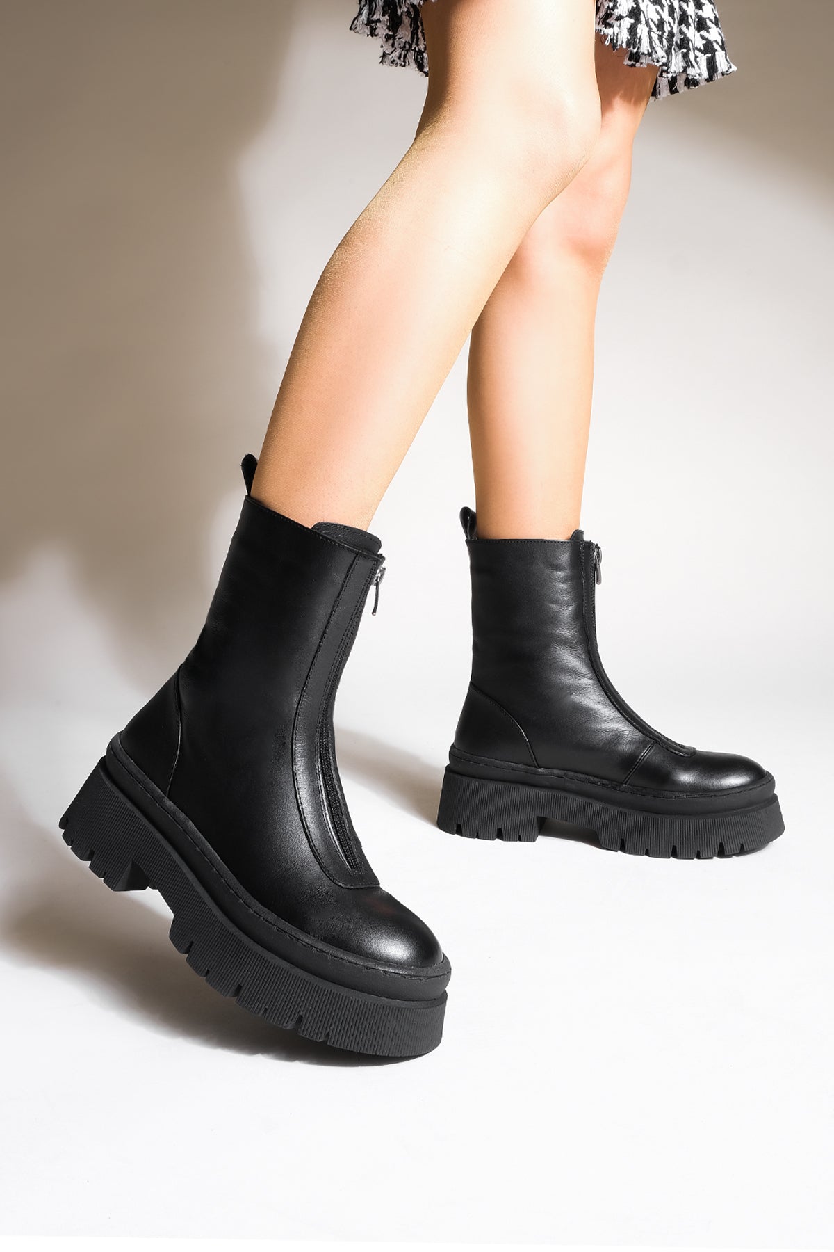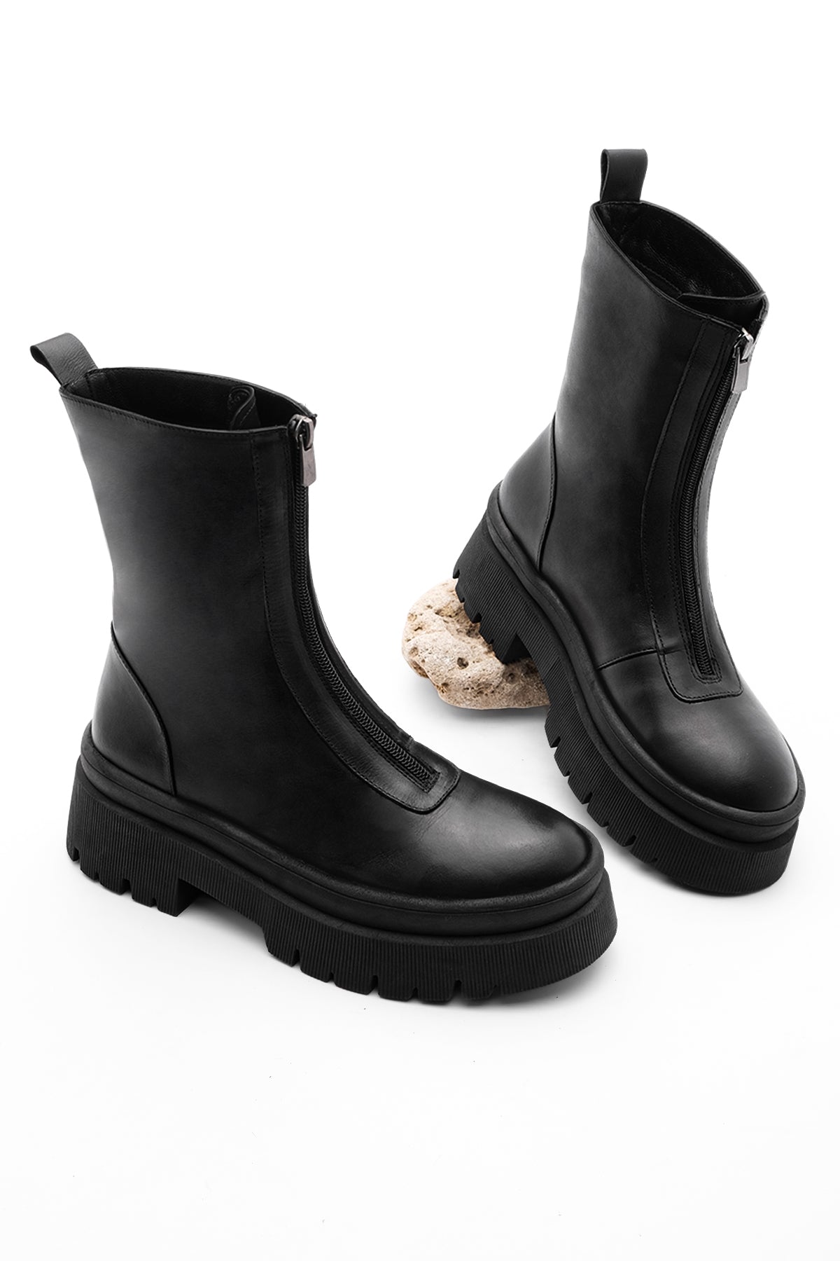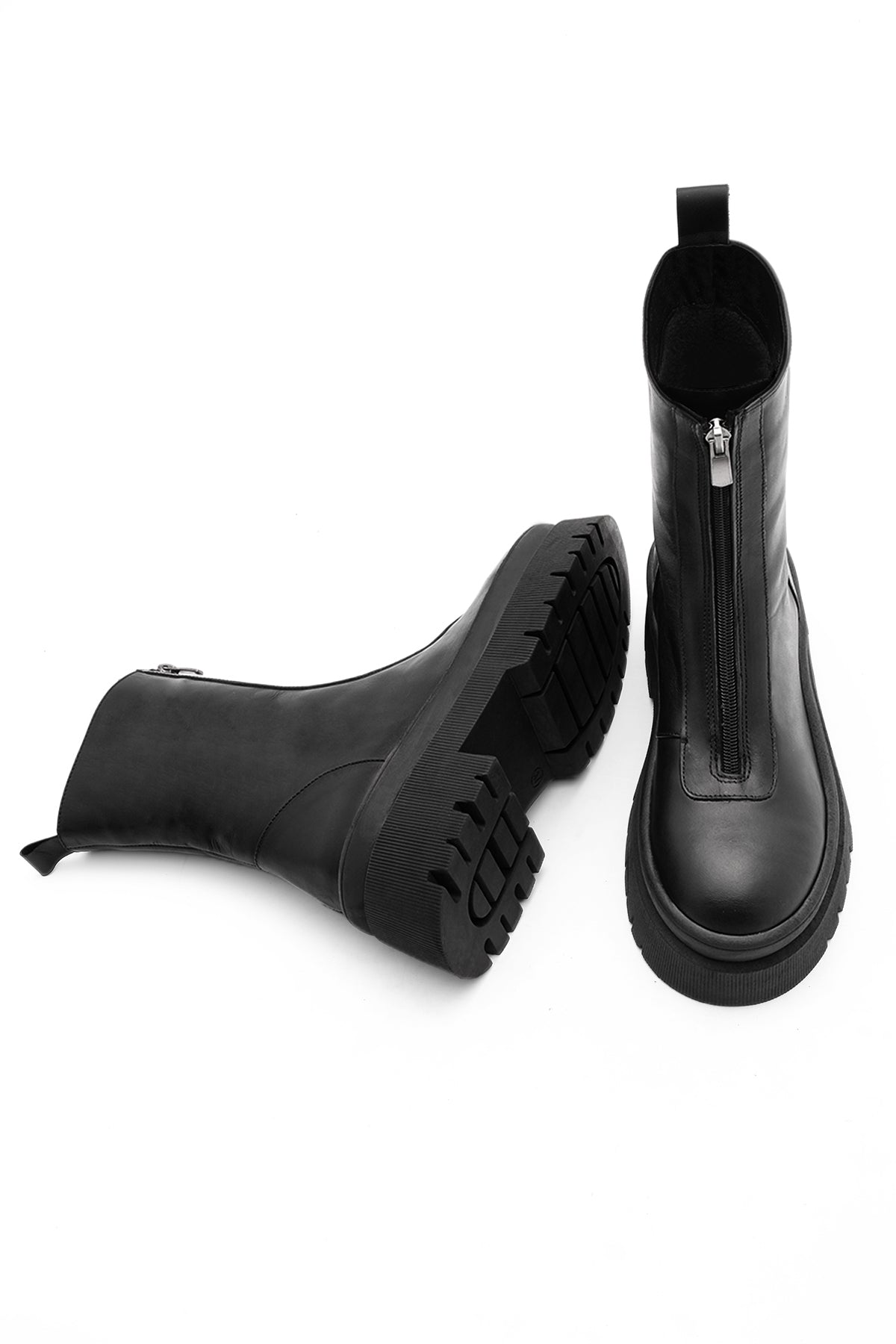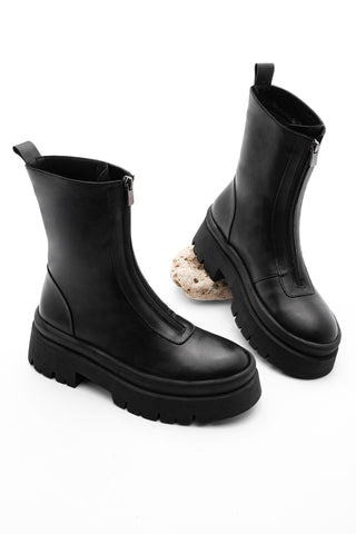 Kadın Kalın Taban Günlük Çizme Boren - Siyah
