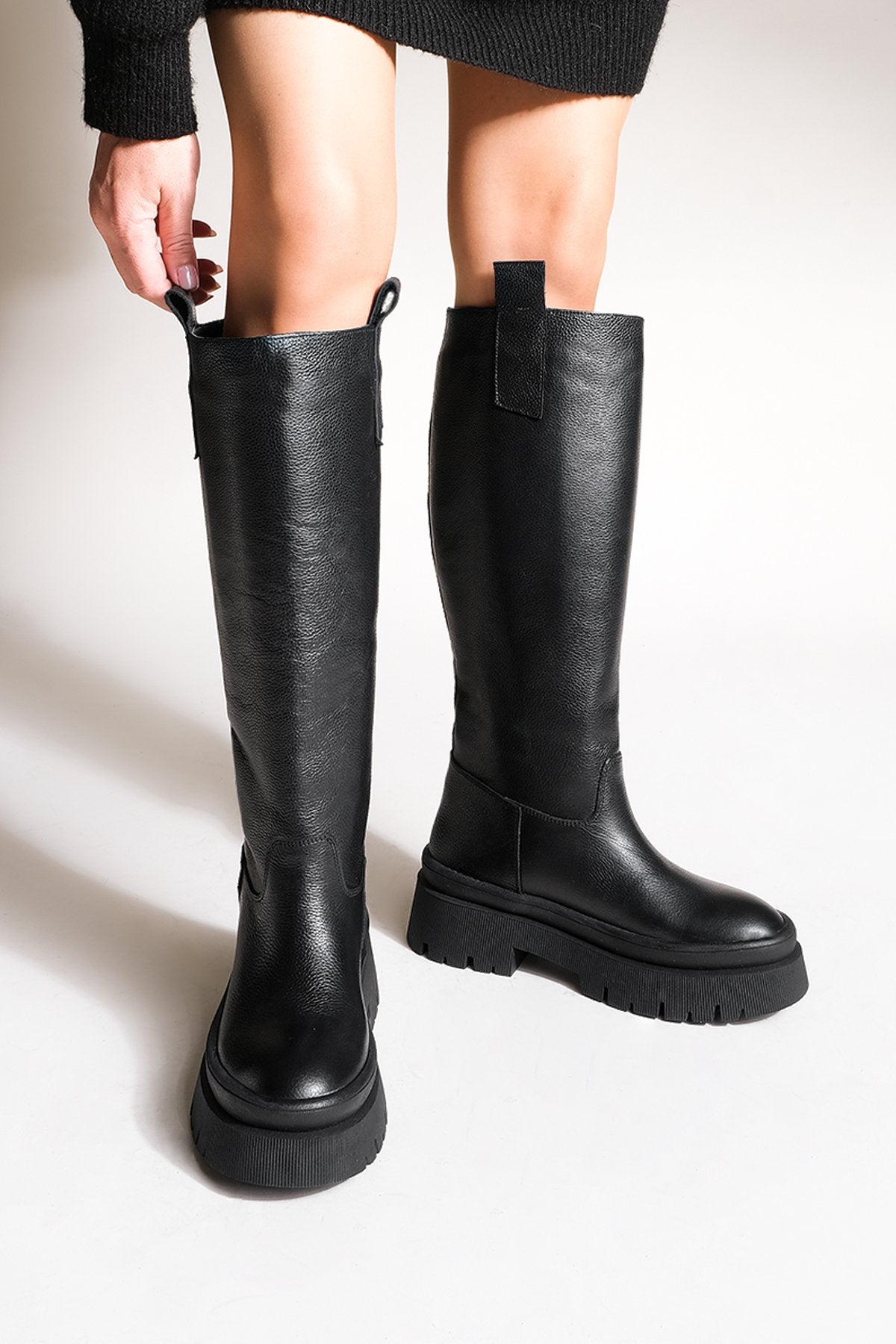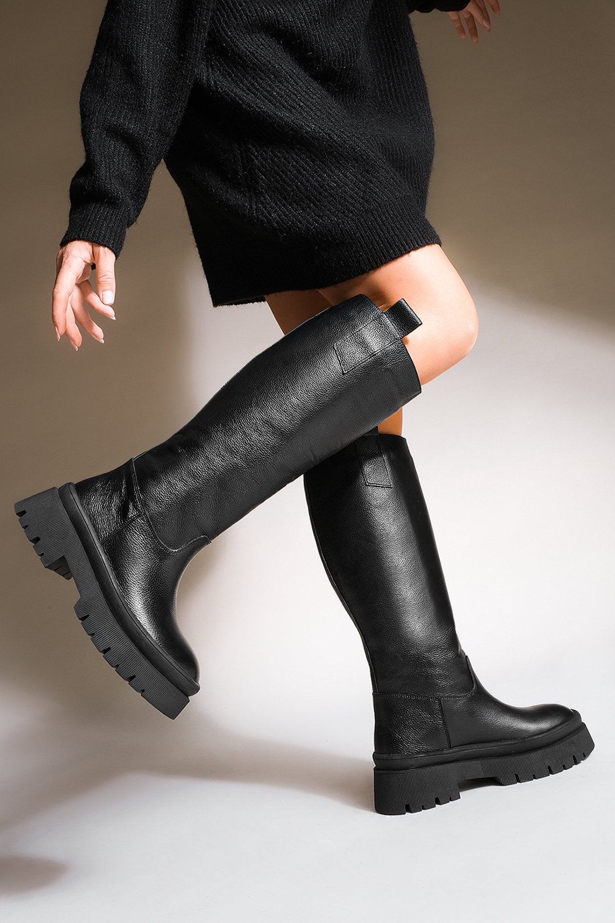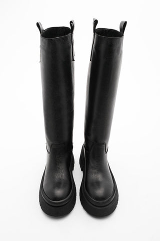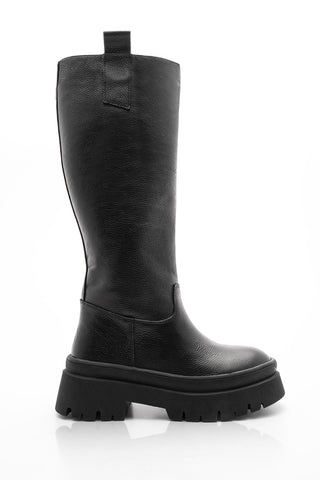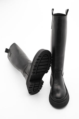 Kadın Kalın Taban Günlük Çizme Boren - Siyah