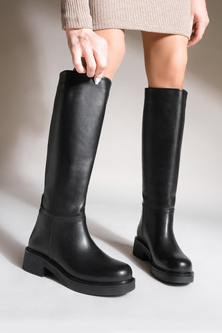 Kadın Hakiki Deri Günlük Çizme Gucare - Siyah
