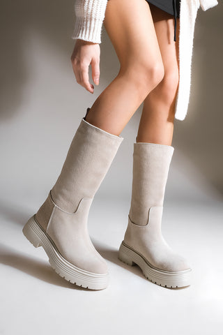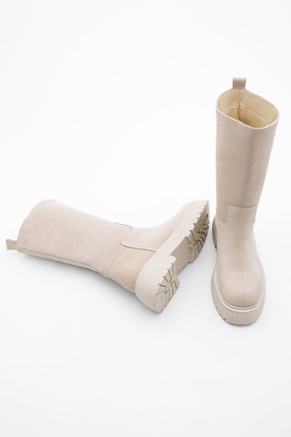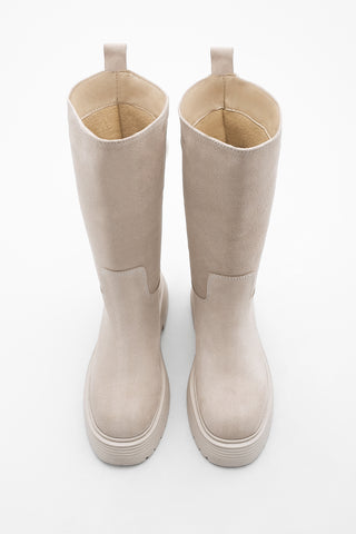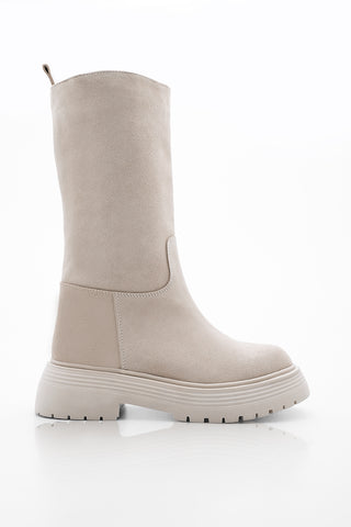 Kadın Hakiki Deri Günlük Çizme Yanviz - Bej Süet