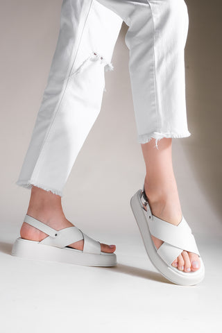 Kadın Hakiki Deri Günlük Sandalet Atirya - Beyaz