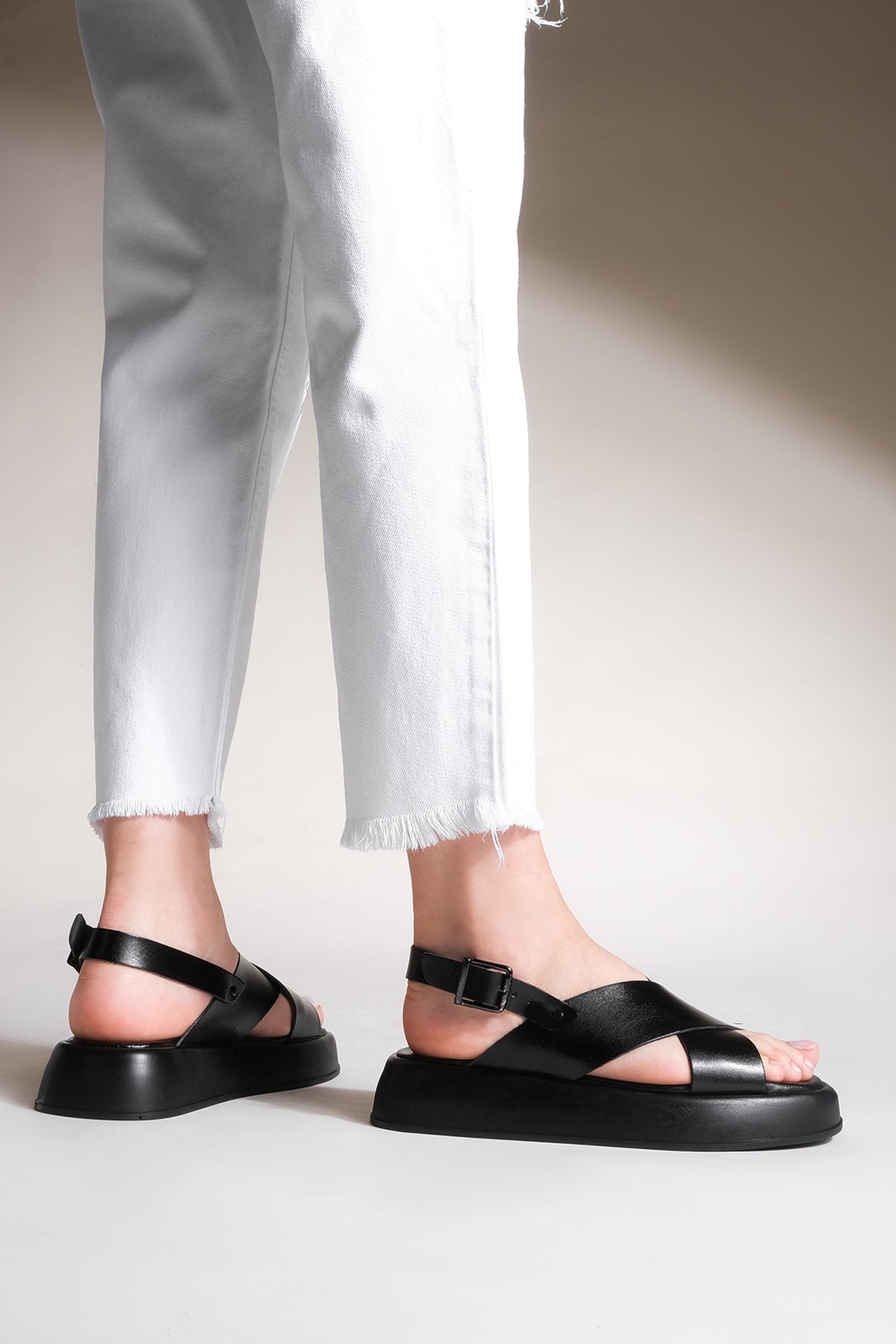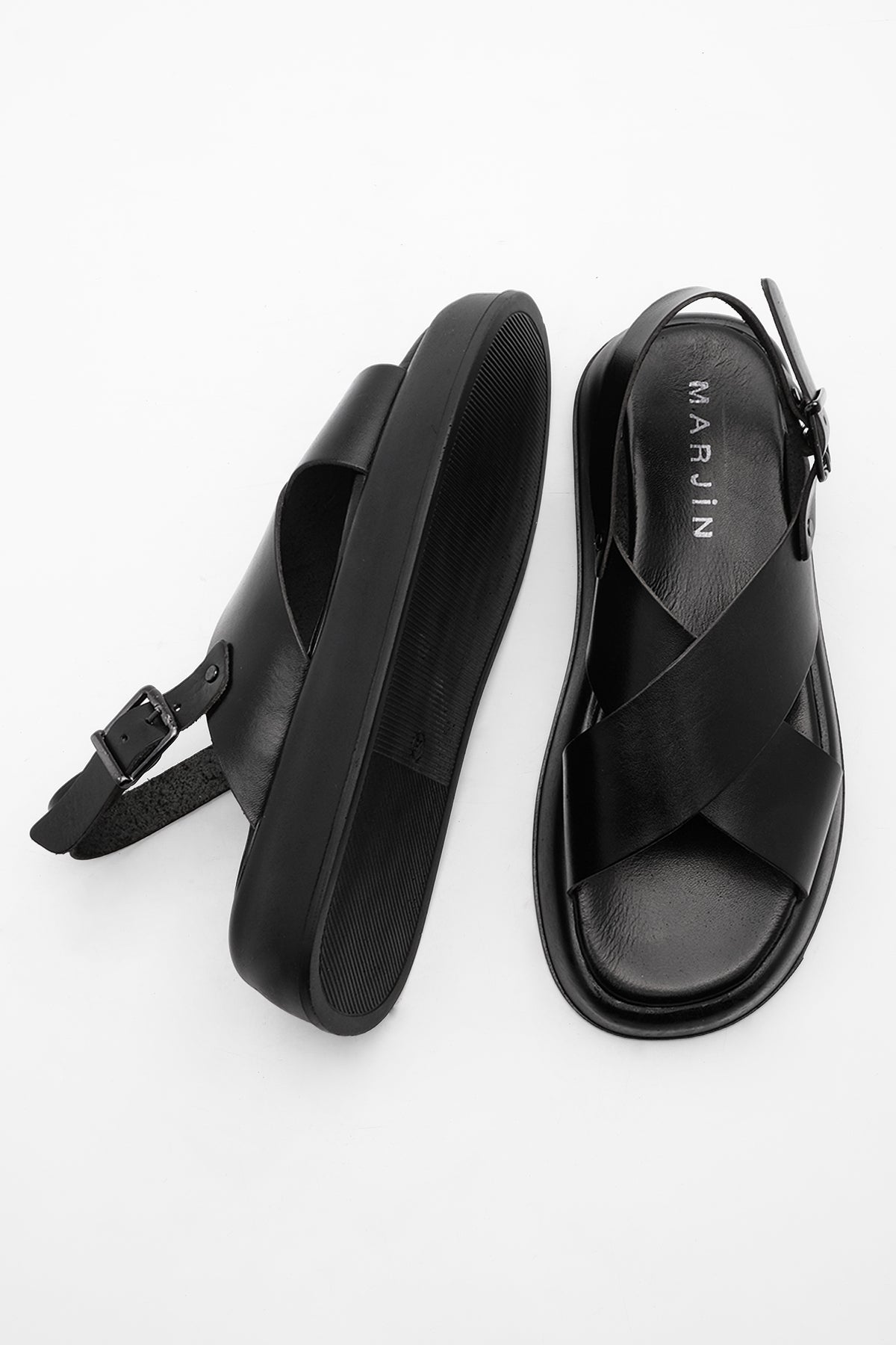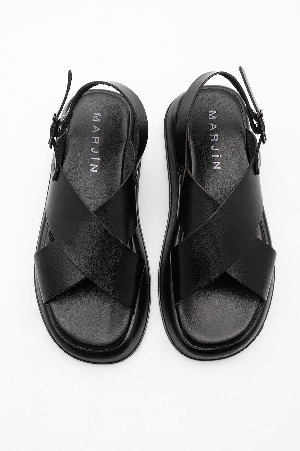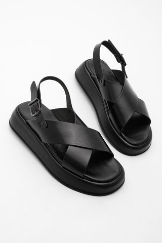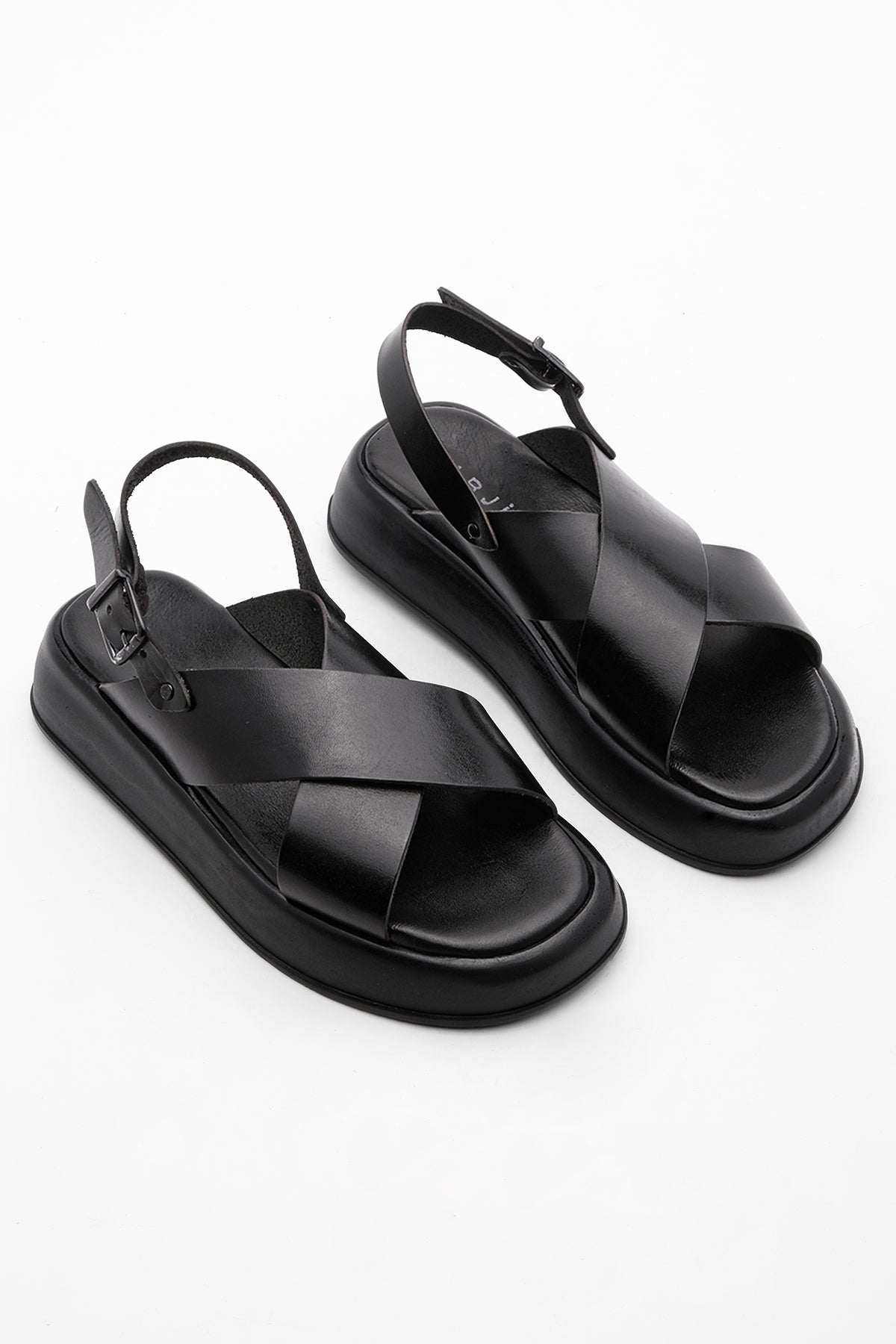Kadın Hakiki Deri Günlük Sandalet Atirya - Siyah