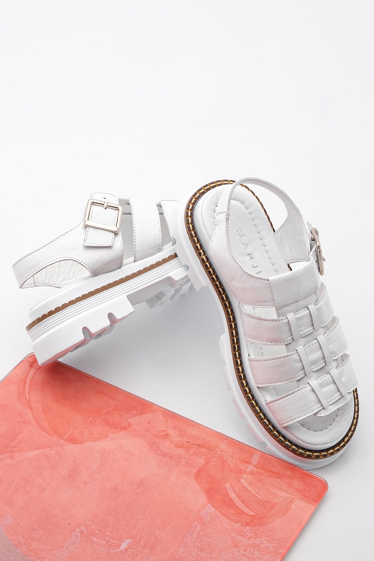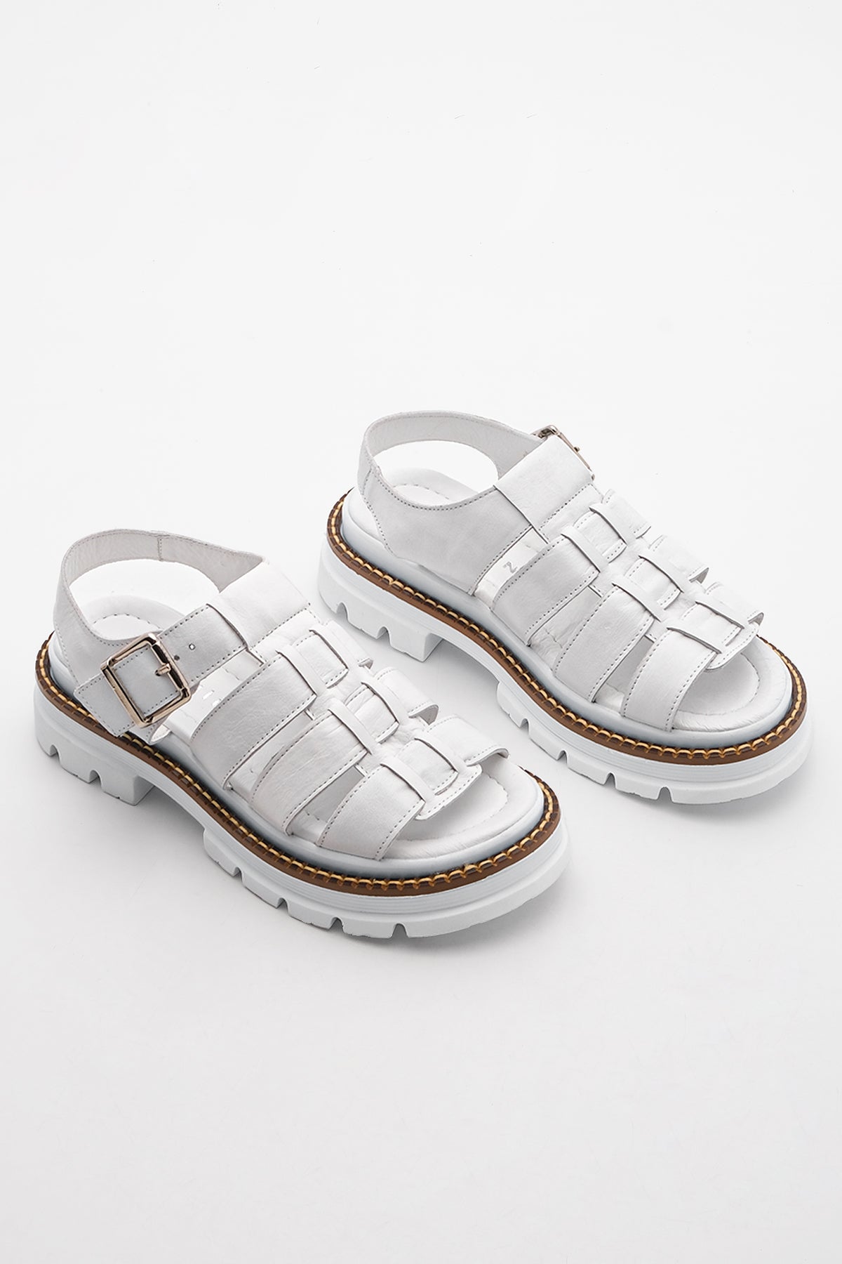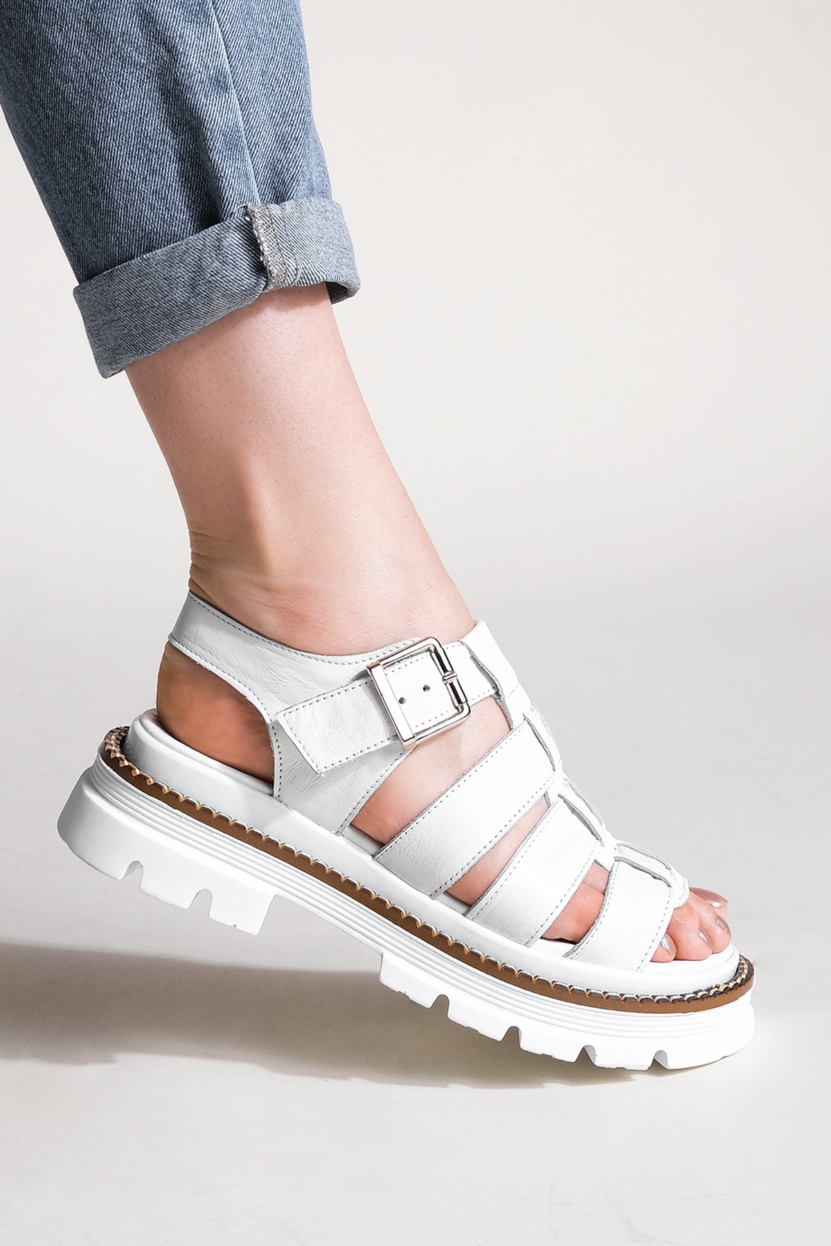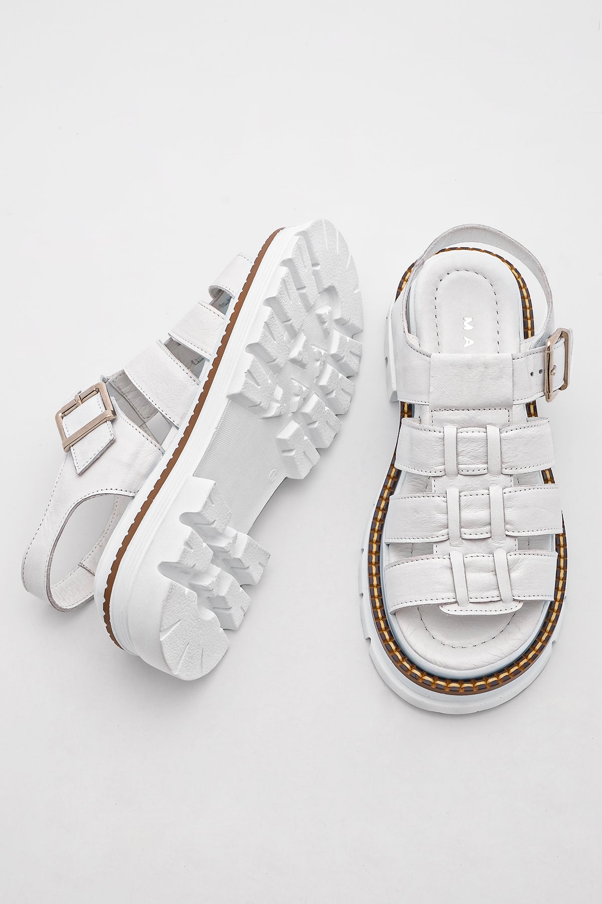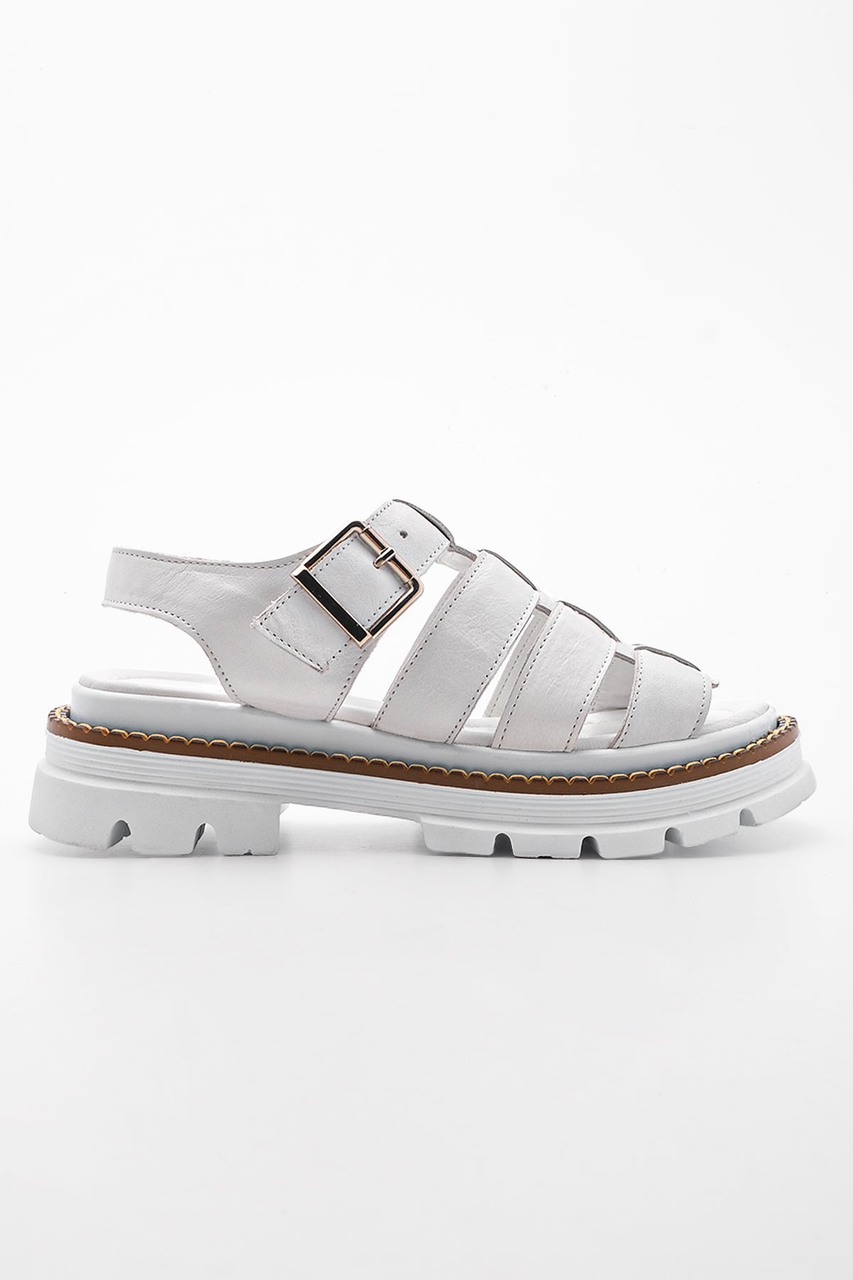 Kadın Hakiki Deri Günlük Sandalet Guesa - Beyaz