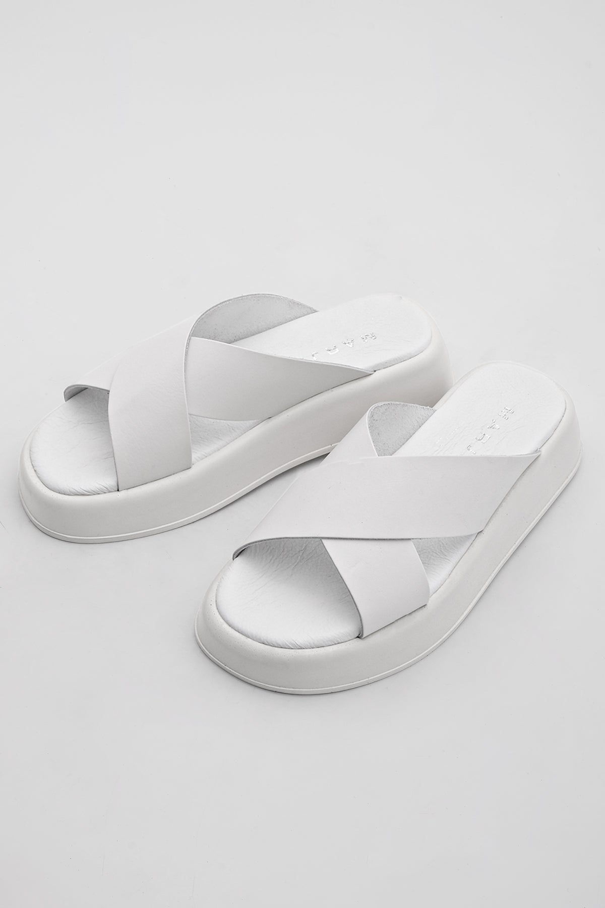 Kadın Hakiki Deri Günlük Terlik Encor - Beyaz