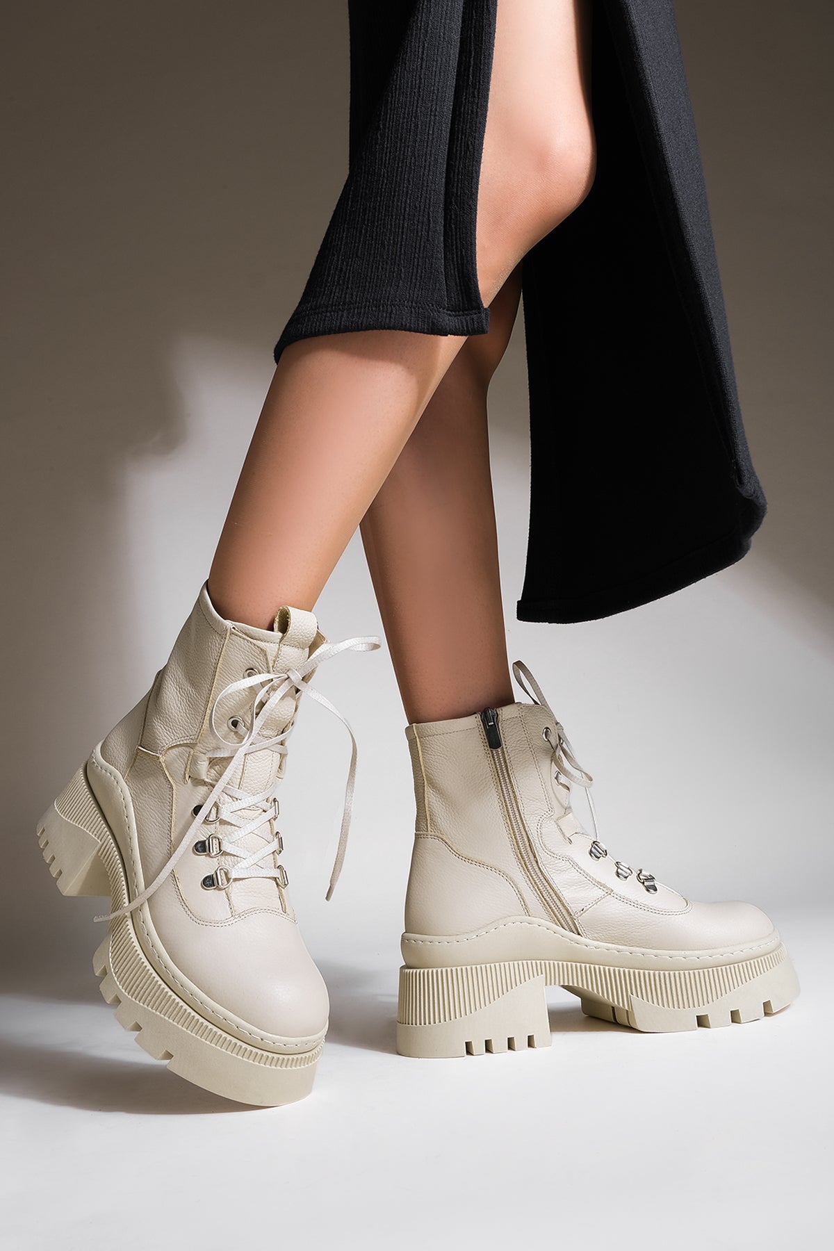 Kadın Hakiki Deri Postal Bot Armas - Bej