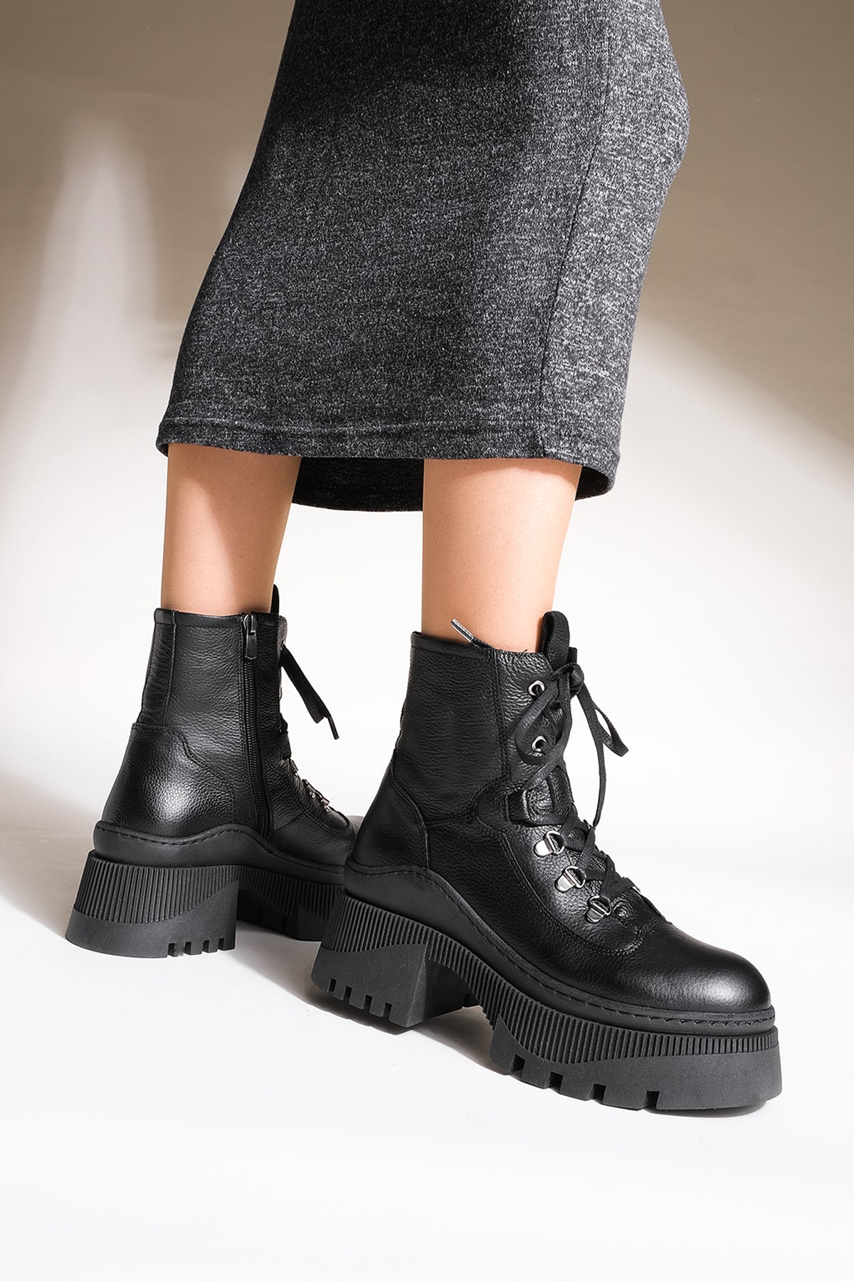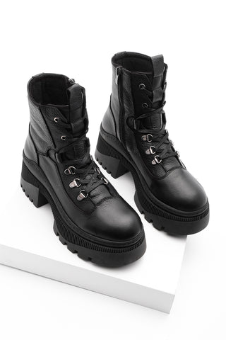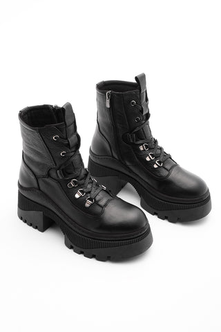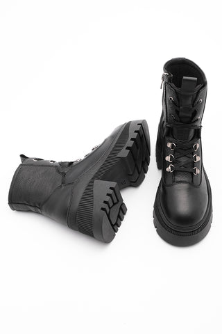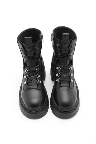 Kadın Hakiki Deri Postal Bot Armas - Siyah