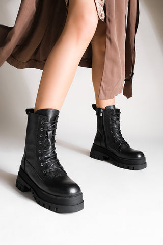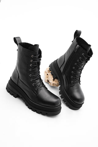 Kadın Hakiki Deri Postal Bot Kenva - Siyah