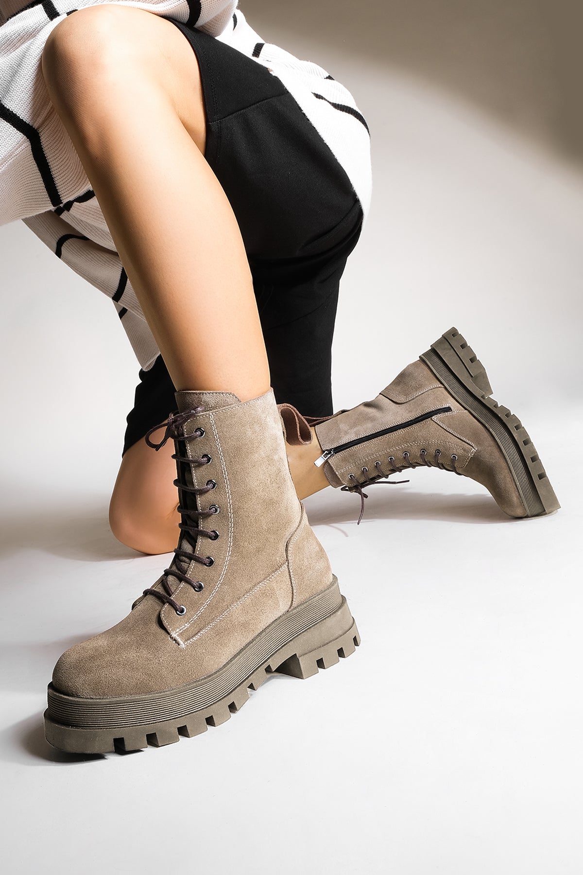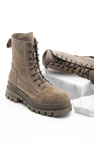Kadın Hakiki Deri Postal Bot Oter - Vizon Süet