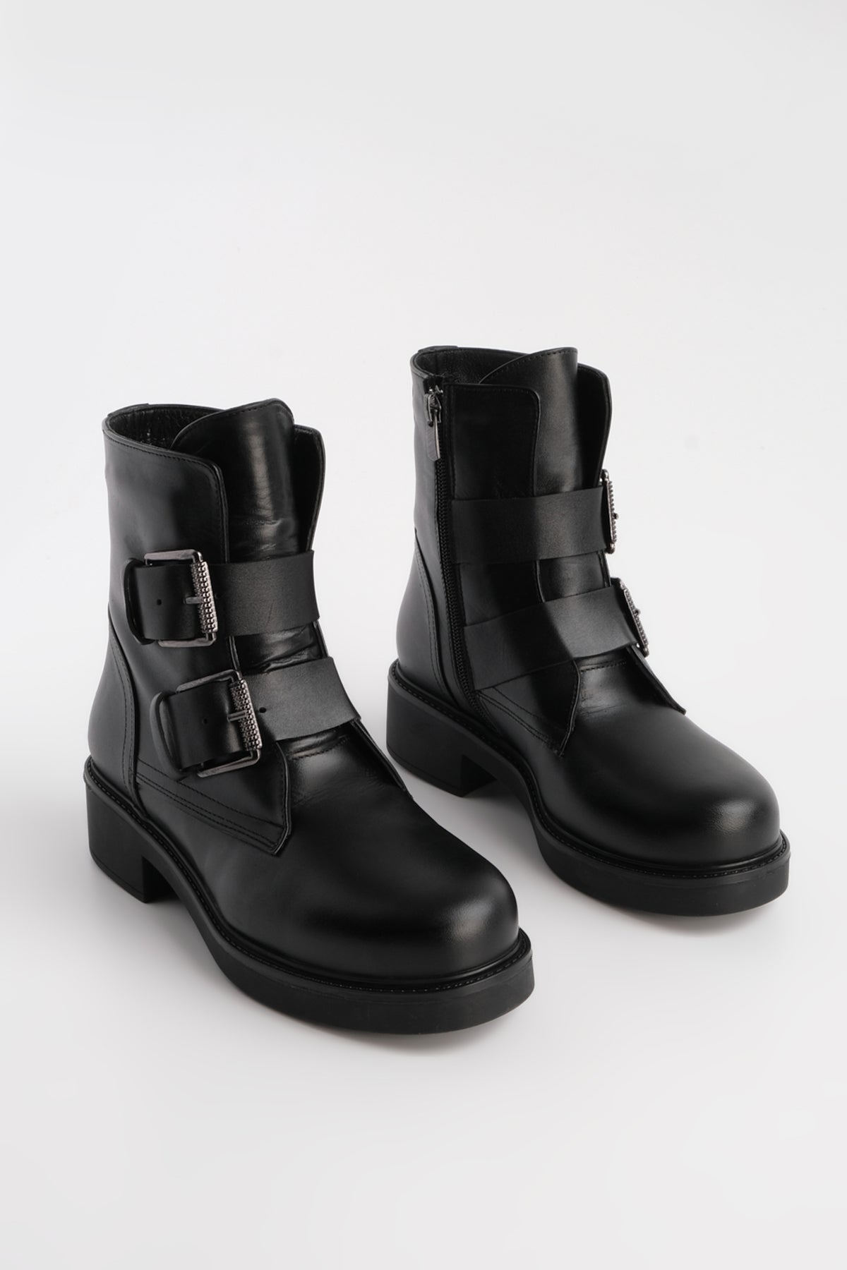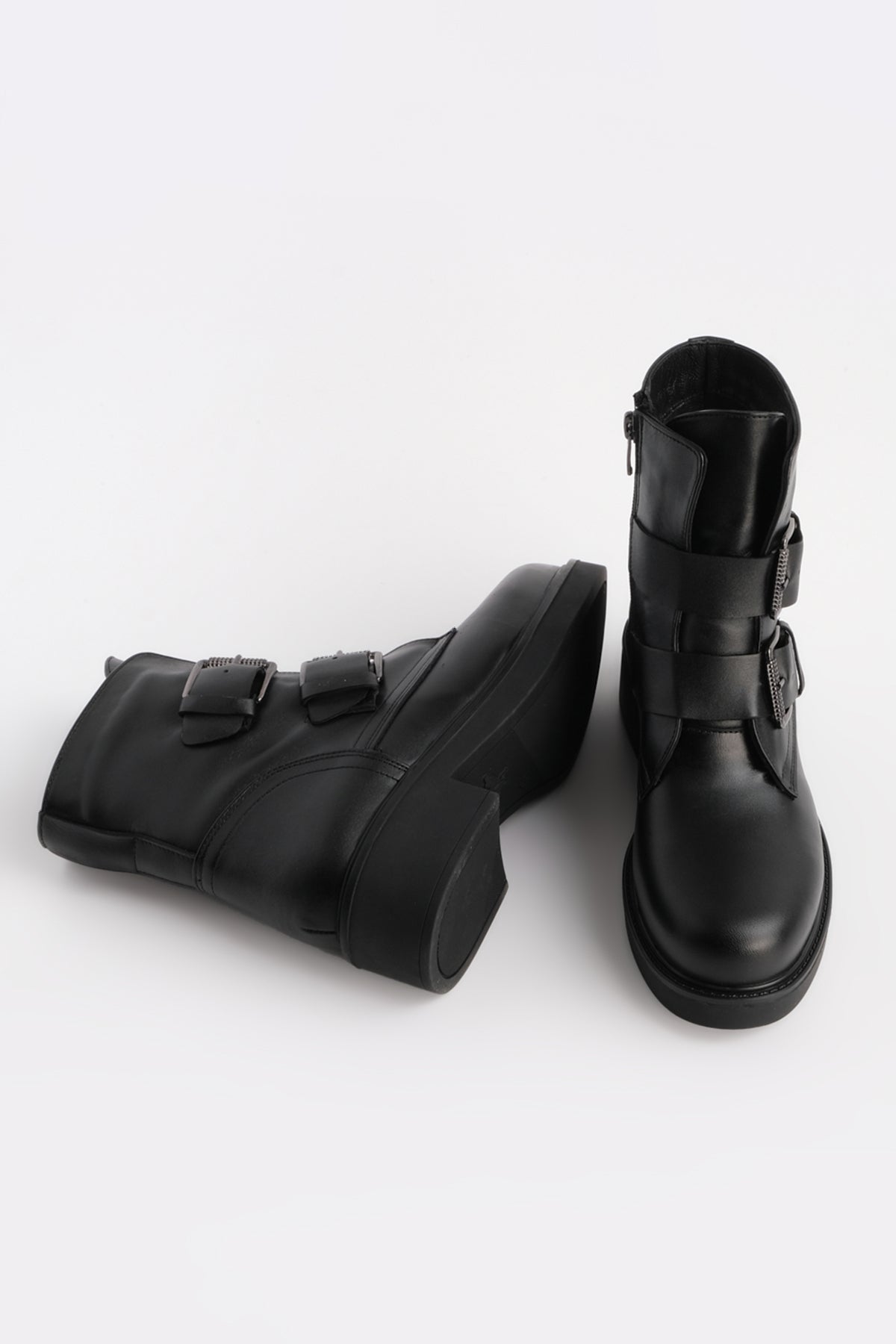 Kadın Hakiki Deri Kemer Detaylı Günlük Bot Toven - Siyah
