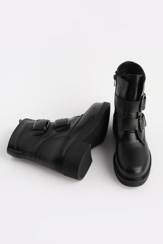 Kadın Kalın Taban Günlük Çizme Boren - Siyah