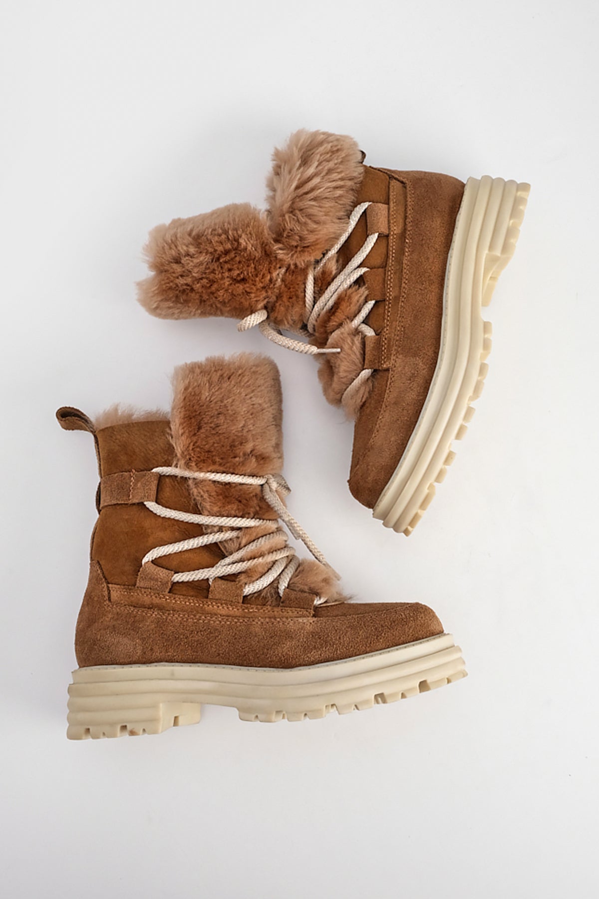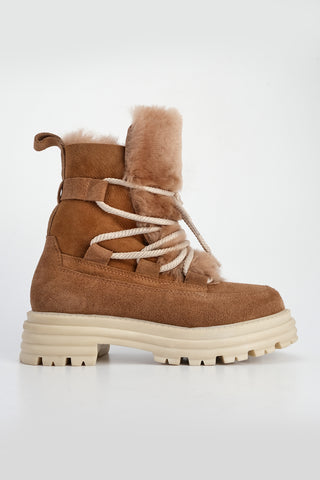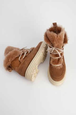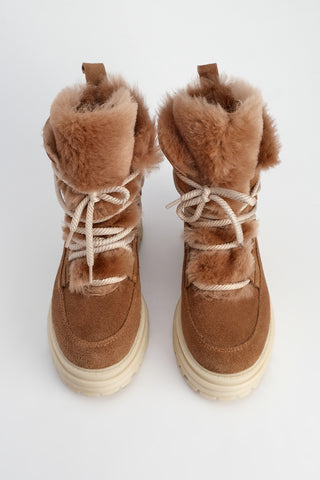 Kadın Hakiki Deri Kürklü Kar Botu Akve - Taba Süet