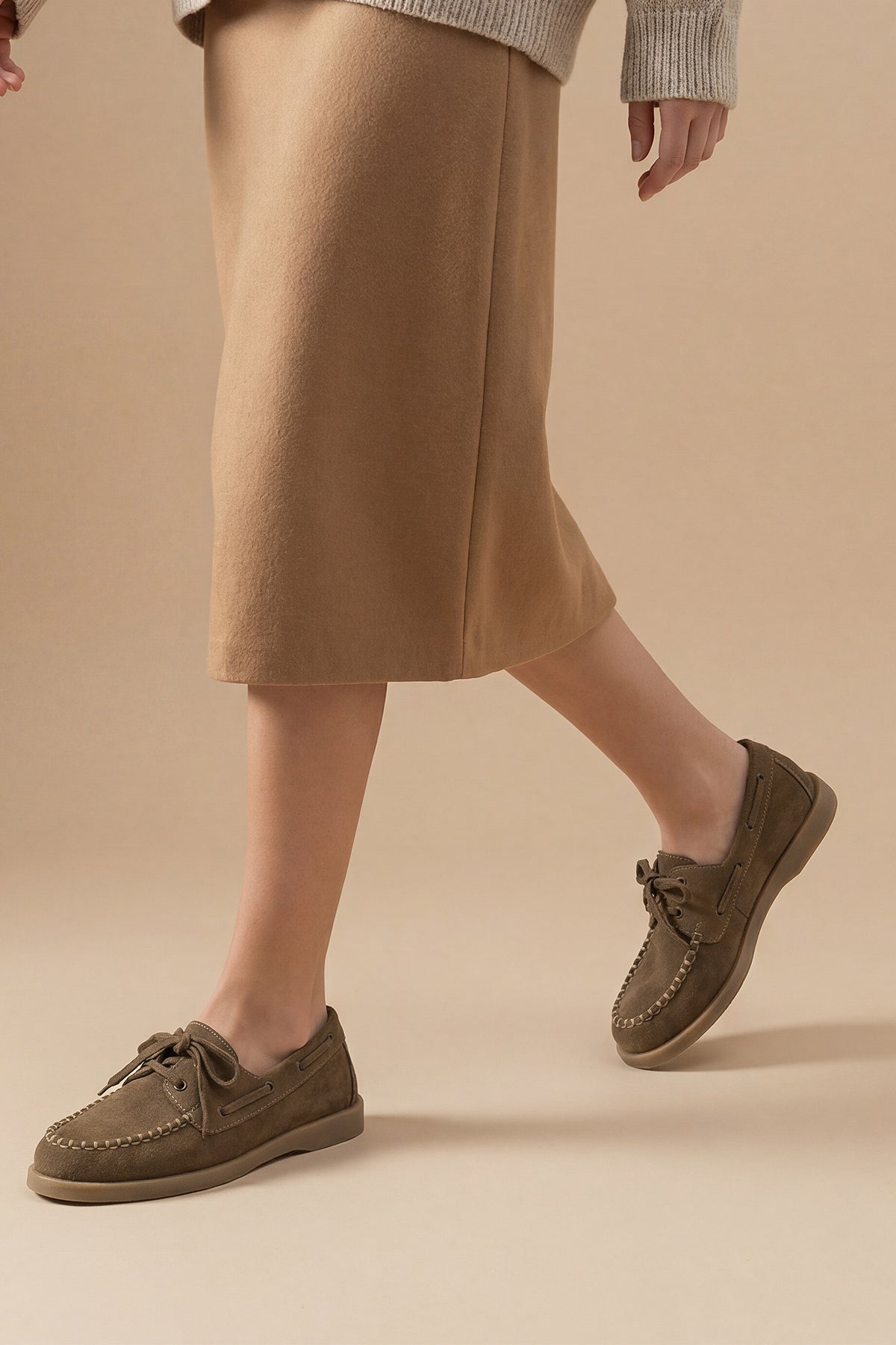 Kadın Hakiki Deri Loafer Günlük Ayakkabı Mistor - Kahve Süet
