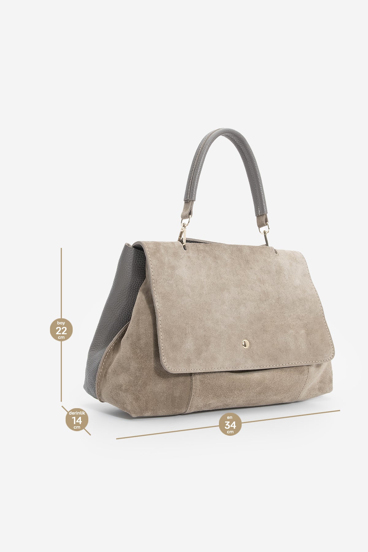 Kadın Hakiki Deri Omuz Çantası Ornis - Vizon Süet