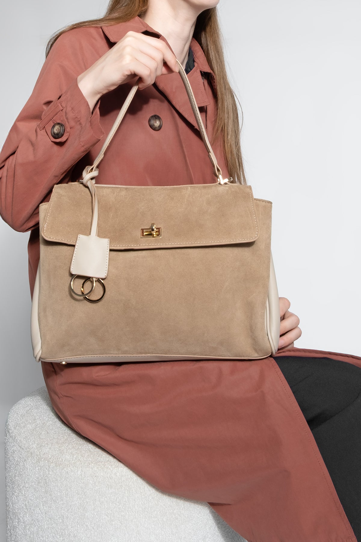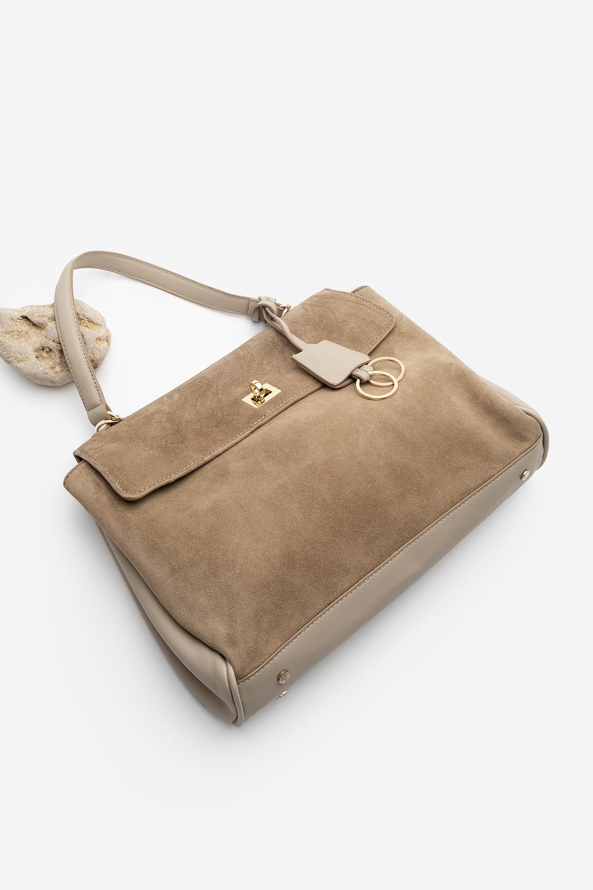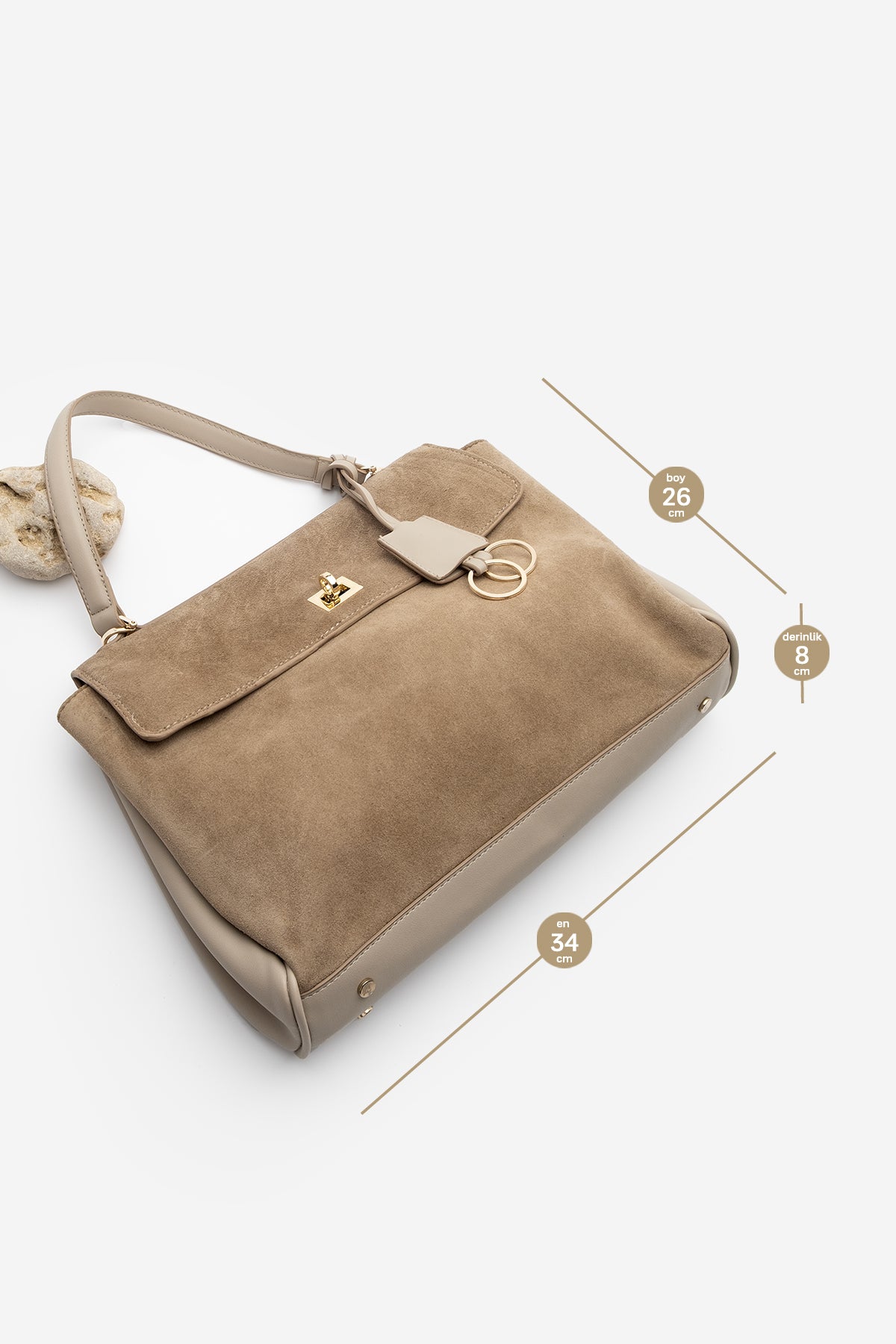 Kadın Hakiki Deri Omuz Çantası Rinyas - Vizon Süet