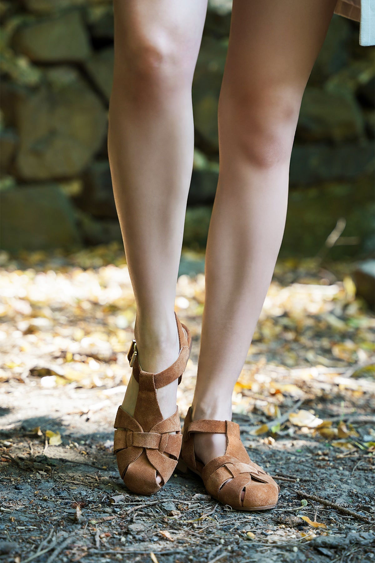 Kadın Hakiki Deri Önü Kapalı Günlük Sandalet Yenzar - Taba Süet