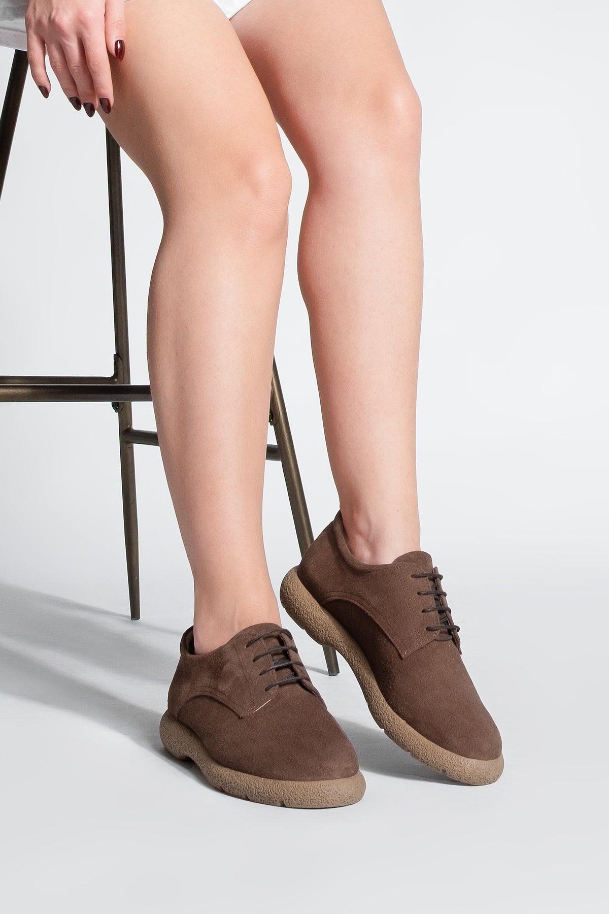 Kadın Hakiki Deri Oxford Ayakkabı Alyen - Kahve Süet