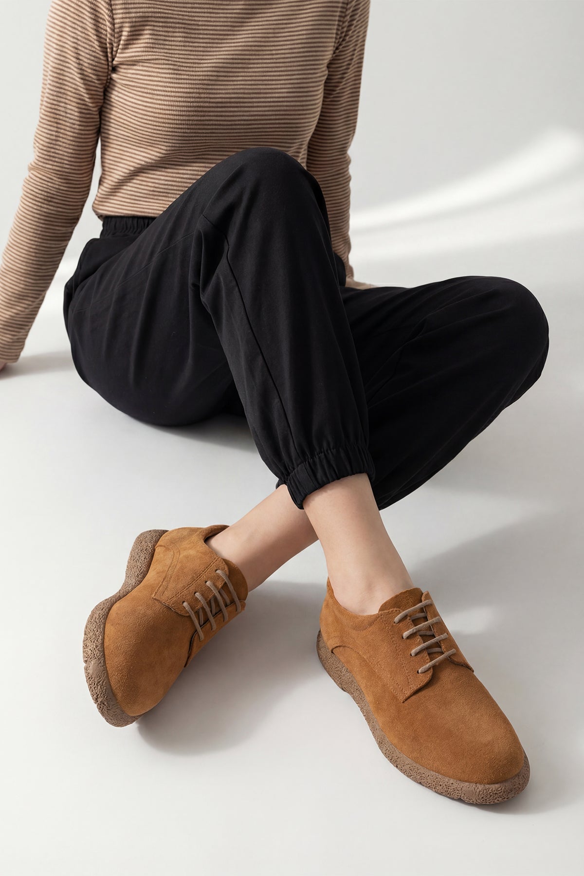 Kadın Hakiki Deri Oxford Ayakkabı Alyen - Taba Süet
