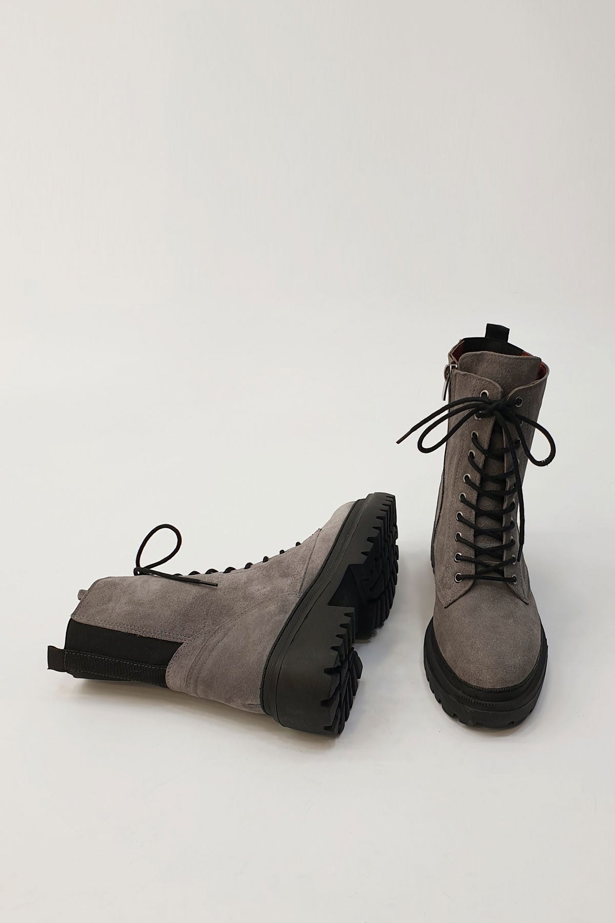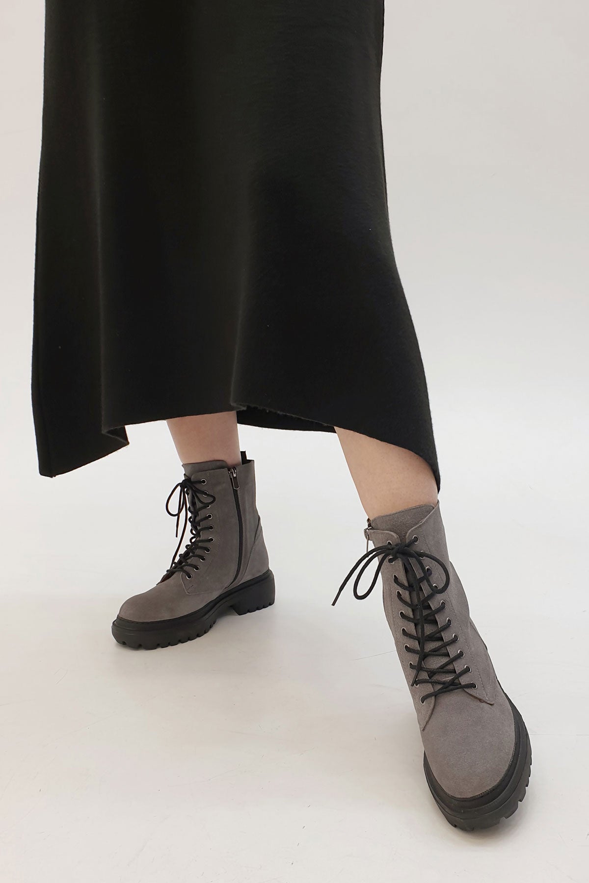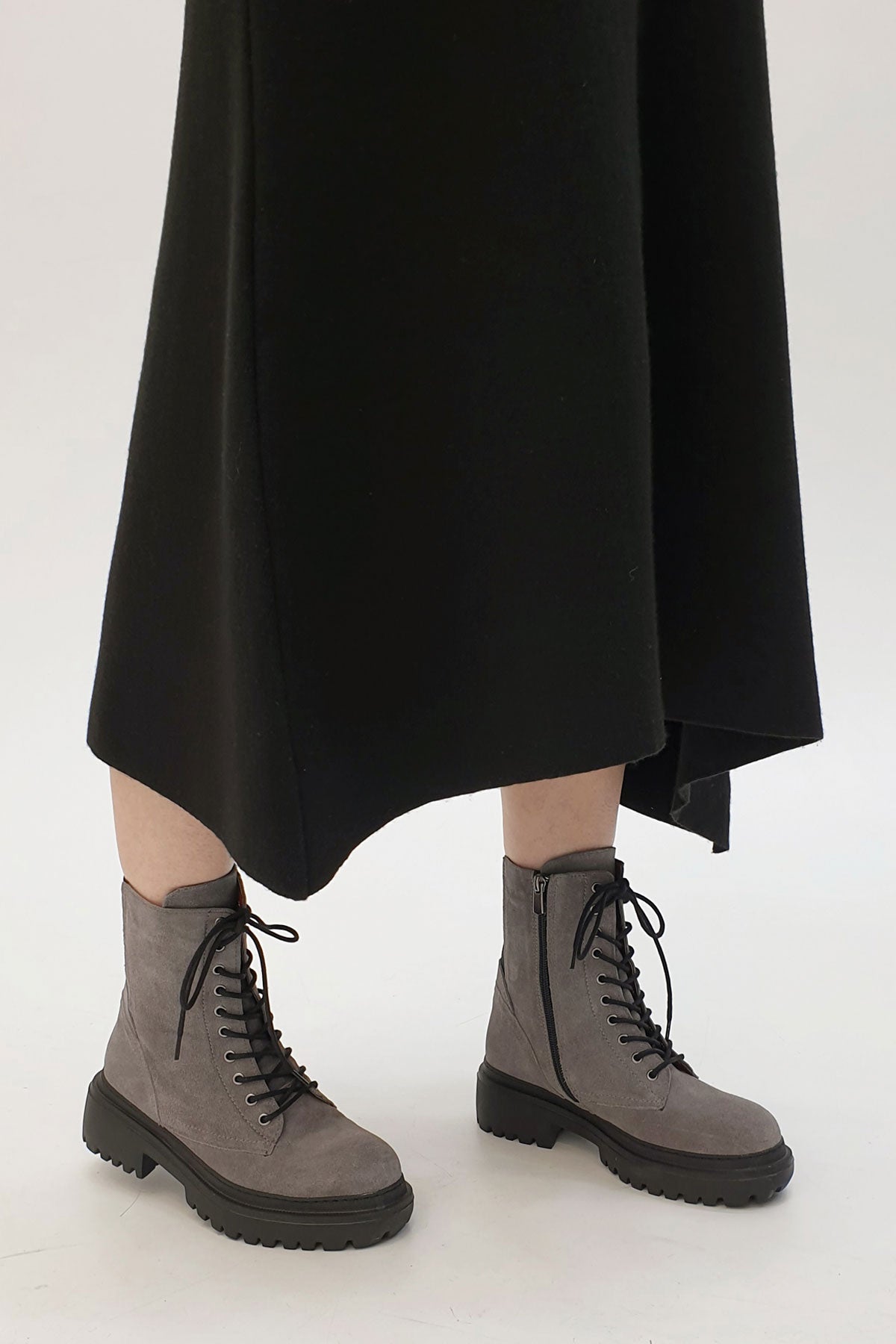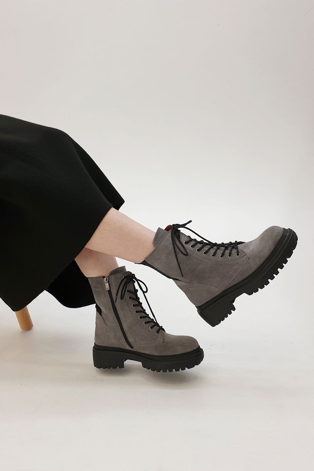 Kadın Hakiki Deri Postal Bot Poventa - Gri Süet