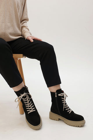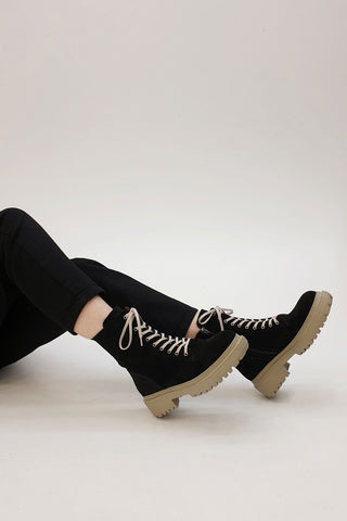 Kadın Hakiki Deri Postal Bot Poventa - Siyah Süet