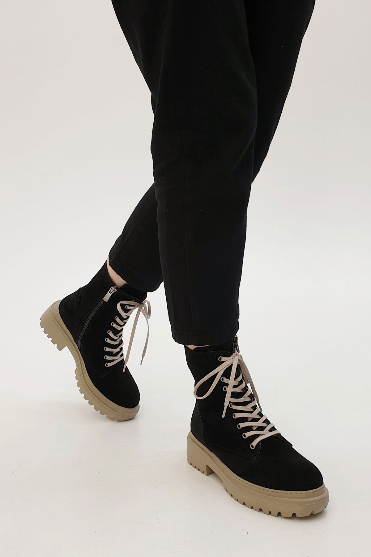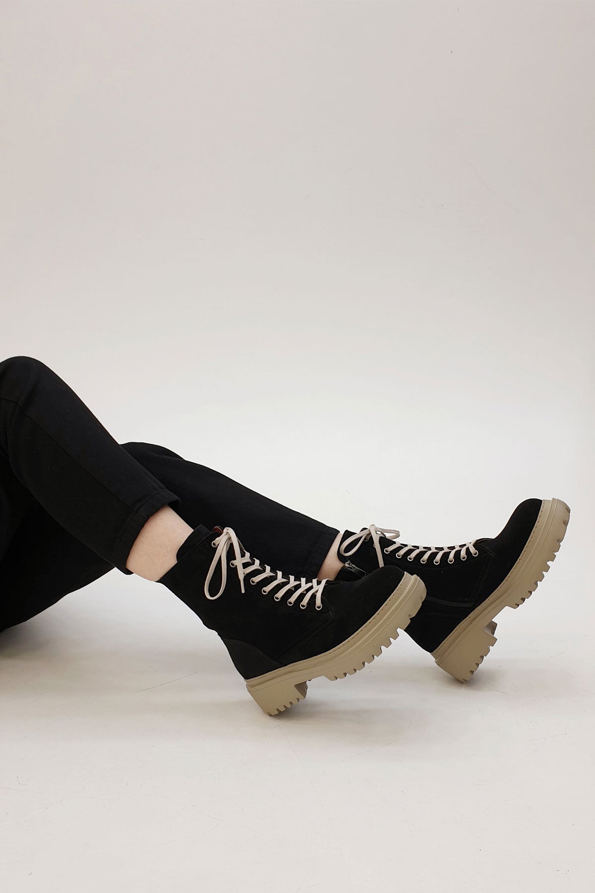 Kadın Kalın Taban Günlük Çizme Boren - Siyah