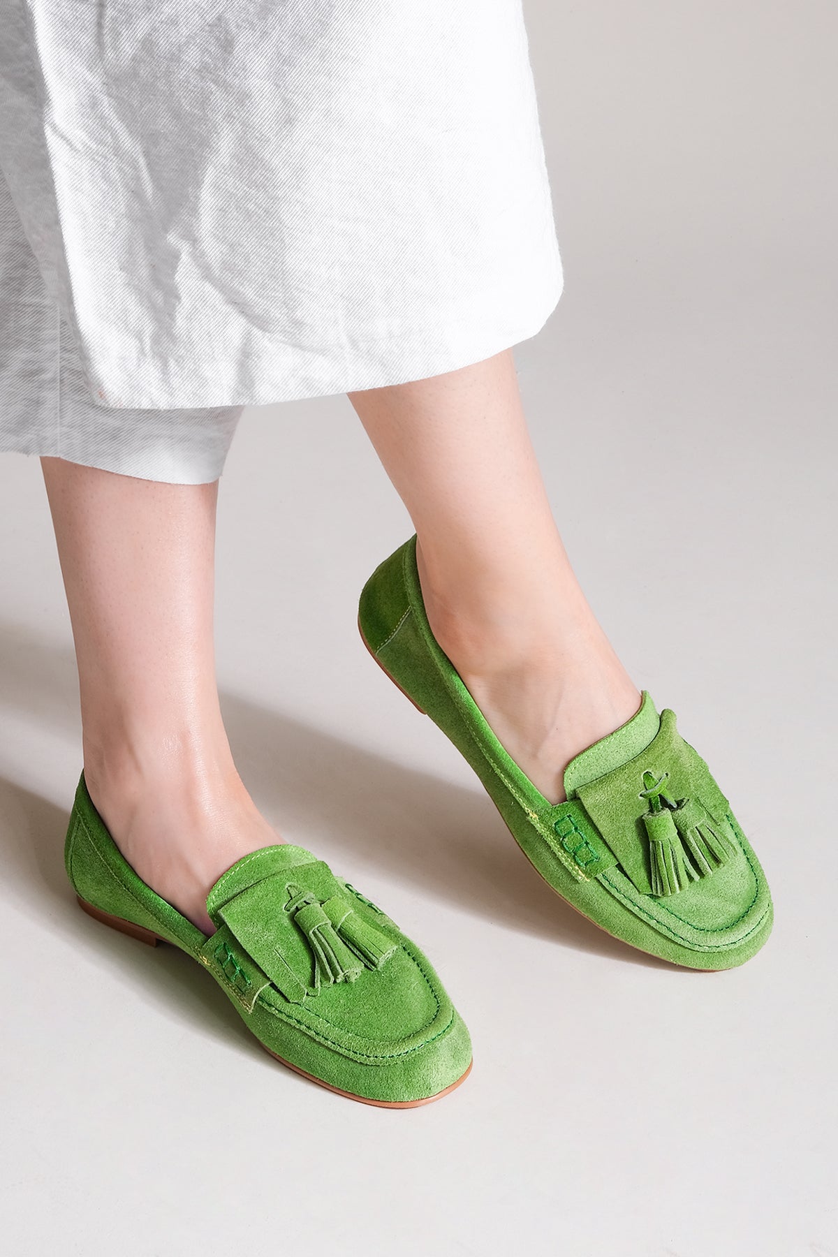 Kadın Hakiki Deri Püsküllü Loafer Ayakkabı Vingo - Yeşil