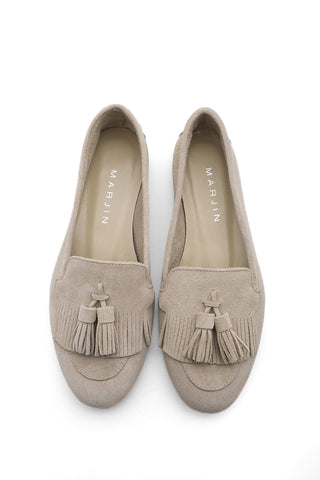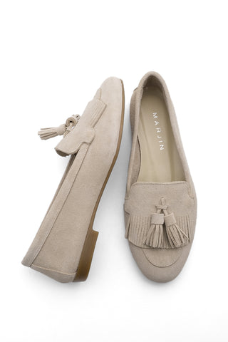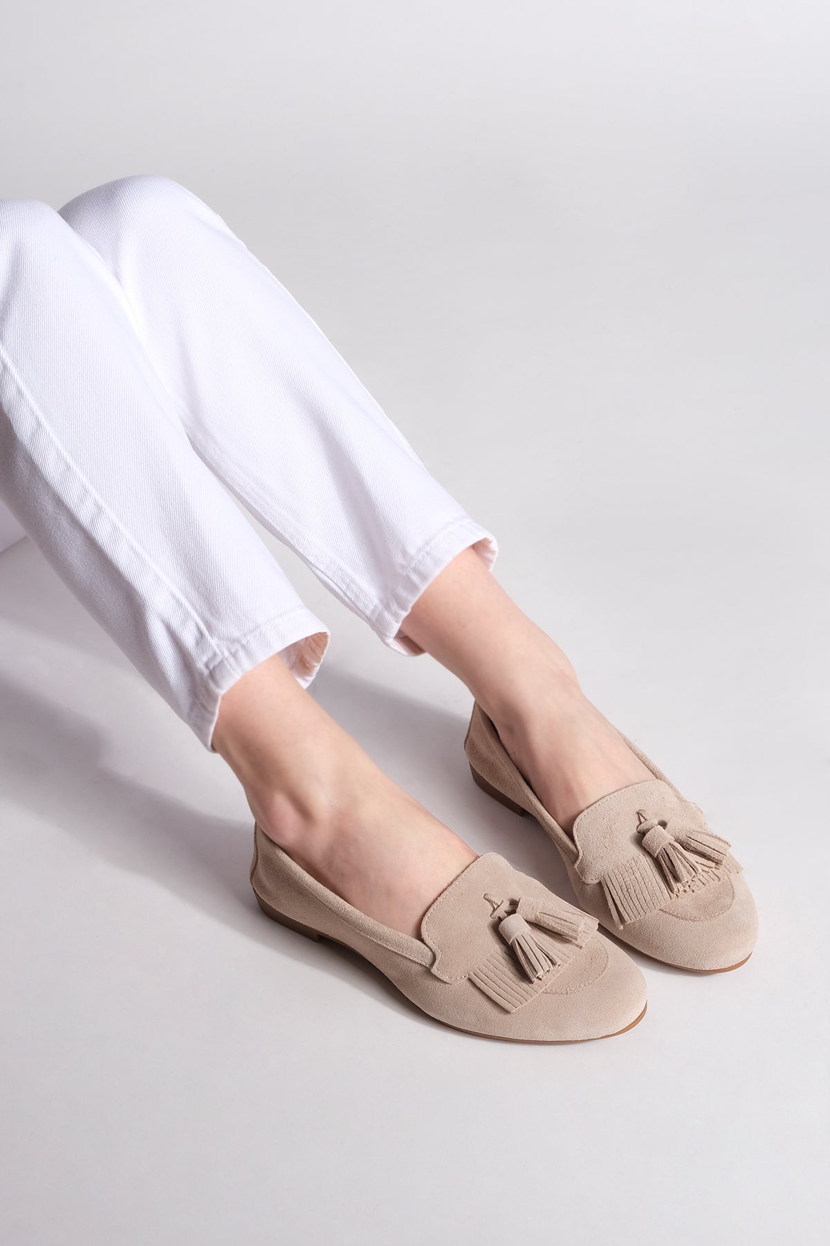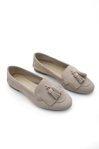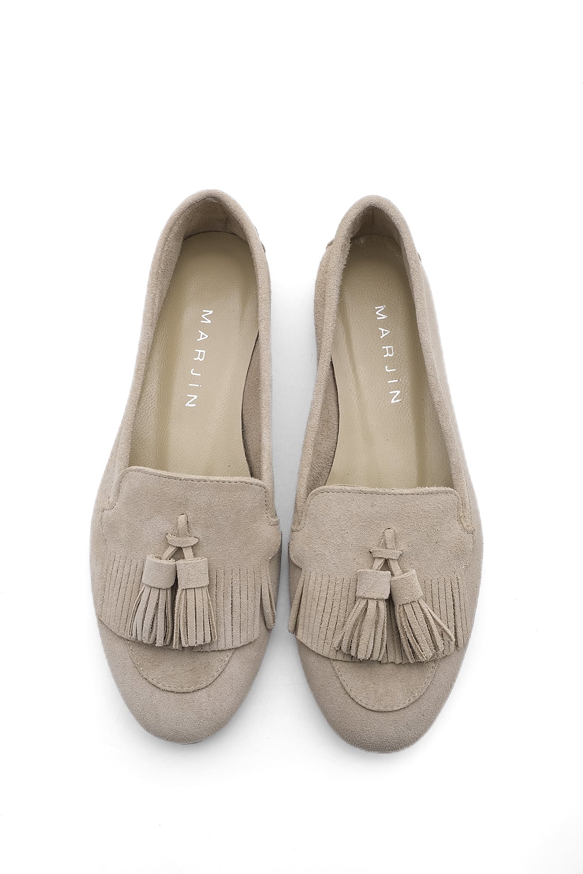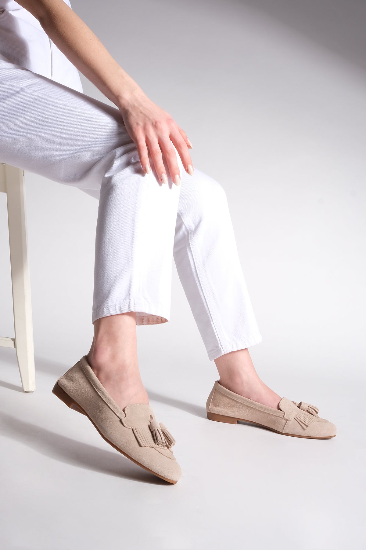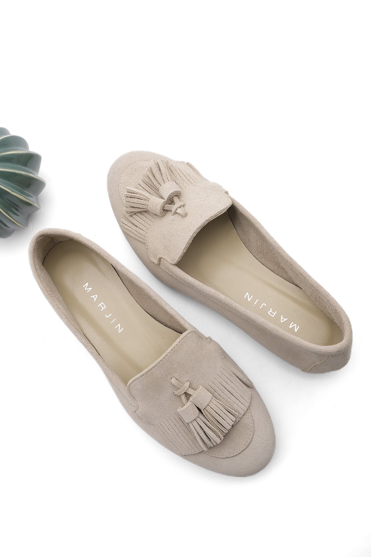 Kadın Hakiki Deri Püsküllü Loafer Günlük Ayakkabı Deviz - Bej